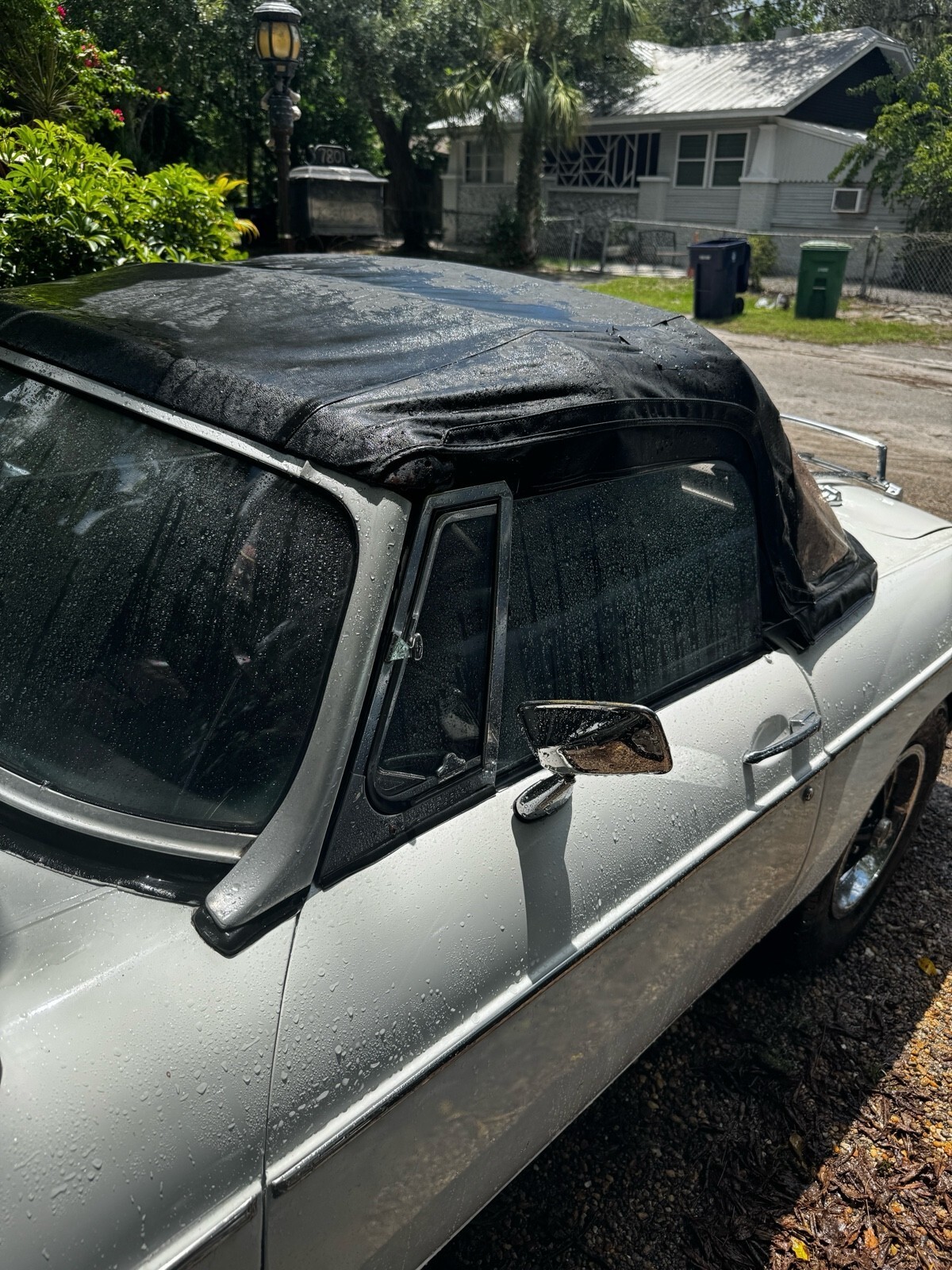 The interior is complete with seat covers over the originals, and the convertible top frame is included.