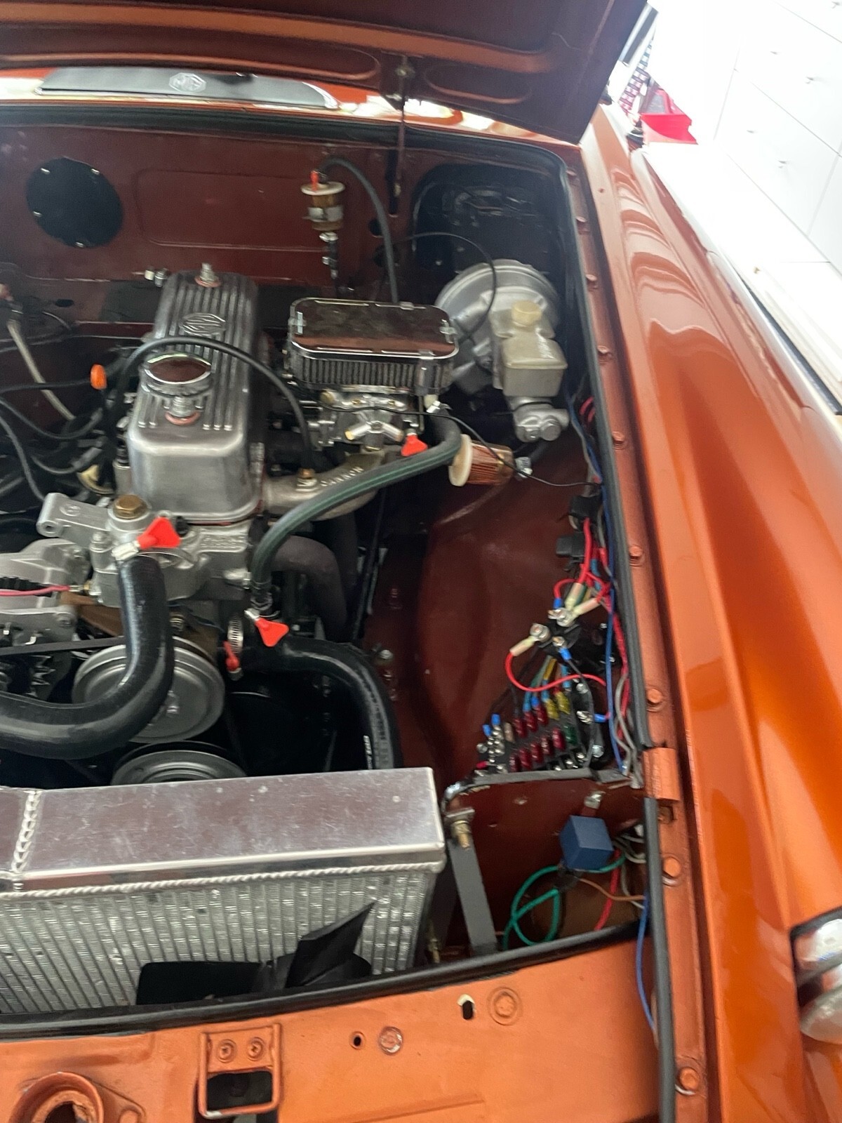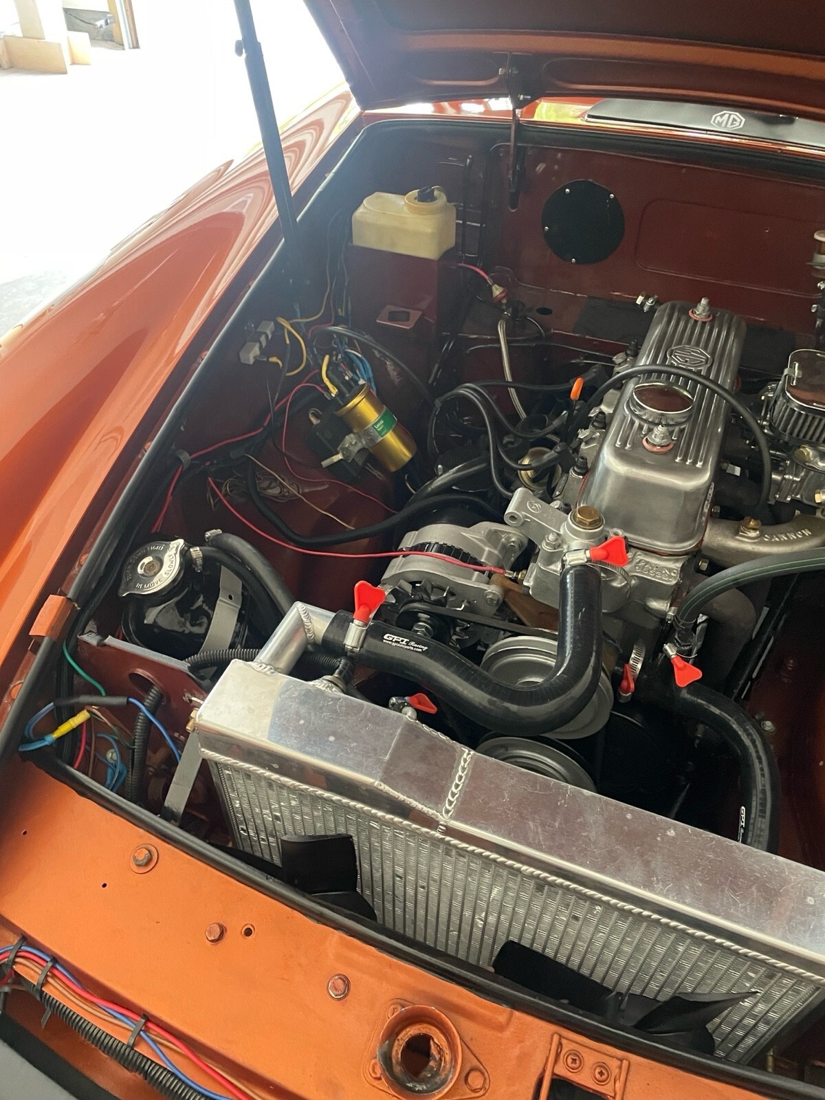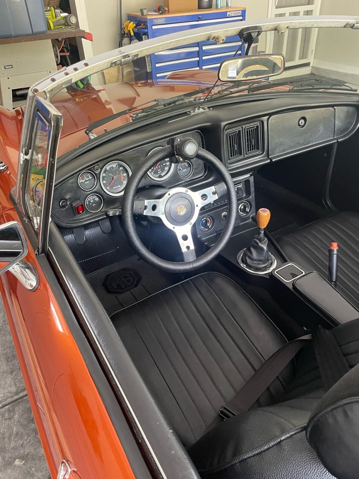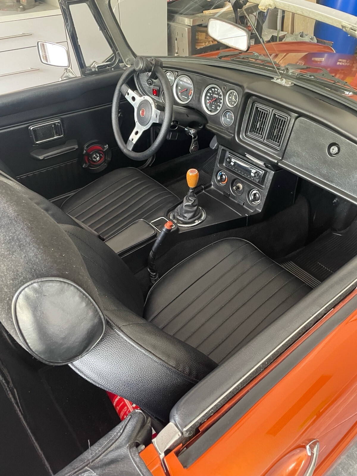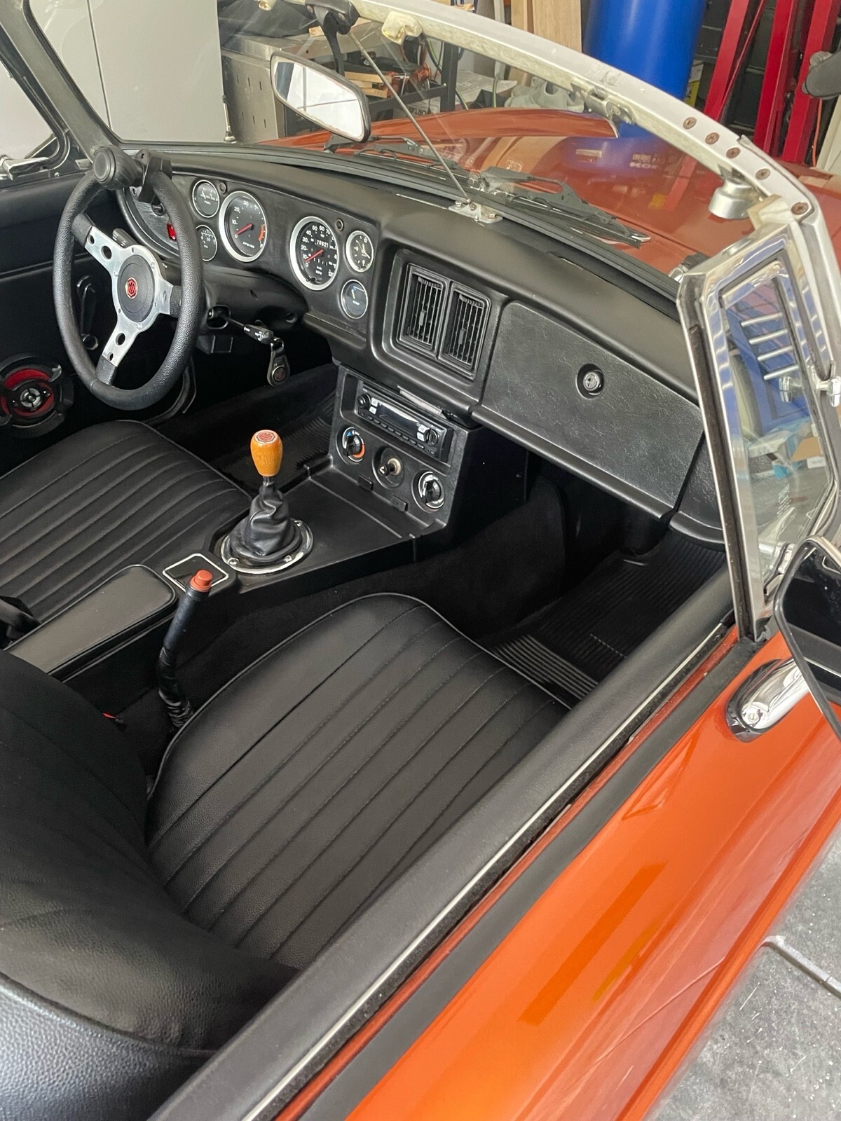 The 1977 MG MGB is a classic restomod that has been updated with modern components to both the exterior and interior. This bright orange vehicle, with a clean title and low mileage of 120,000 miles, is perfect for weekend drives. The current owner has had it for 5 years and has made sure to keep the car in top condition, making it a reliable choice for anyone looking to enjoy the open road in style.