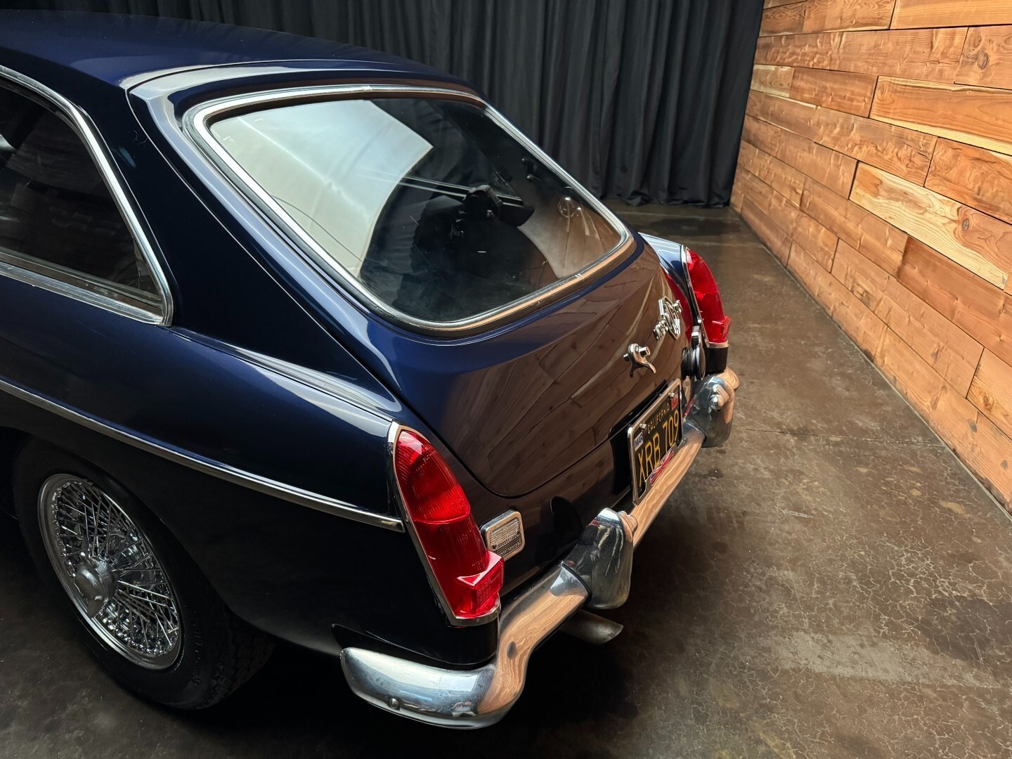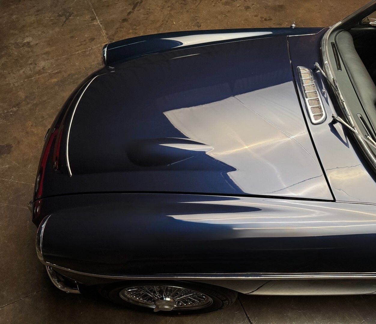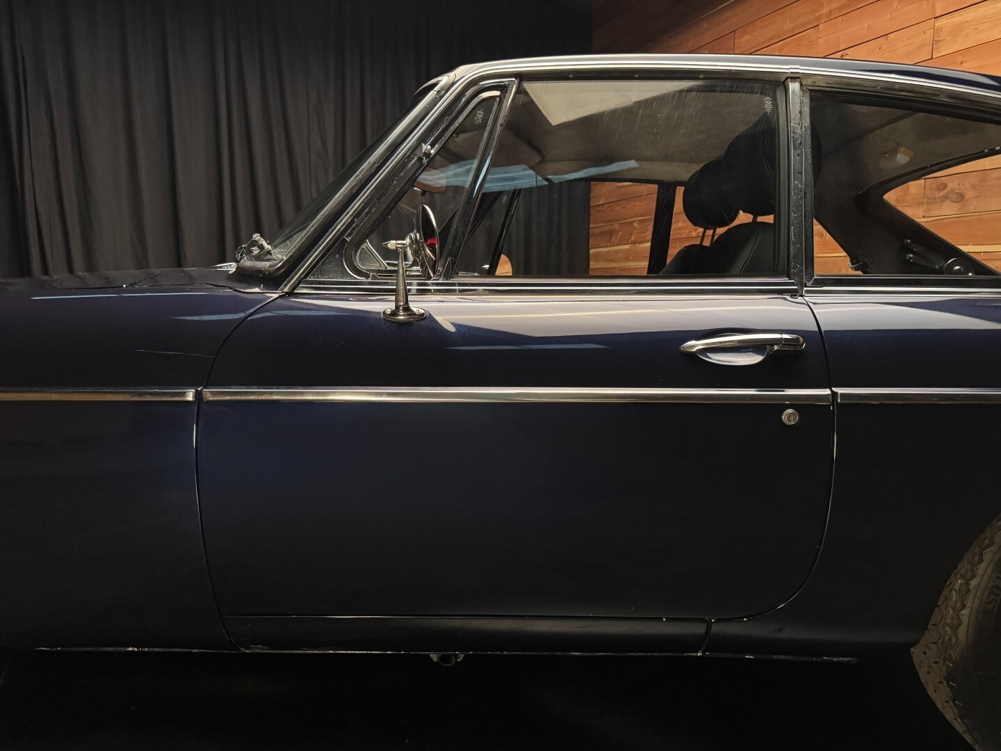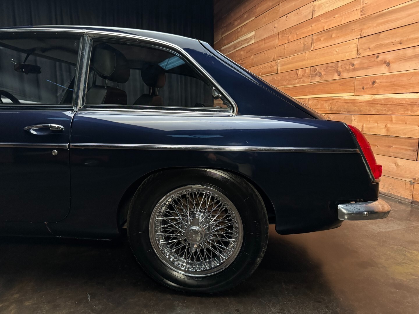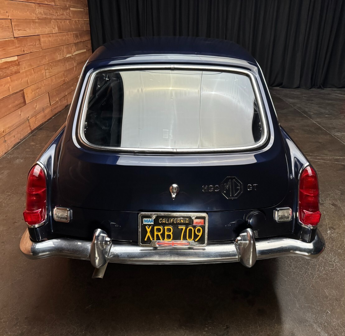 A lifelong California black plate car, this MGC GT is exceptionally solid, straight, and rust-free. The body shows excellent panel gaps with no signs of past accidents in either the frame or body structure. It wears an older but quality dark metallic blue respray that still presents well with deep shine, though close inspection reveals age-related chips, scratches, and minor cracking (see images). The car rides on classic 60-spoke chrome wire wheels.