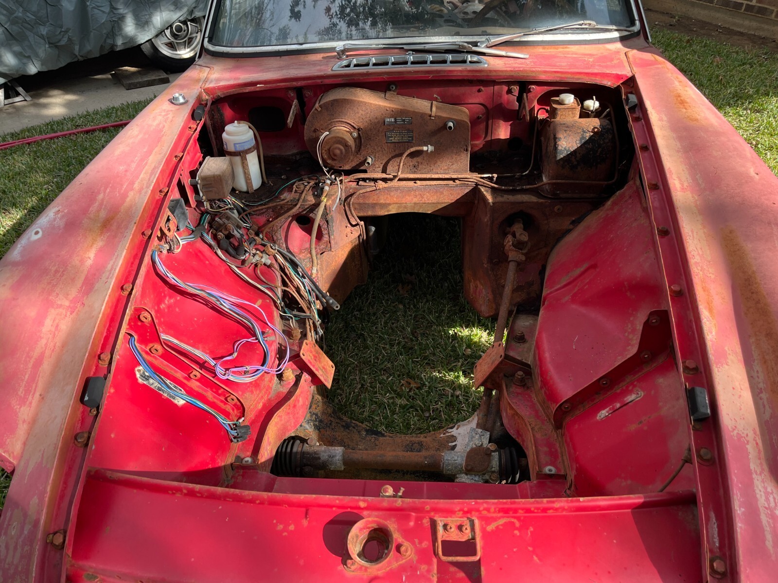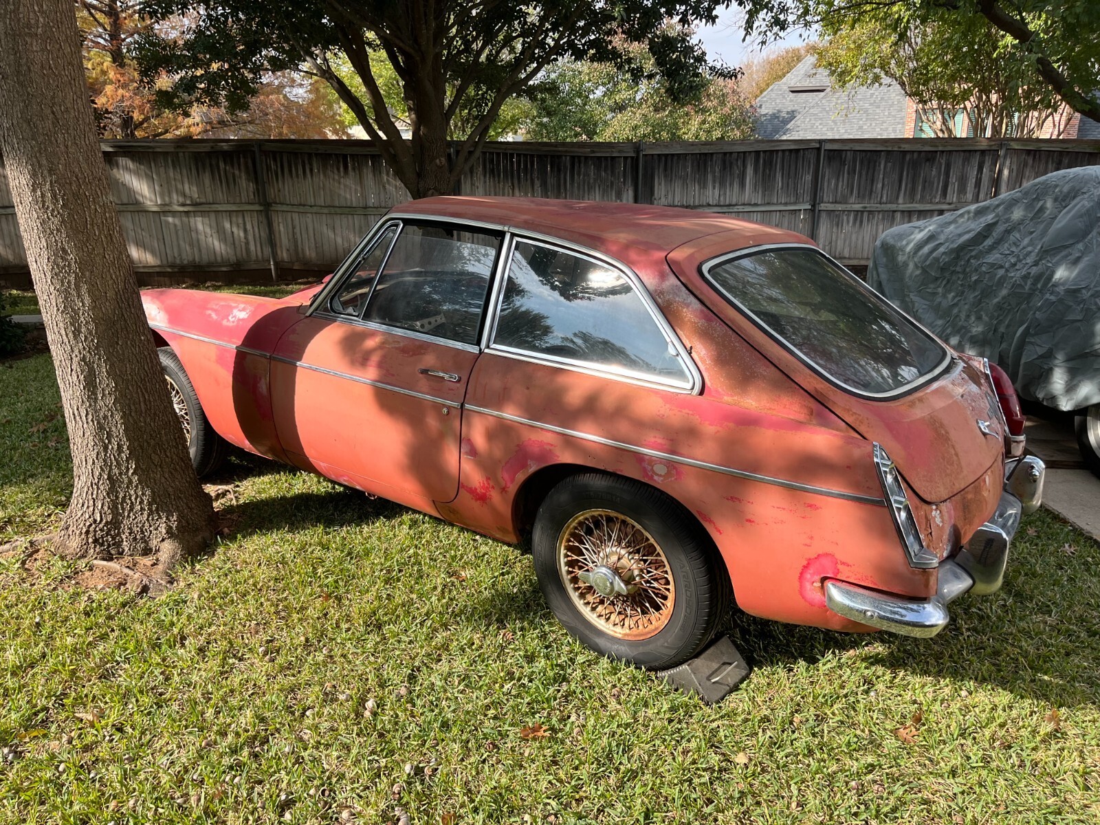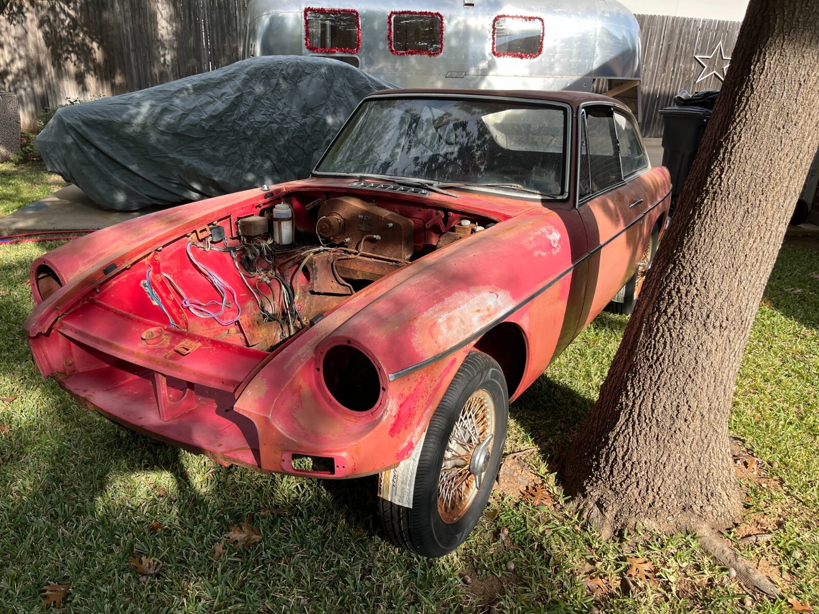 1967 MGBGT for project or parts. Mostly solid body with rust on rear quarter by the window and previous collision damage (some filler) on the rear hatchback. Hood is in good shape (not pictured) Roof is solid but is pushed in. I have a freshly rebuilt 1.8L engine (long block) to go with this car. Not included in the price but available if you need it. I also have a 4 speed transmission. No interior.