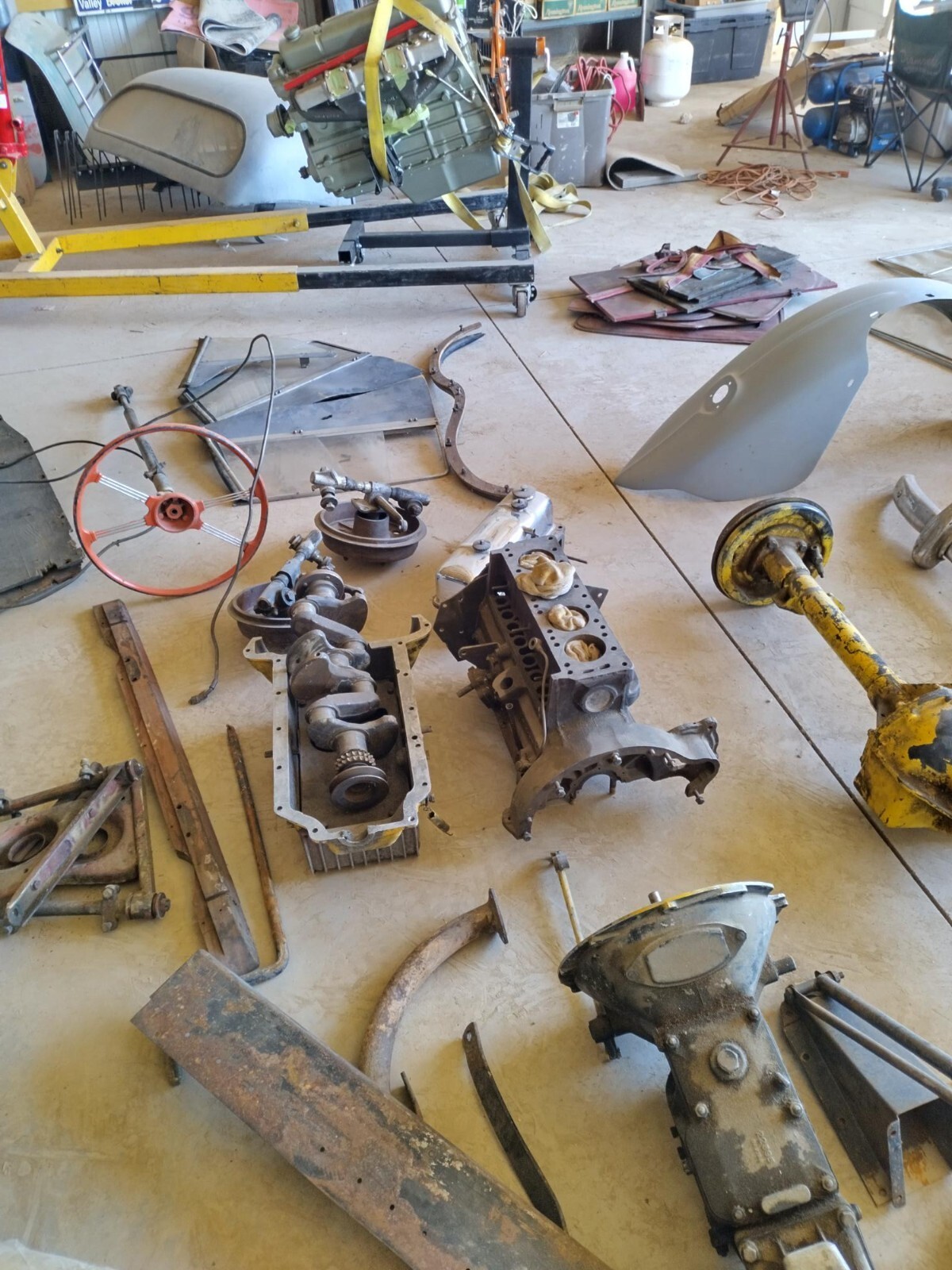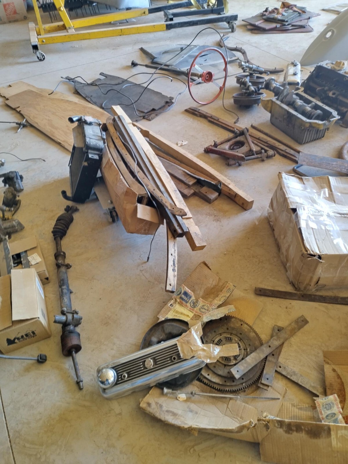 1954 MGTF BEST OF MG. ONE PERSON OWNED FOR OVER 50 YEARS. CAR WAS TAKEN APART IN THE 1970S. OWNER BEGAN ORDERING ALOT OF PART, INVOICES PICTURED OVER $10,000 IN TODAYS MONEY .PRICED MOSS FOR 6 PARTS FROM INVOICES LEATHER SEAT KIT,ROBBINS CONVERTIBLE TOP,CARPET KIT,TONNEAU,PANEL KIT AND BUMPERS THAT ALONE RAN TO $4929. ONLY 6 OF HUNDREDS OF PARTS CHECK INVOICES. OWNER PAST IN 2020 BOUGHT FROM FAMILY. SAT IN A COLORADO GARAGE FOR DECADES.DRY CLEAN STRAIGHT BODY PARTS PRIME, FRAME SPOTLESS. IF YOU OR SOMEONE YOU KNOW WANTS A HUGE BARGAIN,THIS IS IT. THE ONLY ITEM I COULD NOT SEE WAS THE WINSHEILD GLASSCAR IS STORED IN MY SHOP NEAR PUEBLO COLORADO