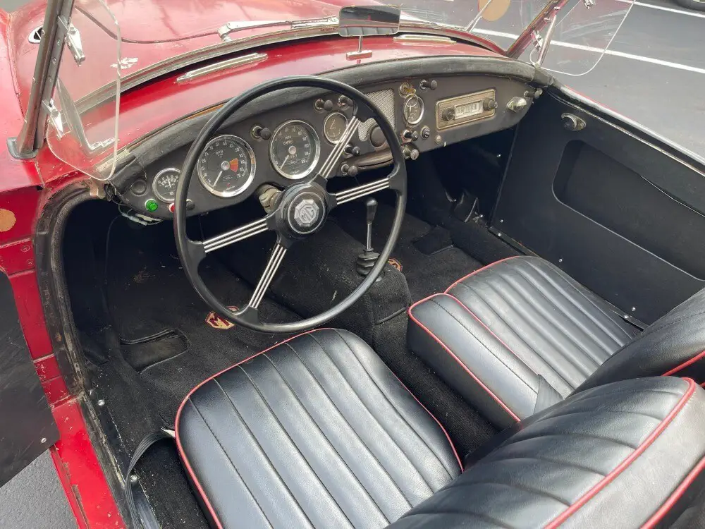 This 1961 MGA 1600 is a highly original car that's never been restored. Ready for a straightforward cosmetic recommissioning. Burgundy with black interior. Runs and drives. Out of 60 year ownership, the previous owner purchased the car in 1965. It has always been stored inside. The engine and gearbox have been overhauled. A new soft-top and side curtains (still in the box) are included. The older repaint is showing its age and requires attention. A good old car with a lot of potential. It wouldn't take much to bring this car up to a presentable driver quality level. Clad in a stylish