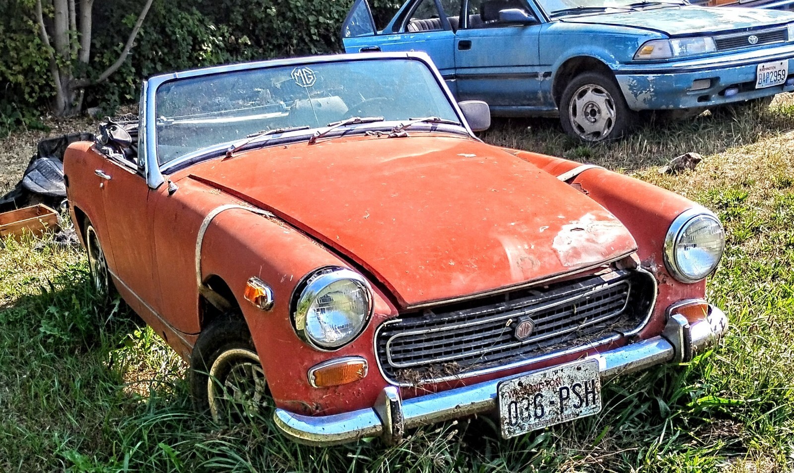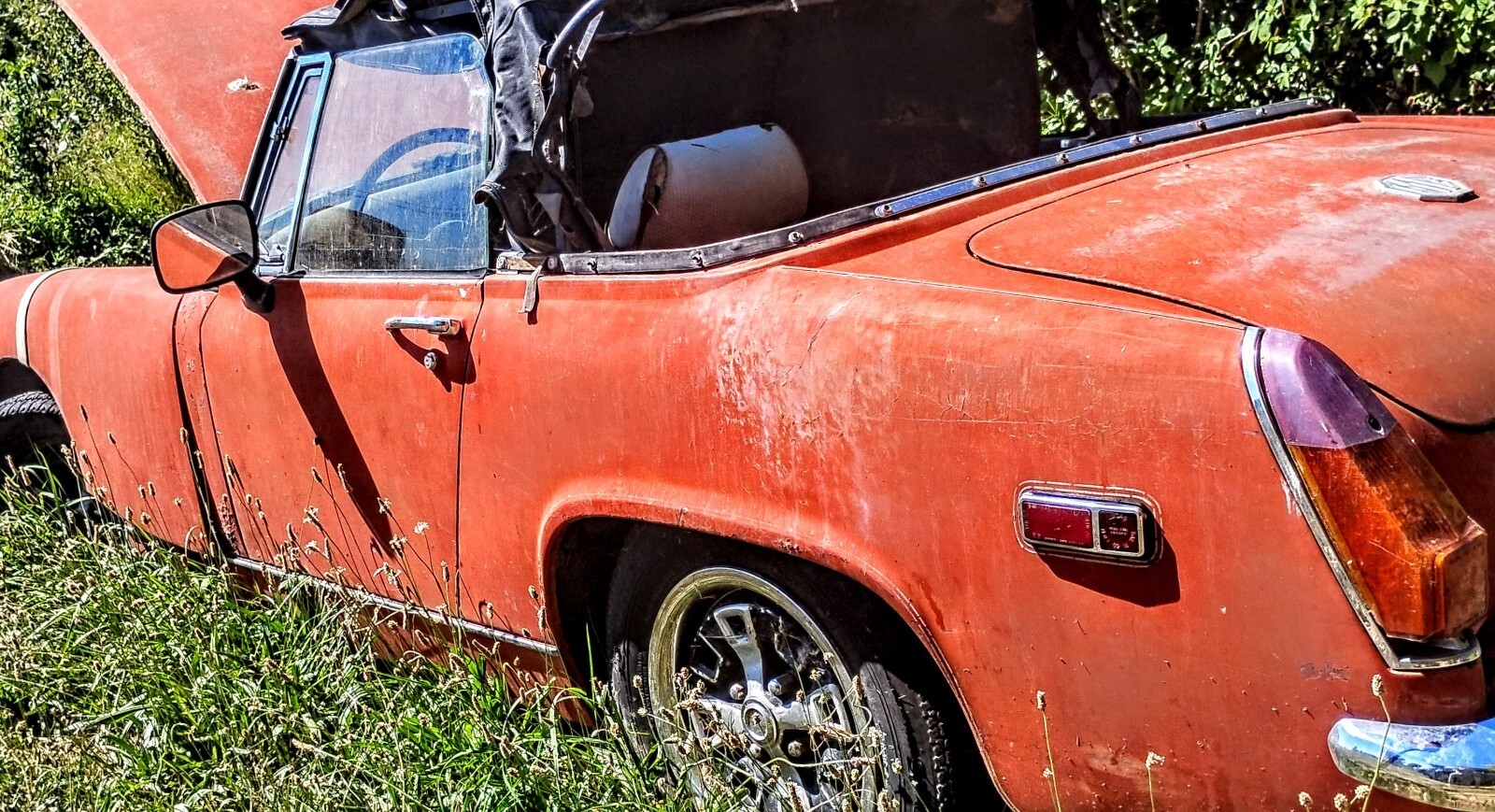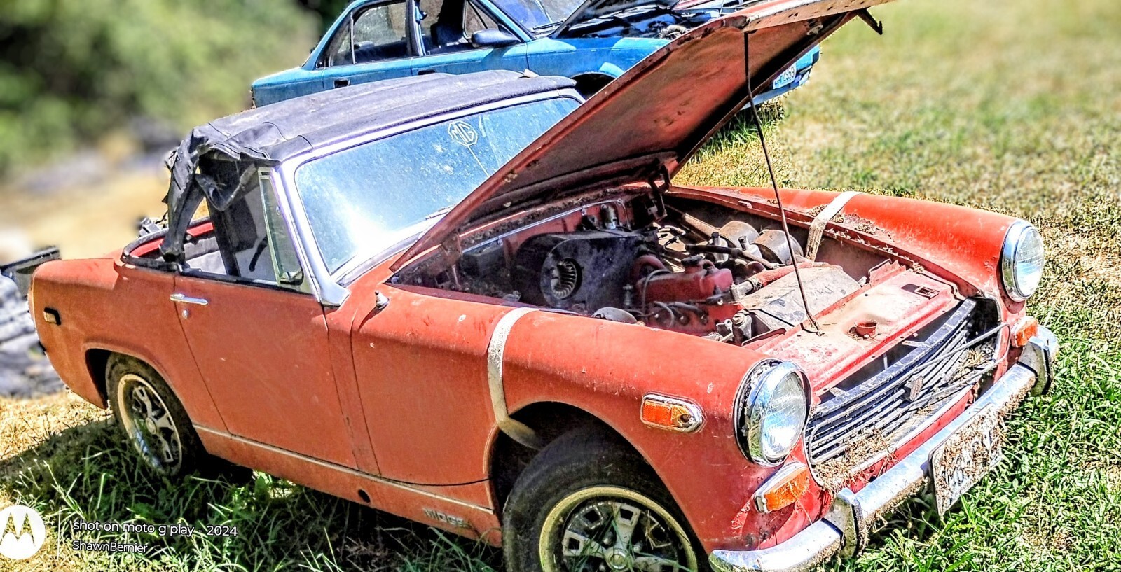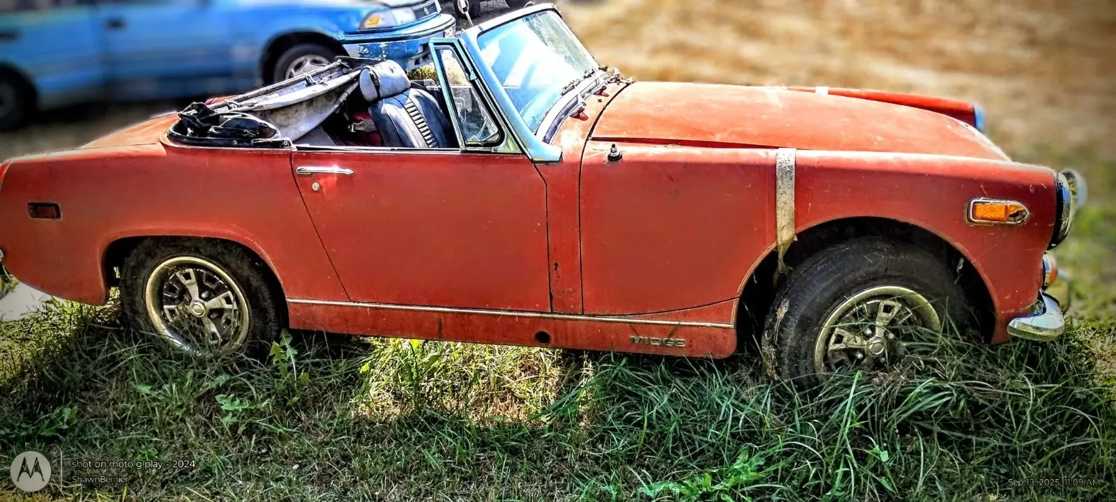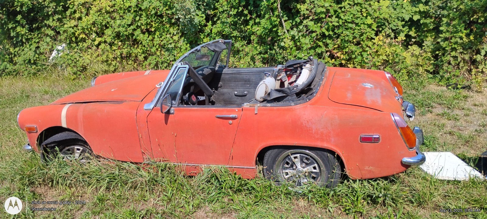 The 1970 MG Midget is a classic collector car with a black interior, red exterior, and a 1275 gasoline 4-cylinder engine. This left-hand drive vehicle has a manual transmission and features folding mirrors. With only 97664 miles on the odometer.. the engine was rebuilt at a machine shop in 2005 and a history of 2 previous owners, this MG Midget is a charming convertible perfect for those who appreciate vintage British automobiles. And somebody who likes to restore and make new everything is there there's even enough parts that if you had another body you would have two mg style vehicles