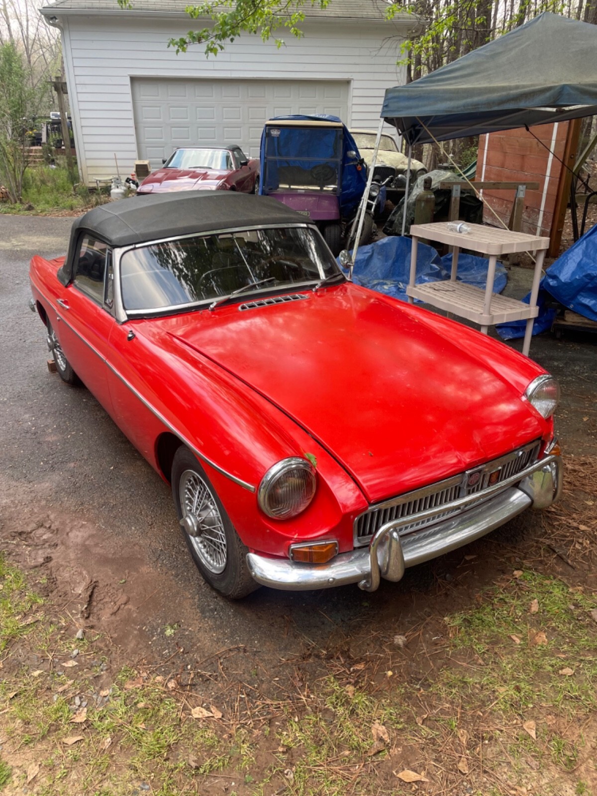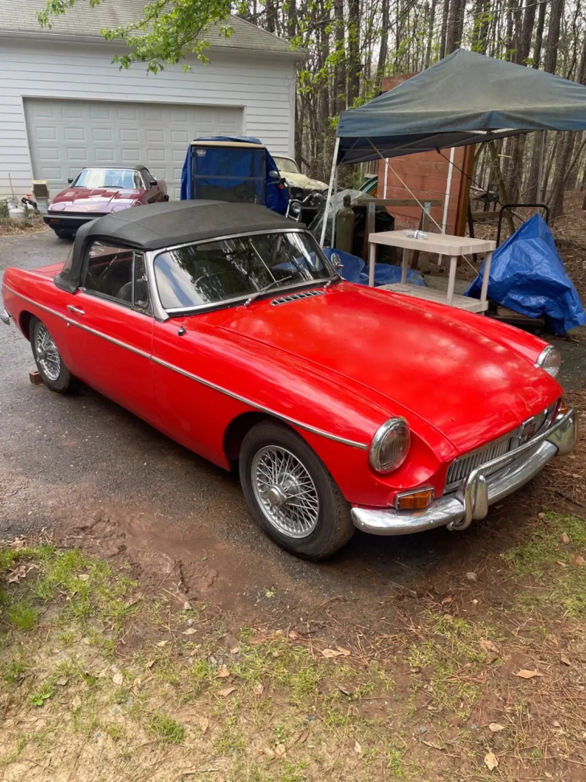 1967 MGB Roadster- located in Watkinsville, Georgia .The Heritage Certificate (Pictured) says it was produced on the 1st and 2nd of December, 1965. It is titled as a 1967, likely because that’s when it actually sold here in the states. The title is clear and free of encumbrances.This car sat still for a number of years so the brake and clutch hydraulics will need to be gone through before it is drivable.The engine starts easily and runs very well on a can of fresh fuel and an external pump (See video). The car also rolls well. We checked compression which is as follows 1- 162 2- 180 3- 175 4- 168 The oil pressure is very good (evidenced in video).There is rust in the floors and sills so they would have to be replaced, or this would be an exceptional parts car.Please don’t hesitate to message us with any questions.Shipping will need to be arranged by the winning bidder. We will be very helpful loading it on a trailer and we have a flexible schedule. $500 due at auction end with the balance within a week. Car must be picked up within 10 days of auction close.
