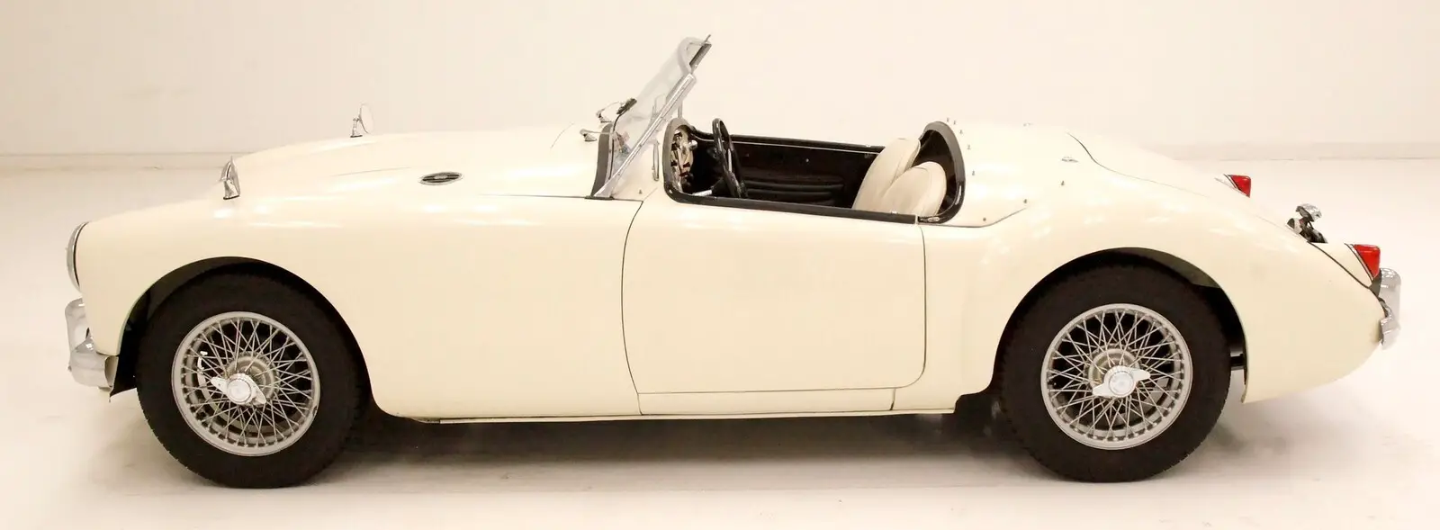 For consignment, a former black painted car now in Old English White, sporting a rebuilt engine in 2007 and driven sparingly, always garaged since this rebuild. A new radiator, and now a 12 volt system car. Now offered to you, this 1958 MGA Roadster, a 2 owner car that our consignor doesn't have the time to enjoy any longer...win you!