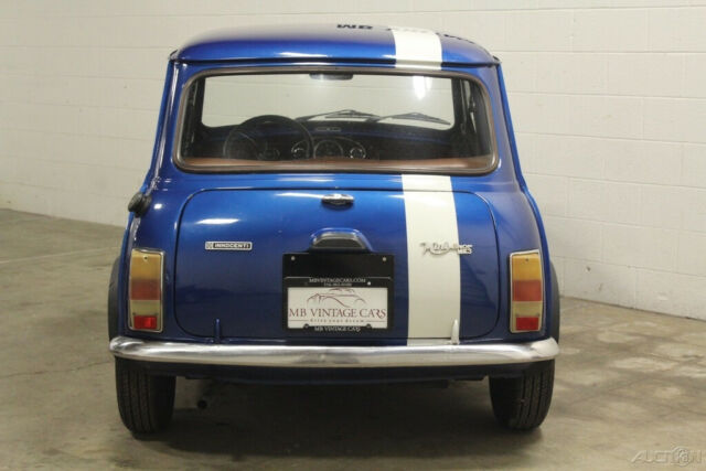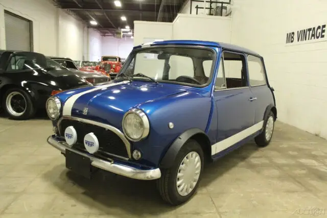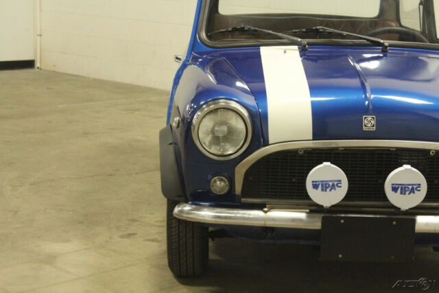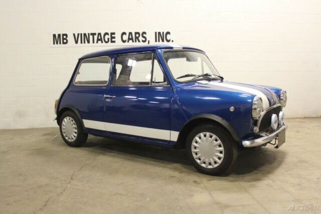 1974 Innocenti Mini Export Model. 998 cc engine. Blue with a white stripe. Nice body. The paint is shiny and fairly new but not a quality paint job. There is some bubbling around the edges by the rear part of the roof as you can see in the pictures.