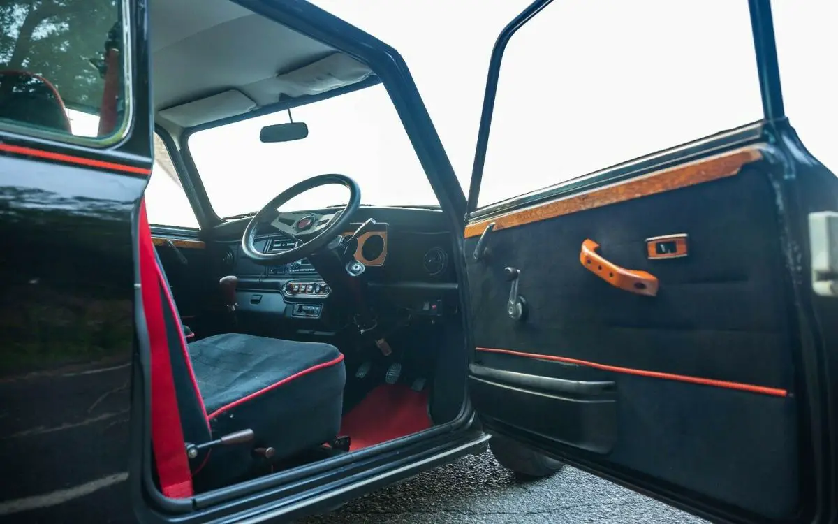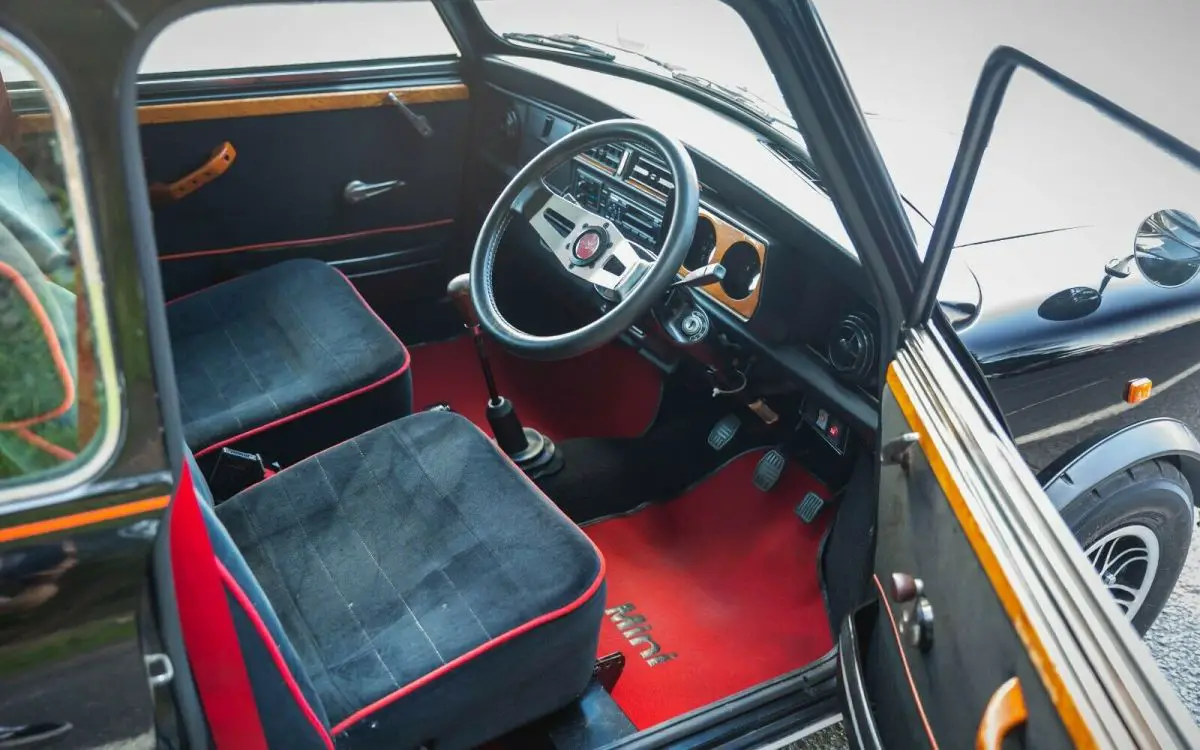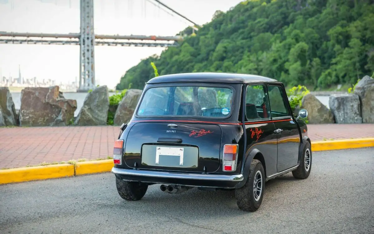 1988 Rover Mini "Jet Black” edition. Only3,000produced globally.Theseats are upholstered in black velour with red piping and “Jet Balck” embroidery on the backrests. Red seat belts and wood trim provide further contrast. A two-spoke Personal steering wheel and Panasonic AM/FM cassette player are also installed. Purchased from Japan and imported to the US in December 2018. Power comes from a 998cc inline-four paired with a four-speed manual transaxle. Recent service includes a new steering rack, ashift kit and new shift rod seal were also fitted, as well asan oil and filter change.This Mini is equipped with functional air conditioningas well. There is no rust anywhere on the car.