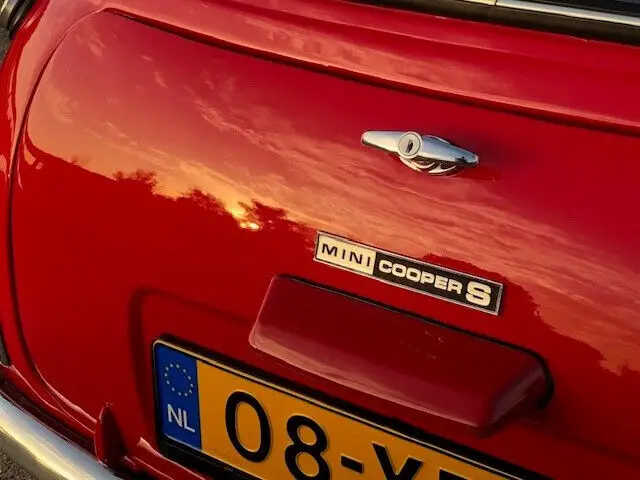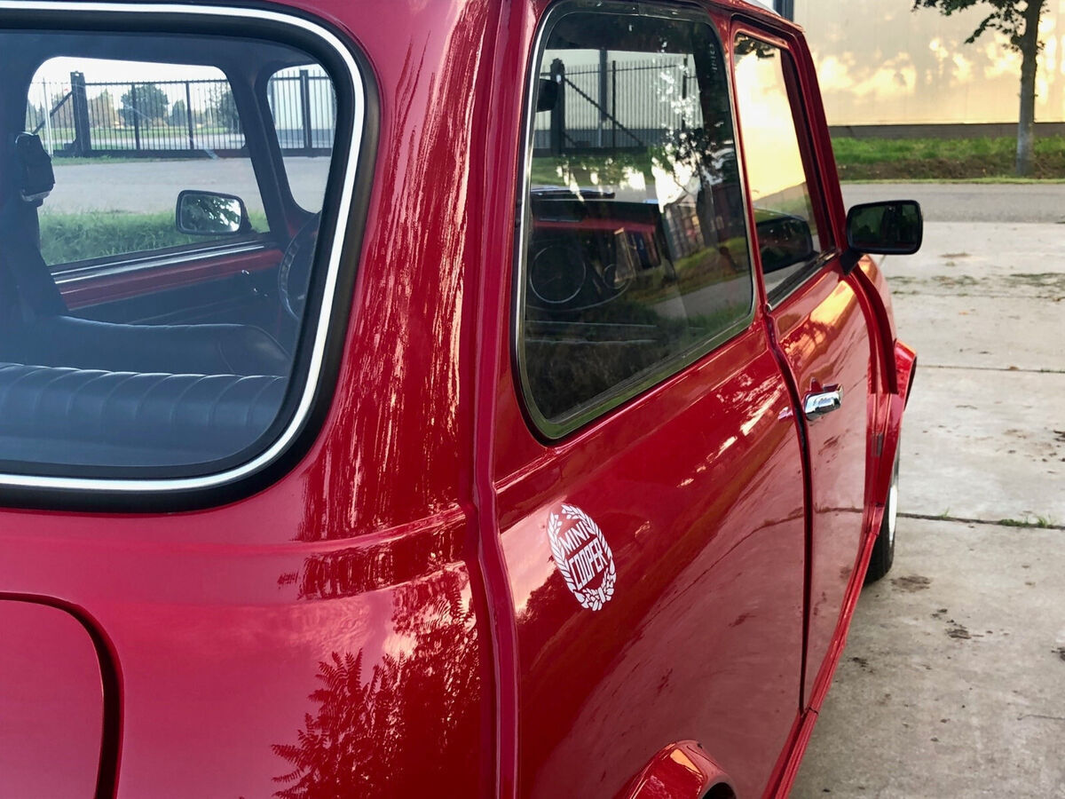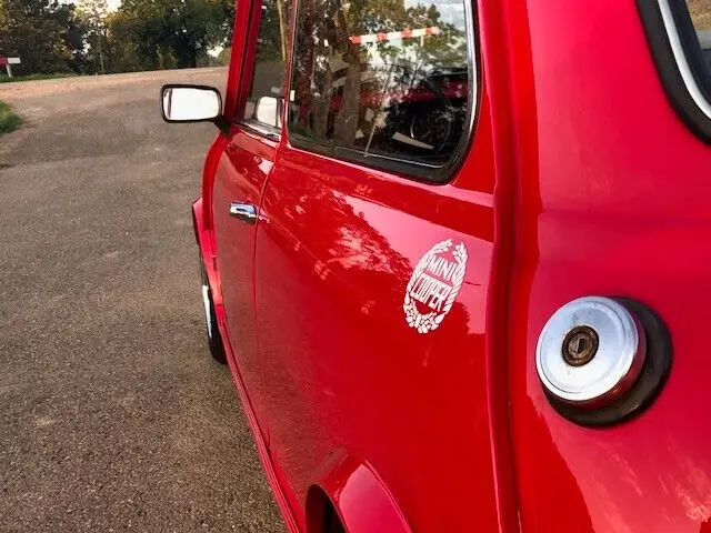 This 1974 Mini Cooper is a true classic car. It boasts a unique red exterior color.