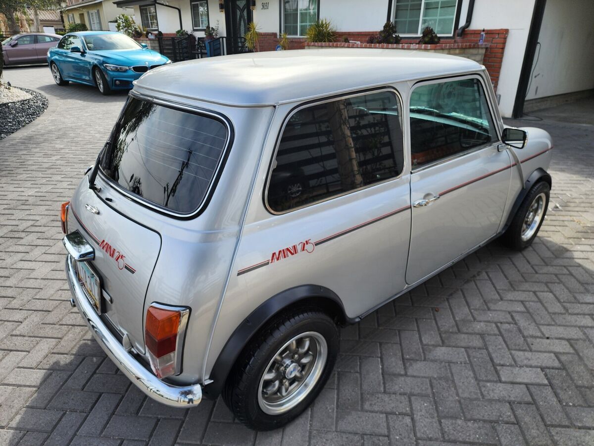 This is a very rare 1984 mini cooper. It is a “25th anniversary edition, with LEFT HAND DRIVE. The left-hand drive makes a much more comfortable drive. This car is loaded with new parts and extra additions for a more enjoyable ride. Let's go from front to back, new front bumper, new antenna, new front grill, new chrome front grill chrome surround moldings, new L/R turn signal assemblies, new L/R headlights (super bright), new L/R headlight trim rings, new all 4 fender flares, new L/R wiper arm assemblies, new L/R wiper-windshield squirters, new L/R rear view mirrors, new windshield rubber and chrome lock strip, new rear glass rubber and chrome lock strip, new tinted windows L/R sides and back glass, L/R outside chrome door handles, new rear bumper, new gas cap, new license light, new wheels and tires, front suspension rubbers and tie rod ends replaced, new L/R front hi/lo adjustable springs and cones, new L/R rear hi/lo adjustable suspension springs and cones, all new 4 shocks, new engine cooling fan electric, this fan keeps you worry free about engine overheat, this car stays a very cool 180ish even in town, also a aluminum radiator for additional cooling, kepts your engine running much longer. New engine belts and hoses, new plugs, plug wires, new electronic distributor, new coil, air cleaner, new thermostat. Also this car is quiet, (compared to other minis) before putting in new carpet the entire car was fitted with sound deadener, the firewall has five levels (layers) of sound pad, the floor has three levels doors and quarters have three levels, also rear trunk has two levels. Over the top of sound pads the new dash panel was installed, also black carpet front to back. Two new front seats were installed with track mounts approx. 4 inch back for longer legs, seat also move forward, so passengers can get to back seat. A gloss black dash was installed with multi band am/fm/bluetooth radio. New battery was install with two new battery clamps. Paint on car is almost perfect small scratch under deck lid handle, right lower, lower door paint something/scratch, paint still takes a good polish super smooth. This car is a perfect daily driver or you can drive it right to a car show and enter it, all you will have to do with this car is turn the key and drive, drive, drive. This car is local pick up only, if buyer wants to ship buyer makes all arrangements and pays all fees, and transport fees. At time of auction car will be in california.