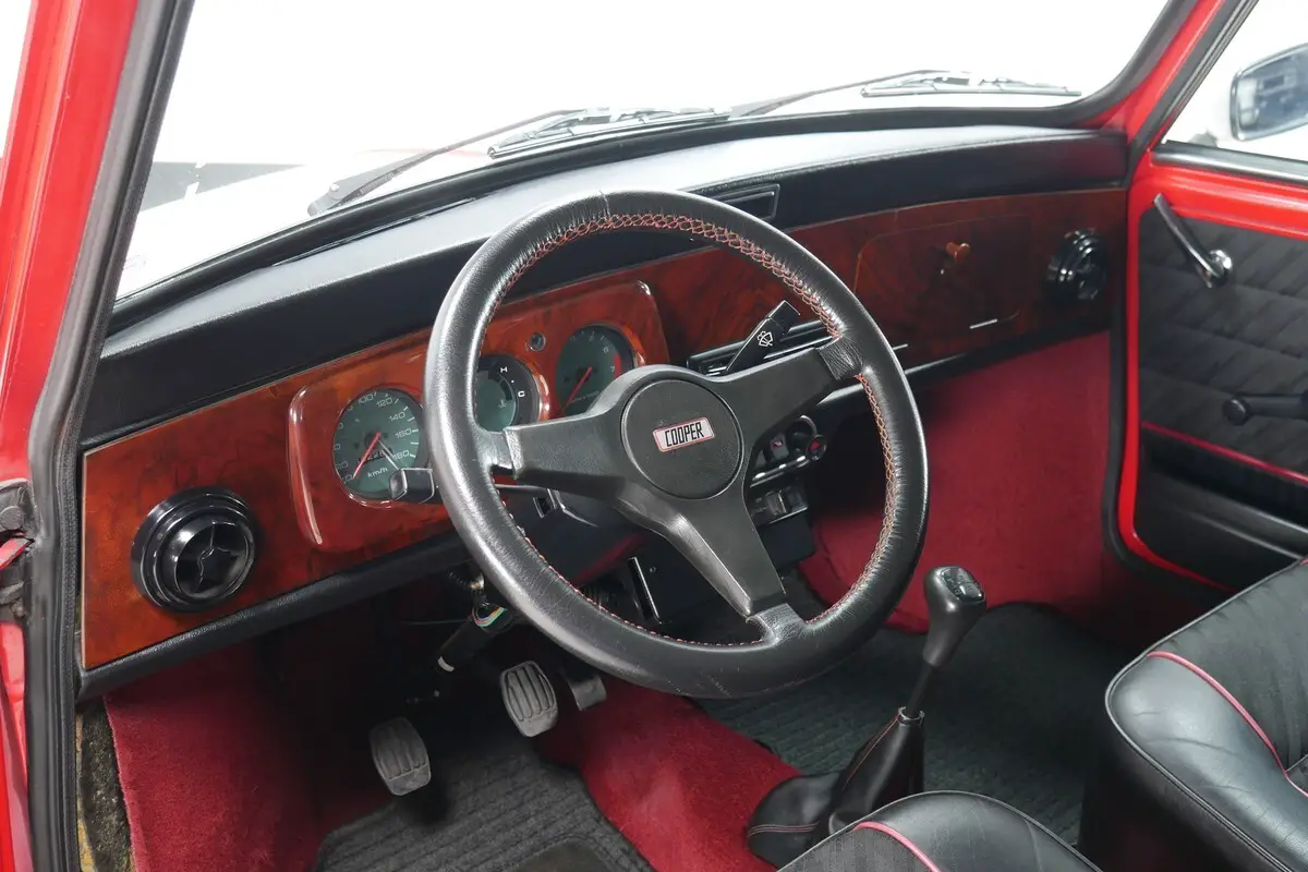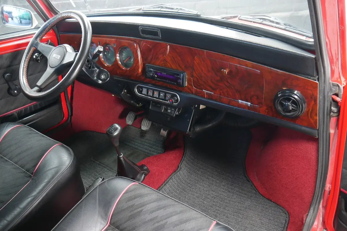 This 1992 Mini Cooper was built by Rover and has a 1.3L, 1300 cc digital fuel injected 4 cylinder engine. and has a 4-speed manual transmission and catalectic convertor. It was purchased from the original owner in Amersfort, Holland. It has 66228 kilometers on the odometer, which is 44152 miles this is the true and correct mileage. This car has a Rokie hardwood dash. It has front disc brakes, rack and pinion steering, Kenwood stereo with remote and everything works as it should. It is rust free and runs and drives great.