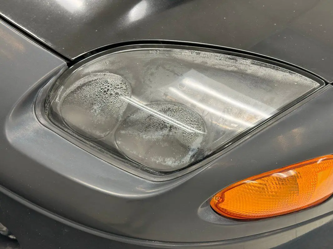 Our 3000 is done up in black, with varying shade and conditions applied to different panels. The hood, roof, front bumper cover and other horizontal surfaces show oxidation, dullness, and fading while the horizontal panels shine with a bit more promise. The pointed headlight covers, hood bulges, rear quarter fender vents, and tail make this car unmistakable, there's nothing quite like it from the era. We note some moisture behind one of those headlight covers and quite a bit of surface rust on the front and rear sill panels. The tail of the car is an attractive array of horizontal tail lights over a broad bumper cover carved out for dual twin exhaust tips topped of course, but a tail that spans the width of the car and carries the third brake light. 17-inch chrome wheels carry 45 series tires. There's fading of parts, other surface rust, chin scrapes, and aged clearcoat.