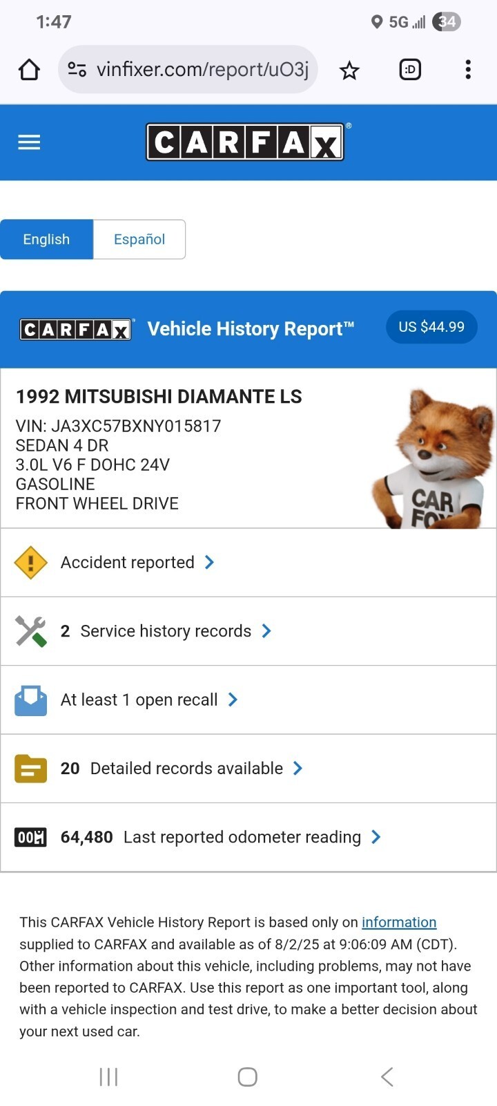 The 1992 Mitsubishi Diamante in green is an original vehicle that has been in the owner's hands for one year. With a clean title and mileage of 64,490, this car is primarily used for weekend drives. Despite its age, this reliable vehicle is still drivable and offers a comfortable and smooth ride. Its retro design and unique color make it a standout choice for those looking for a classic and affordable car for leisurely weekend adventures.
