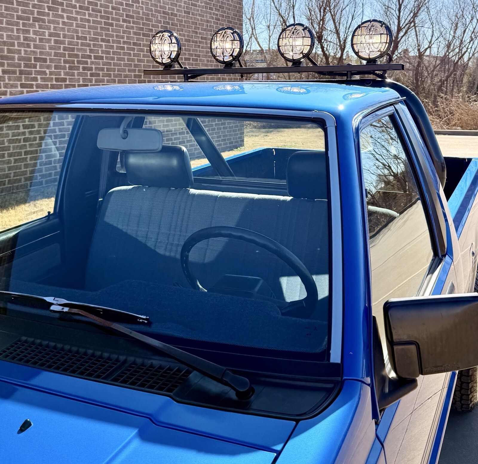 Additional upgrades include an aftermarket roll bar fitted with KC lights, giving the truck a subtle period-correct off-road aesthetic while maintaining its original character.