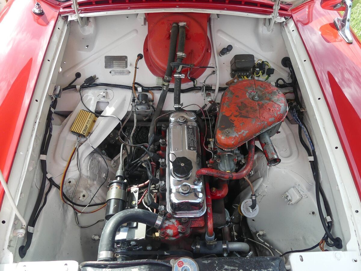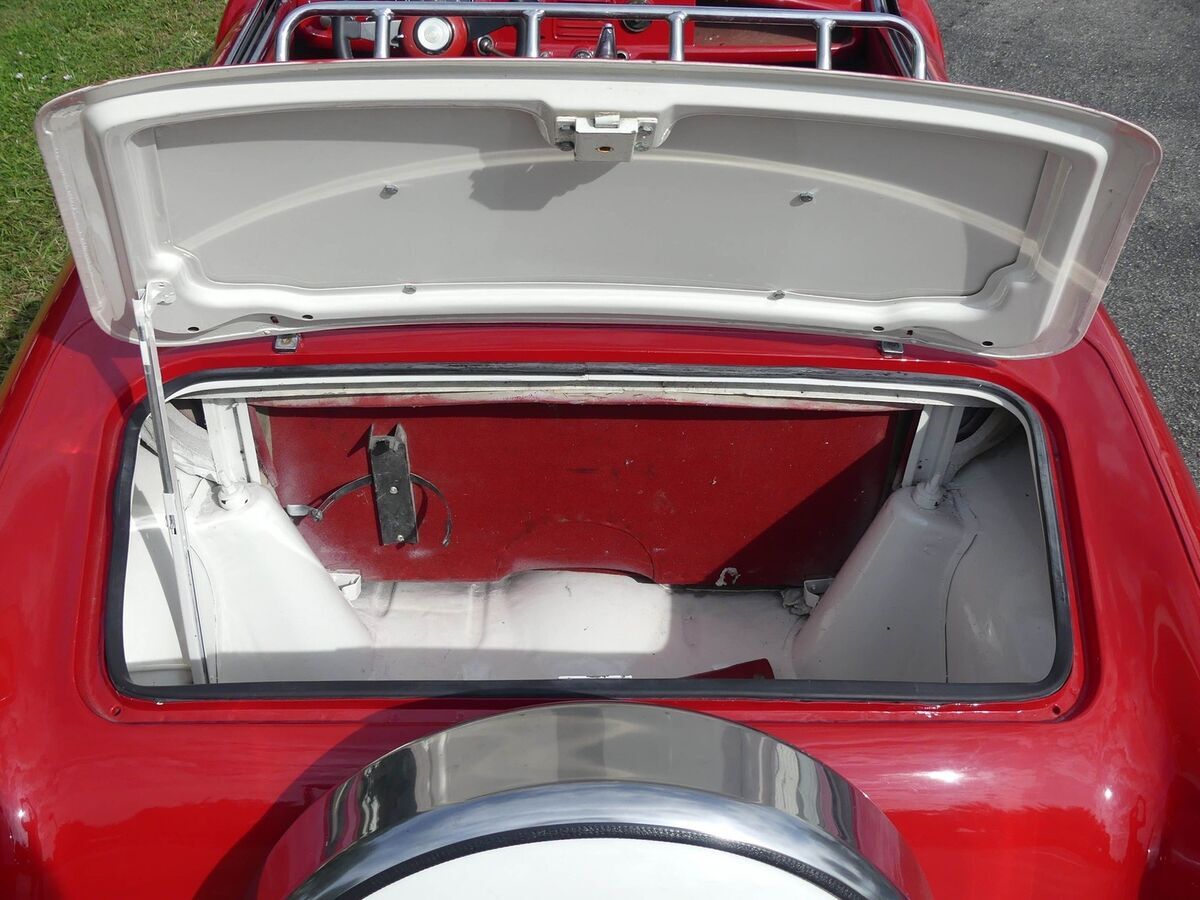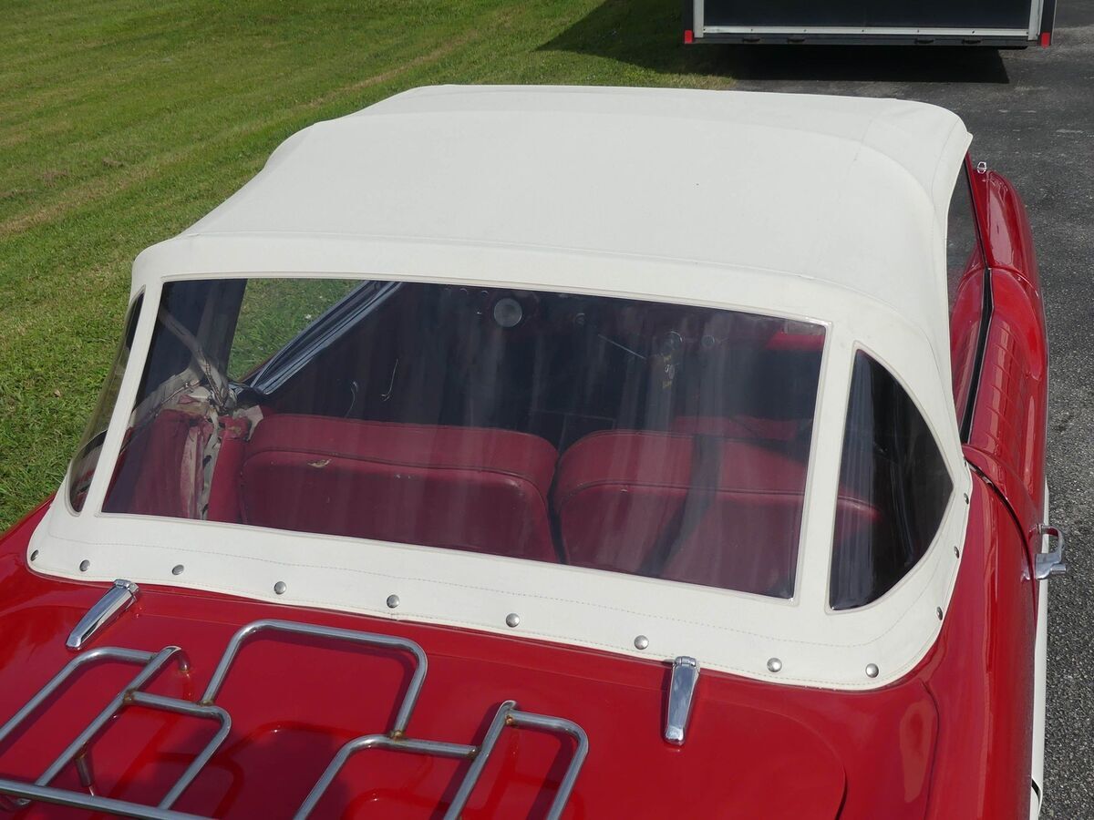 This one is painted in a classic Red over White color scheme with matching new white convertible top, and white wall tires. That scheme carries into the interior with seats recently redone in red cloth and vinyl. They didn't come with a glovebox door in 1956, so that open cubby is correct! Drop the convertible top and roll down the windows for a fun open air vibe as you hit the streets.