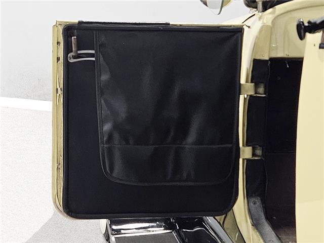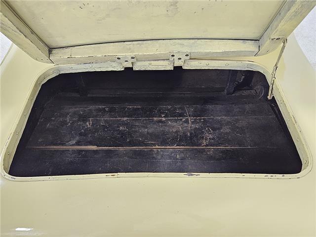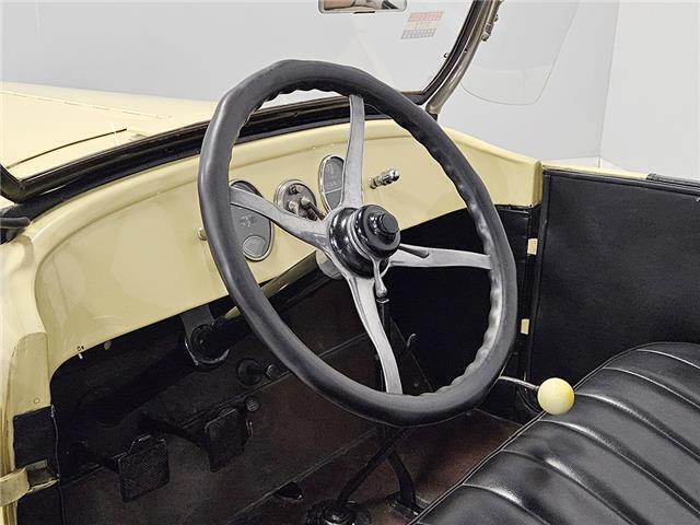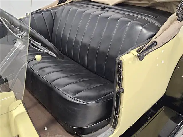 The simple black leatherette interior is cozy for two and comfortable enough for touring. Controls will be familiar to anyone who has driven other cars of this era, with a standard 3-speed manual shift pattern, a foot pedal starter, and controls for the ignition timing and hand throttle on the steering wheel hub. The lone modification is a small toggle switch under the dash to the left of the steering column, which controls the electric fuel pump (it needs to be on to run the engine). All the gauges appear to be operational, although we’re not sure we trust the gas gauge, while familiar Delco switches control the ignition and lights. The upholstery and door panels are in very good condition and it offers a small storage compartment behind the seat. Overhead there’s a recent tan canvas convertible top that folds easily and provides a modicum of weather protection when combined with the included side curtains. In back there’s a decent-sized trunk that’s ideal for a weekend of touring for two.