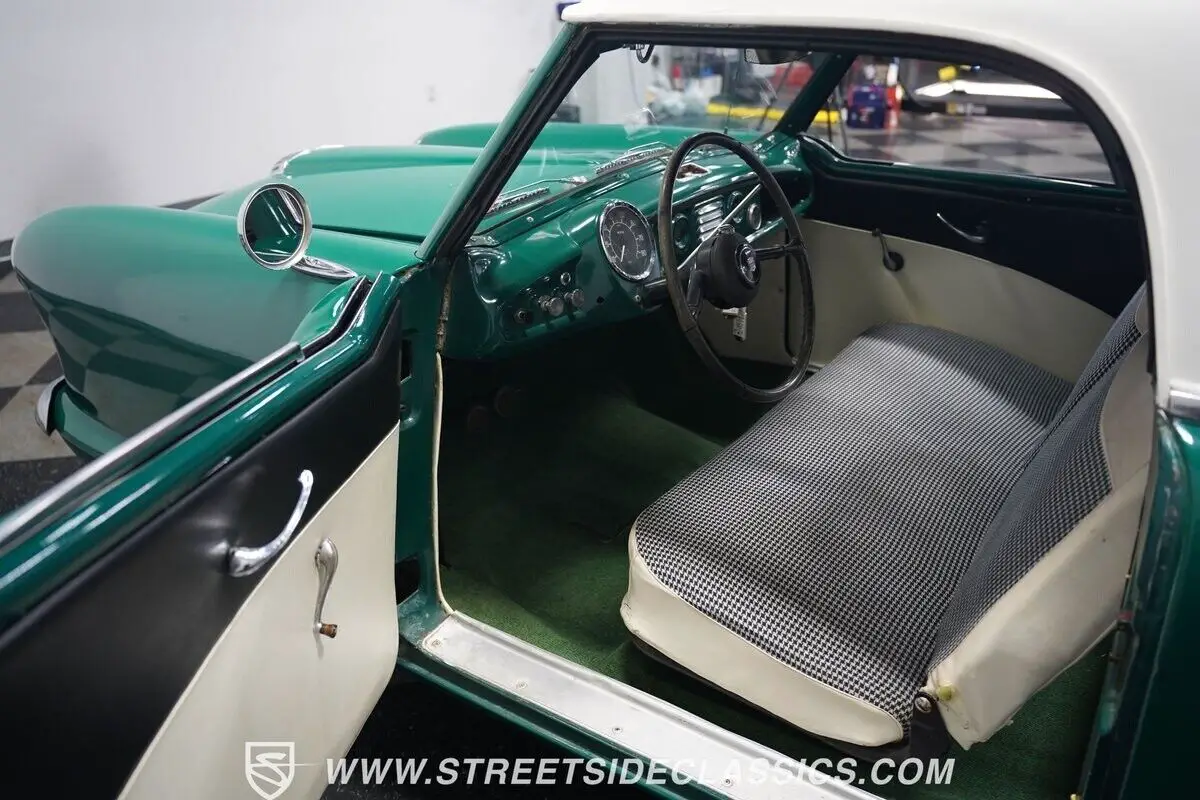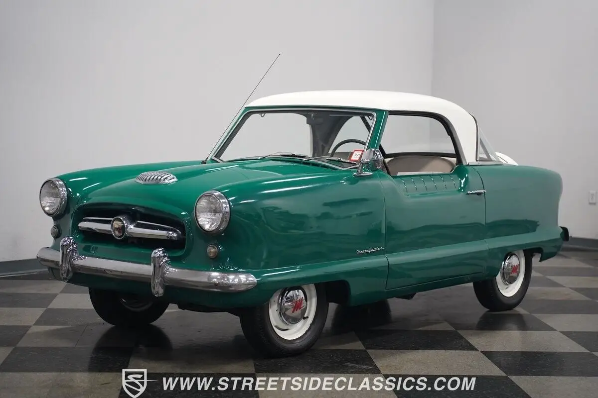 Vehicle Original VIN : E24274522-NSH 1954 NASH METROPOLITAN This 1954 Nash Metropolitan marks the first year of production for this iconic compact car. The distinctive green exterior paint amplifies its unique curved body lines, while chrome brightwork adds period-correct flair to its compact proportions. Steel wheels with dog dish center caps give it an authentic 1950s appearance, matched with P155/80R13 tires on all four corners. The clean glass and updated lighting elements complete its classic appearance. A blend of white houndstooth vinyl and cloth covers the bench seat, creating a comfortable and period-appropriate interior space. The dash features a fresh coat of paint that maintains its original design aesthetic. Basic controls and a column-mounted shifter keep everything within easy reach, staying true to the car's straightforward nature. The 1500 CC four-cylinder engine paired with a 3-speed manual transmission delivers more punch than the original powerplant. A single-barrel carburetor handles fuel delivery duties, while an aftermarket exhaust system manages the output. The traditional drum brakes at all four corners bring everything to a stop, supported by the factory suspension setup. HIGHLIGHTS: • 1500 CC 4-Cylinder Engine • 3-Speed Manual Transmission • Single-Barrel Carburetor • Aftermarket Single Exhaust • Drum Brakes • Green Paint • Chrome Brightwork • Steel Wheels with Dog Dish Centers • P155/80R13 Tires • Updated Lighting • White Houndstooth Interior with Bench Seat • Painted Dashboard • Column-Mounted Shifter This 1954 Nash Metropolitan combines classic 1950s styling with upgraded power from its 1500 CC engine. The manual transmission adds driving engagement while the clean interior maintains period correctness. Call today!