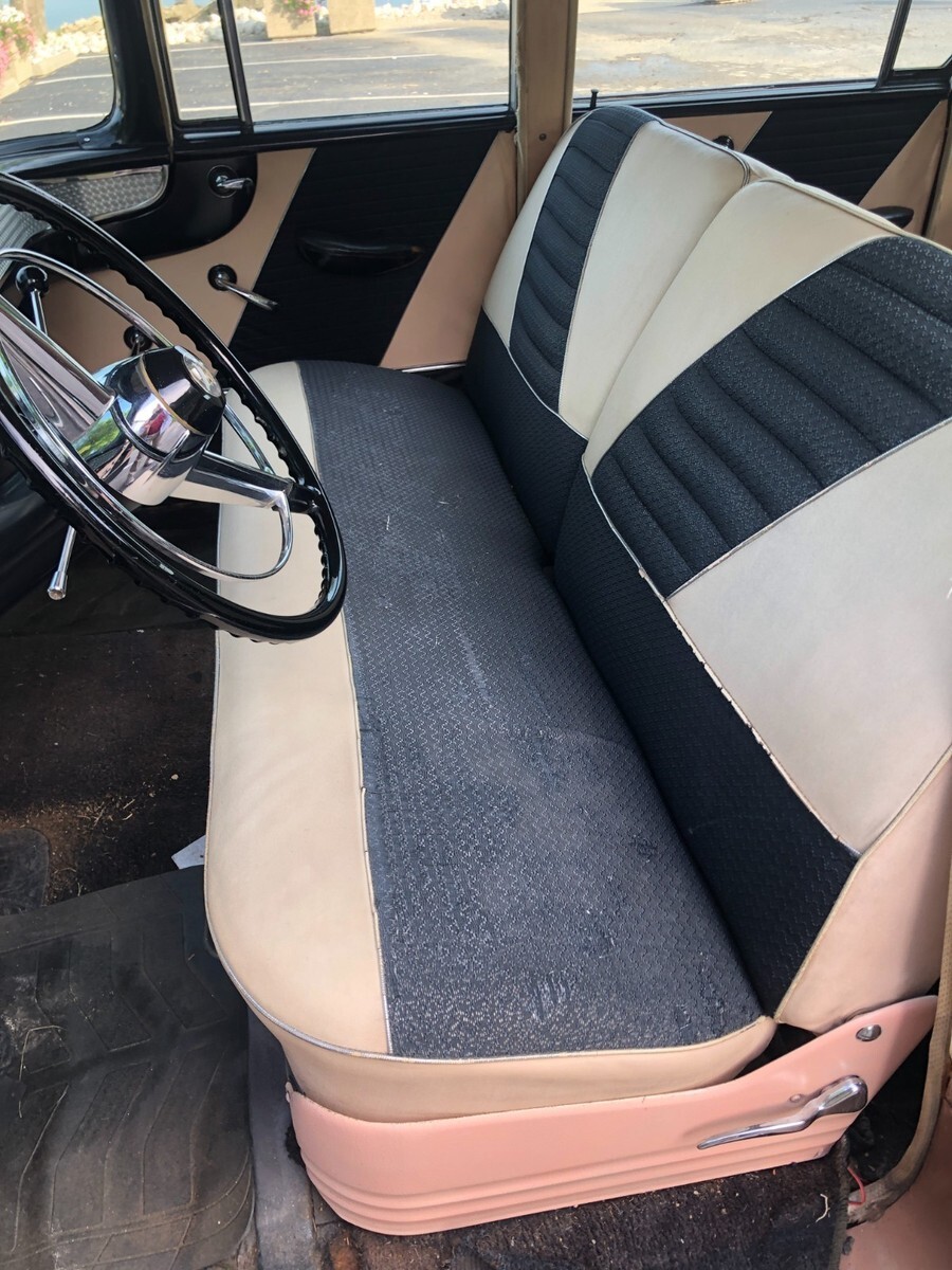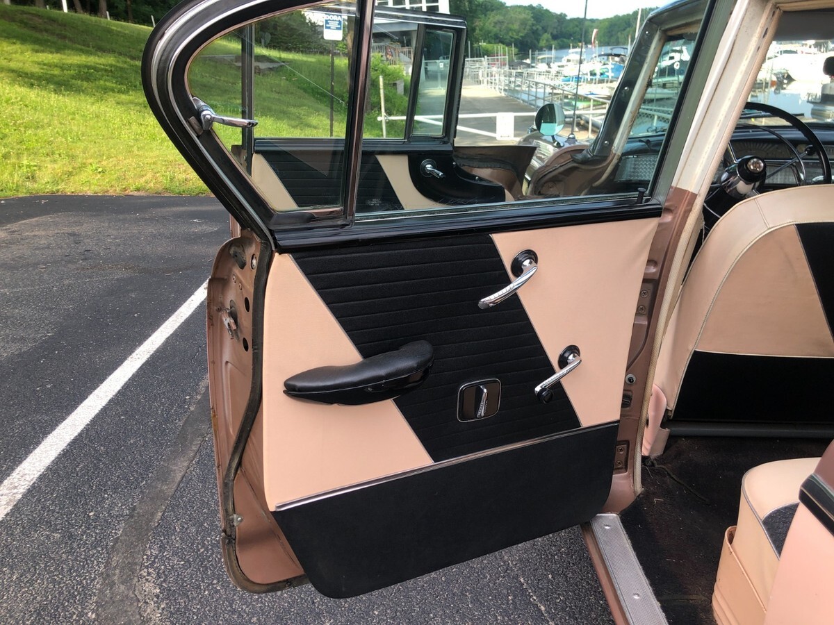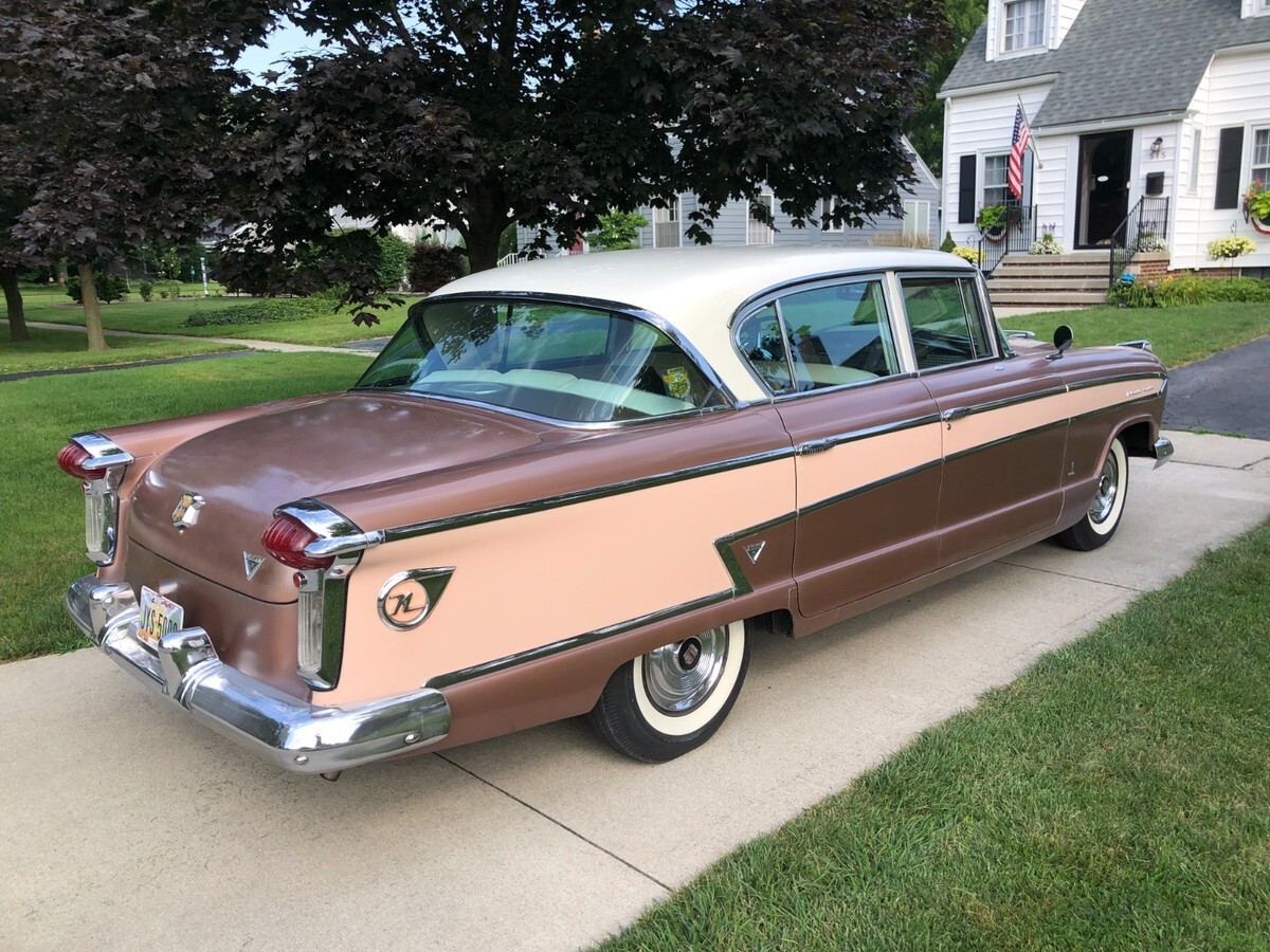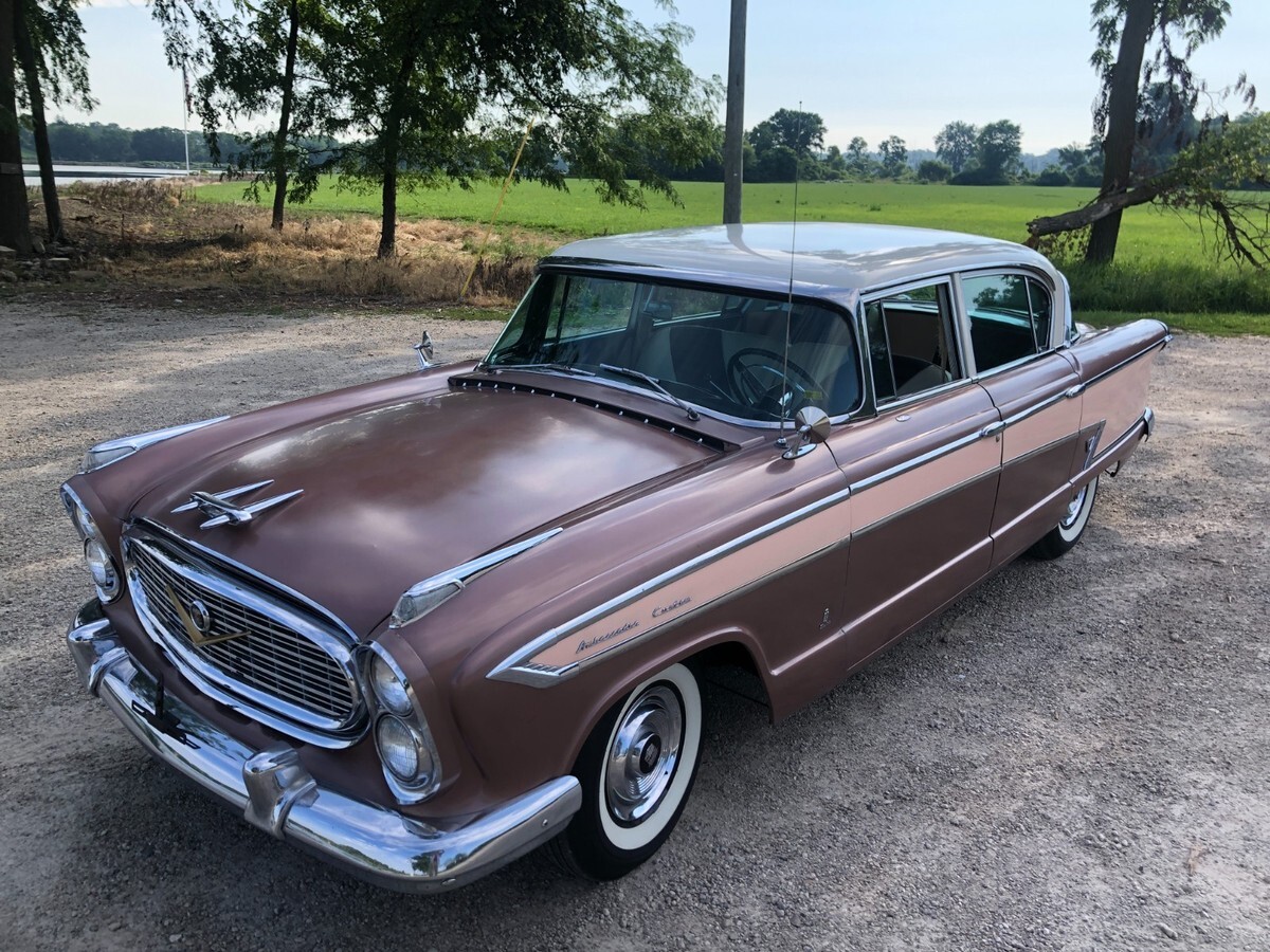 Up for sale is an extremely solid and rust free low mile original 1957 AMC Nash Ambassador Custom. Originally purchased by Hazel Haas Neal of San Leandro, California, this car has been under the ownership of car collectors since 1971. The top-of-the-line Ambassador, it’s a well-equipped Ambassador with: Automatic, Power Steering, Power Brakes, Air Conditioning, tinted windows and light group, with low original miles of 63,400 miles, it will be very hard to find a comparable Ambassador. Super solid, there is no rust-thru or surface rust on this car.The car comfortably sleeps three when the bed is folded out, includes one Nash air mattress.It appears to have had a respray about forty years ago. In terms of what it needs: the front carpets have significant ware, windlace is fraying and should be replaced, the AC needs a recharge. Details like the door panels and headliner look great as depicted in the photos. The car can be driven with confidence, took it for a 100 mile trip yesterday. Equipped with the AMC 327 the car performs well as does the GM Hydramatic transmission. Recent work: replaced the water pump and installation of NOS turn signal bezels. If you have any questions, please don’t hesitate to contact me. Not interested in any trades, I am downsizing. Being sold as-is where-is. Good luck bidding on the Nash.