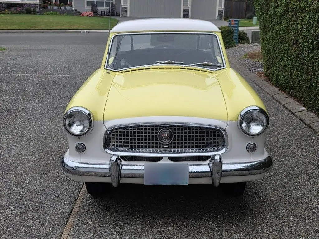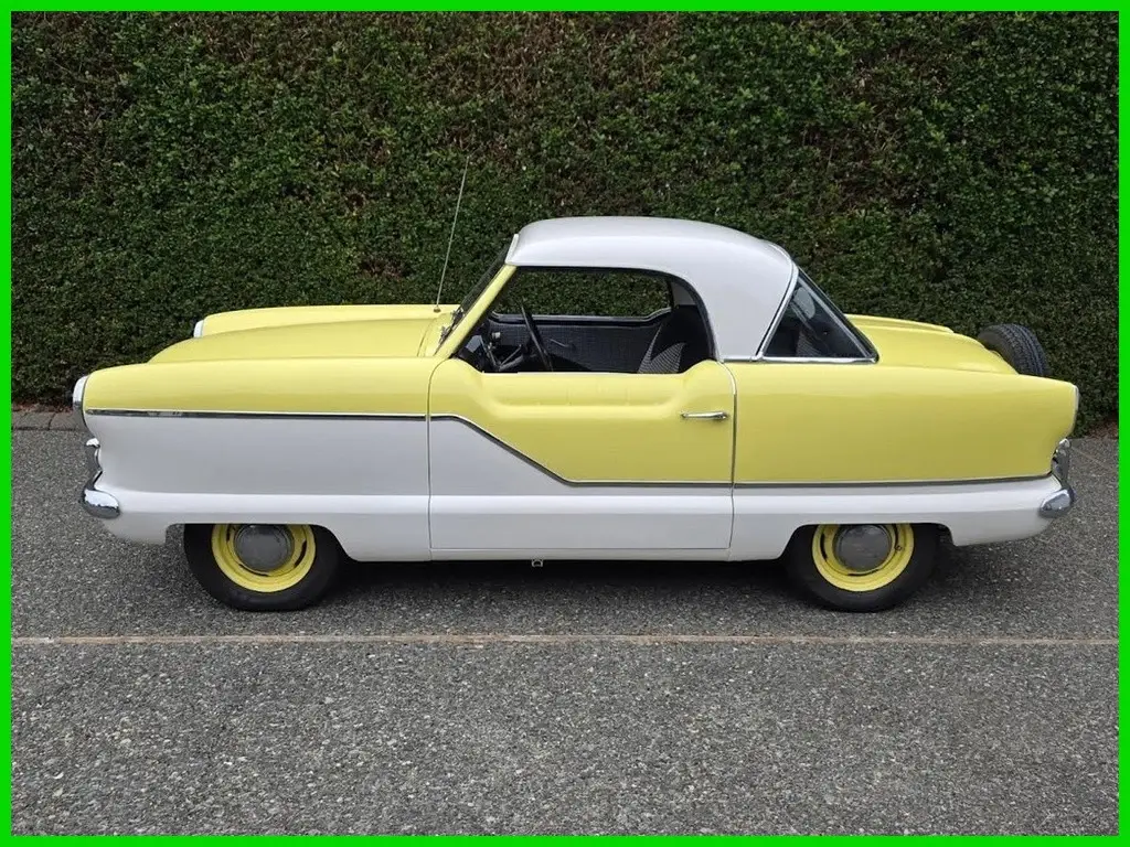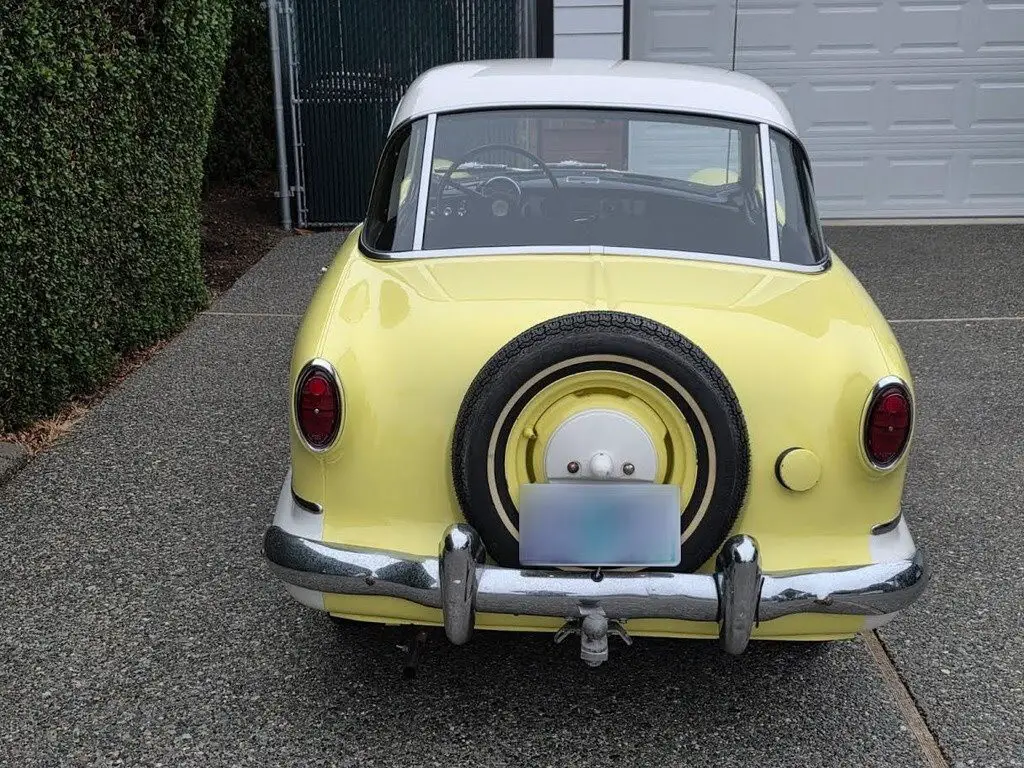 1956 Nash Metropolitan Coupe For Sale in Brookings, OR 97415 This Nash is powered by a 1489cc engine paired with a 3-speed manual transmission. The odometer shows 34,400 miles and is shown with a two-tone yellow and white exterior and a gray and black houndstooth interior. This vehicle was fully refurbished in 2024. Features Two-Tone Paint with Chrome Accents Original Houndstooth Interior Rear Continental Spare Tire & Bumper Hitch Upgraded Exhaust System Rebuilt Transmission, Clutch, & Carburetor Owner’s Notes &