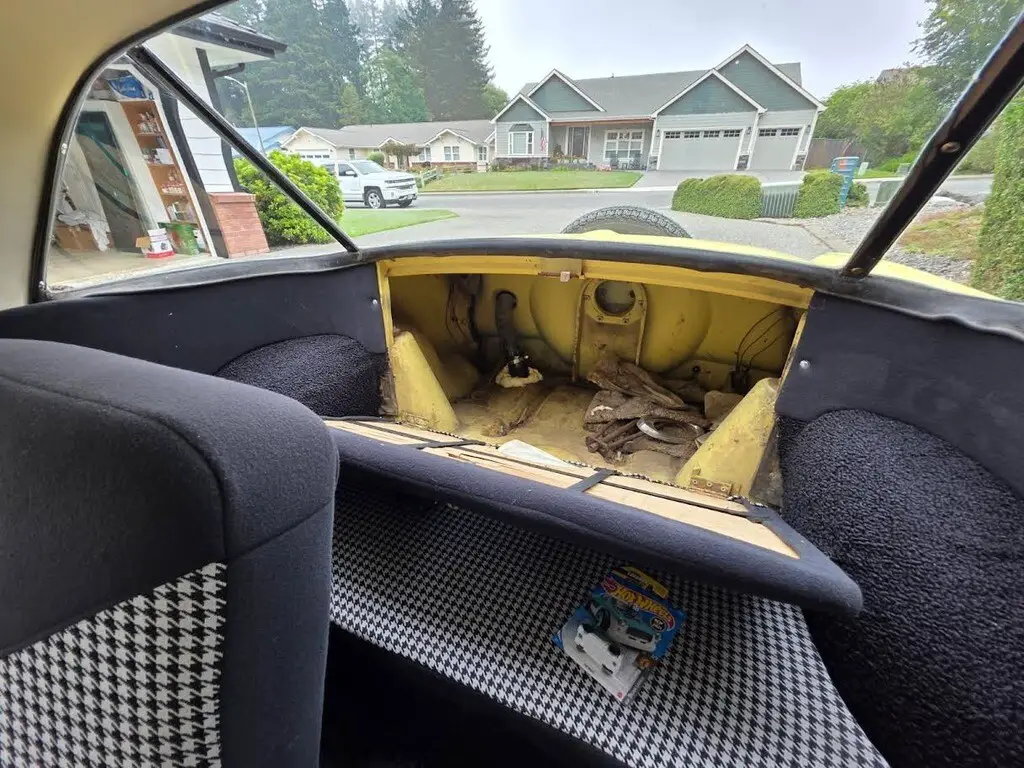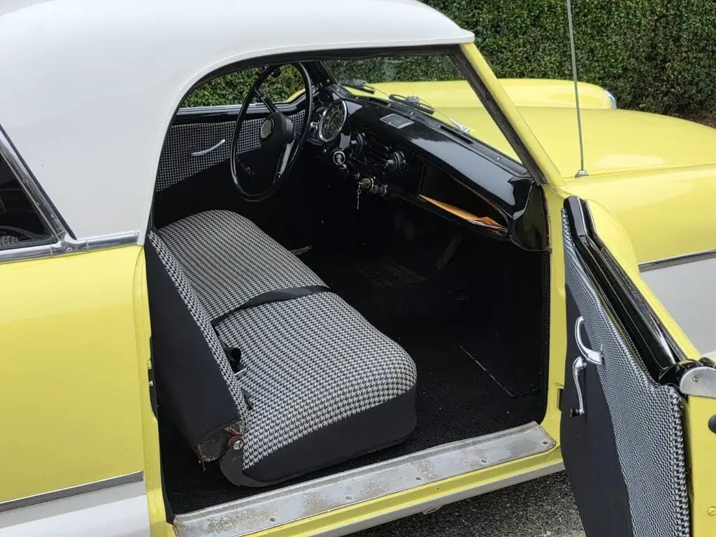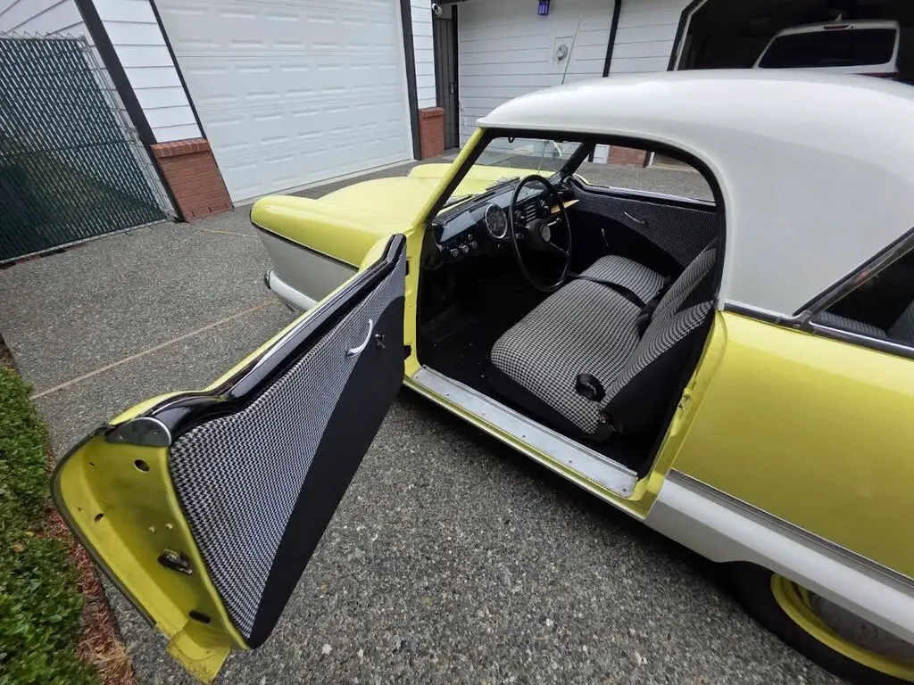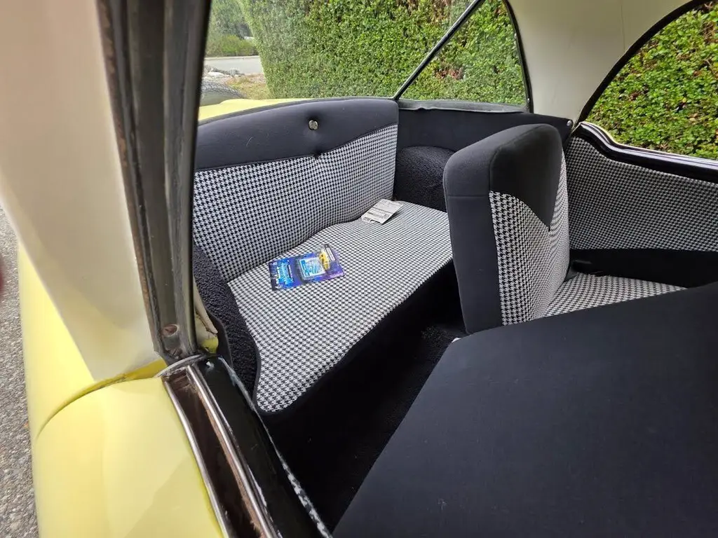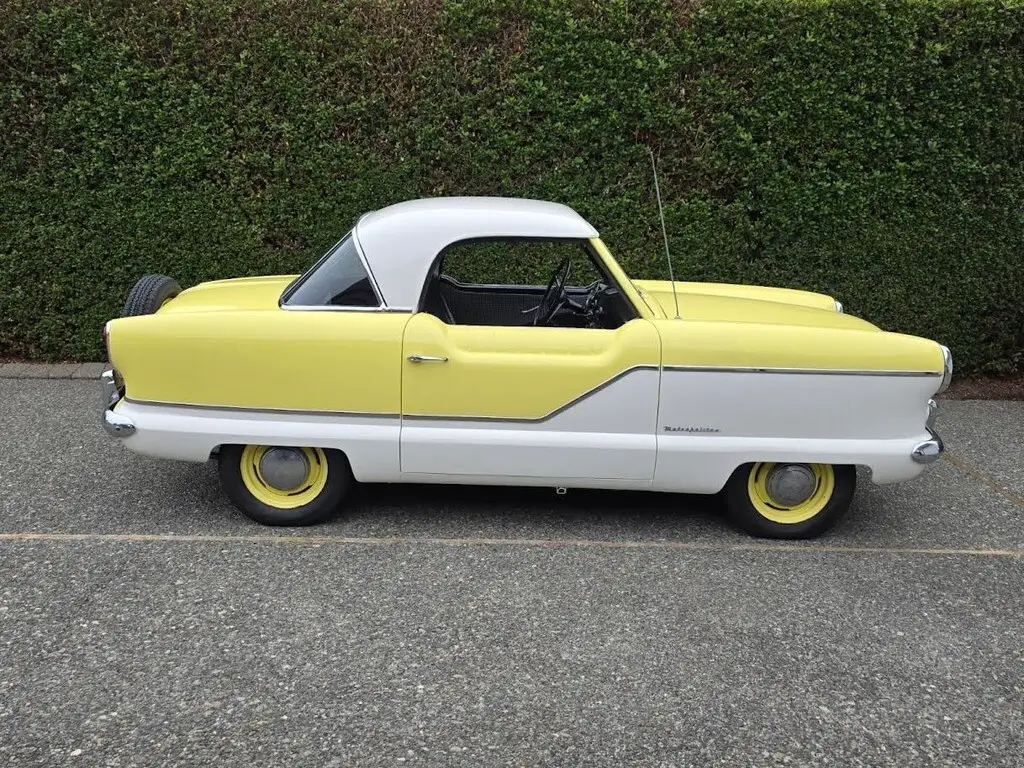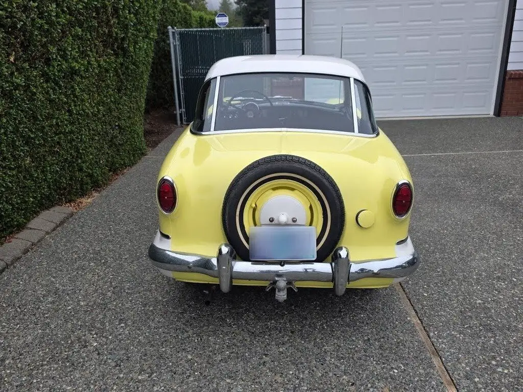 “This 1956 Nash Metropolitan Coupe is a charming, well-preserved classic that was refurbished in 2024 and has been garage kept and non-smoking. It features a beautiful yellow and white exterior paired with an original houndstooth interior that remains in very good condition. The car has received extensive recent work including new tires, fuel tank and lines, a completely refreshed brake system, new exhaust and muffler, as well as a rebuilt clutch, transmission, and carburetor—making it a strong, reliable driver. It also includes a rear continental tire and bumper hitch for added vintage character. The chrome bumpers do show some minor pitting, consistent with age, but overall this Metropolitan presents very well and is ready to be enjoyed.”