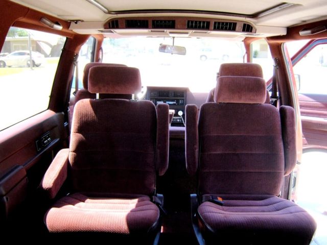 Dual sunroof, one is electrical, pw windows, locks, mirror, pw steering, tilt steering, cruise control, dual AC front and rear, spot lights, AM, FM cassette stereo player, rear defroster, built in refrigerator and ice maker compartment, All lights, whistles, signals works perfectly, swivel captain seats that can be removed, Nissan original donut tire still has the lines means never touch the ground!, original Nissan jack kit, Nissan user manual and repairs.