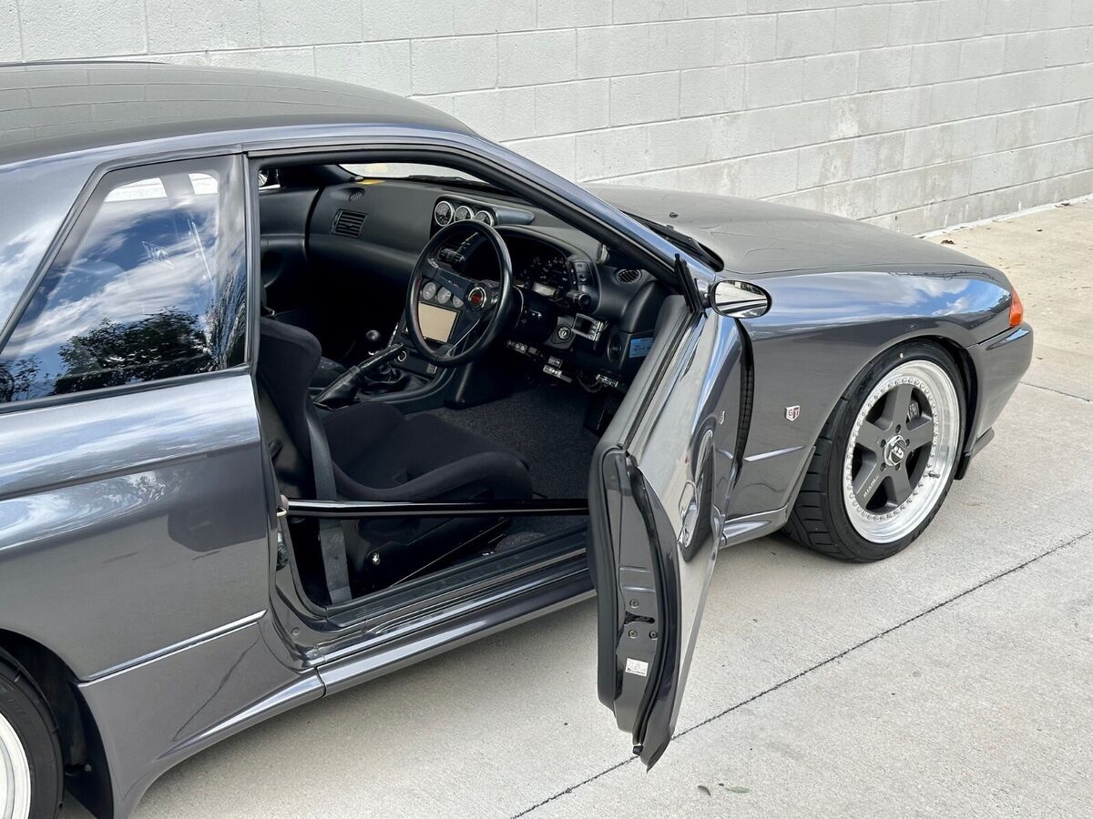 Not only does this R32 shine mechanically, it might also be the cleanest and best condition currently on the market. Finished in its original Gun Grey Metallic, the car has never been repainted and wears its factory paint. Not only is it original, it is virtually flawless with little to no imperfections - meticulously preserved. The front end looks nice and aggressive with 90’s period mirrors and a front mount intercooler / external oil cooler setup peaking through the Nismo front bumper and JUN Style front lip. The exterior is fitted with the following Nismo parts: