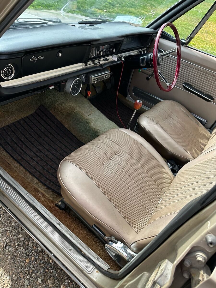 This 1969 Nissan Skyline is an original vehicle that has been well-maintained by its owner for one year. It has a clean title and a mileage of 41,000. The vehicle runs great and is mainly used for car shows. The color of the car is brown.