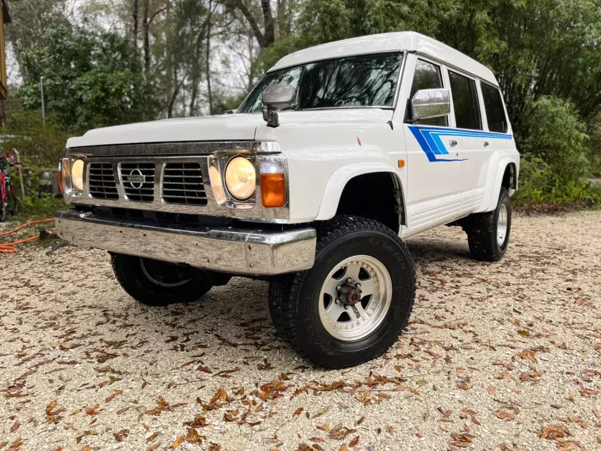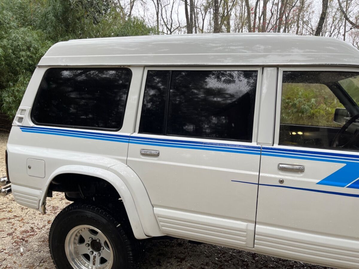I brought this amazing 4500lb 1993 Safari over from Japan in 2020. Its got a 4.2 liter inline-6 diesel motor(TD42) with a five-speed manual transmission that makes 125hp. At 165,000 miles it runs like a train. Its got a 24V electrical system with 2025 batteries, a dual range transfer case, auto-locking front axle hubs, rear limited-slip differential (LSD), lift kit, white paint, gray velour upholstery, 17″ alloy wheels, front & rear adjustable panhardrods, front and rear disc brakes, steel braided brake lines, Rancho performance steering dampener, Fox Racing 2.0 Perf. Series IFP smooth body shocks, a steel front bumper, sliding quarter windows, split front & rear air conditioning, power windows (rear right sticks) and door locks, and power mirrors. Highroof headliner is 9/10. AC is beyond powerful. The 4L position drives SO good.