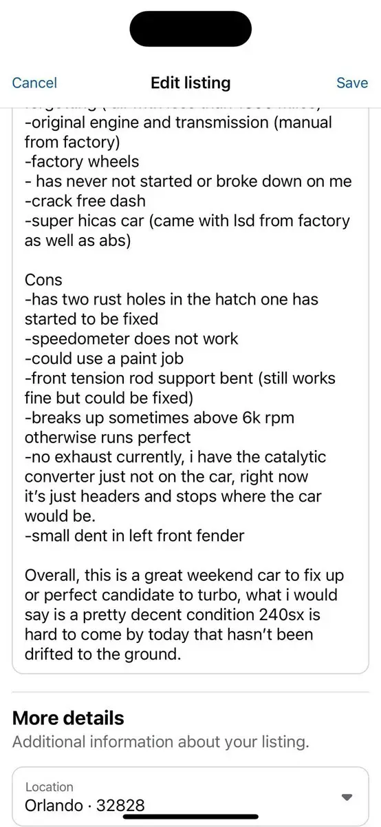 it’s a clean title 1991 240sx LE with 200k plus miles. runs great and drives like a charm mostly stock besides emissions deleted and hicas (4 wheel steering) removed as well as a battery kill switch wired in and an intake.