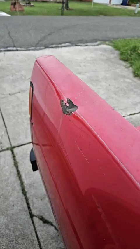 Exterior: Rough condition: Scrape from driver fender across door to include front side of bed. Passenger door handle broken, some primer showing on hood.