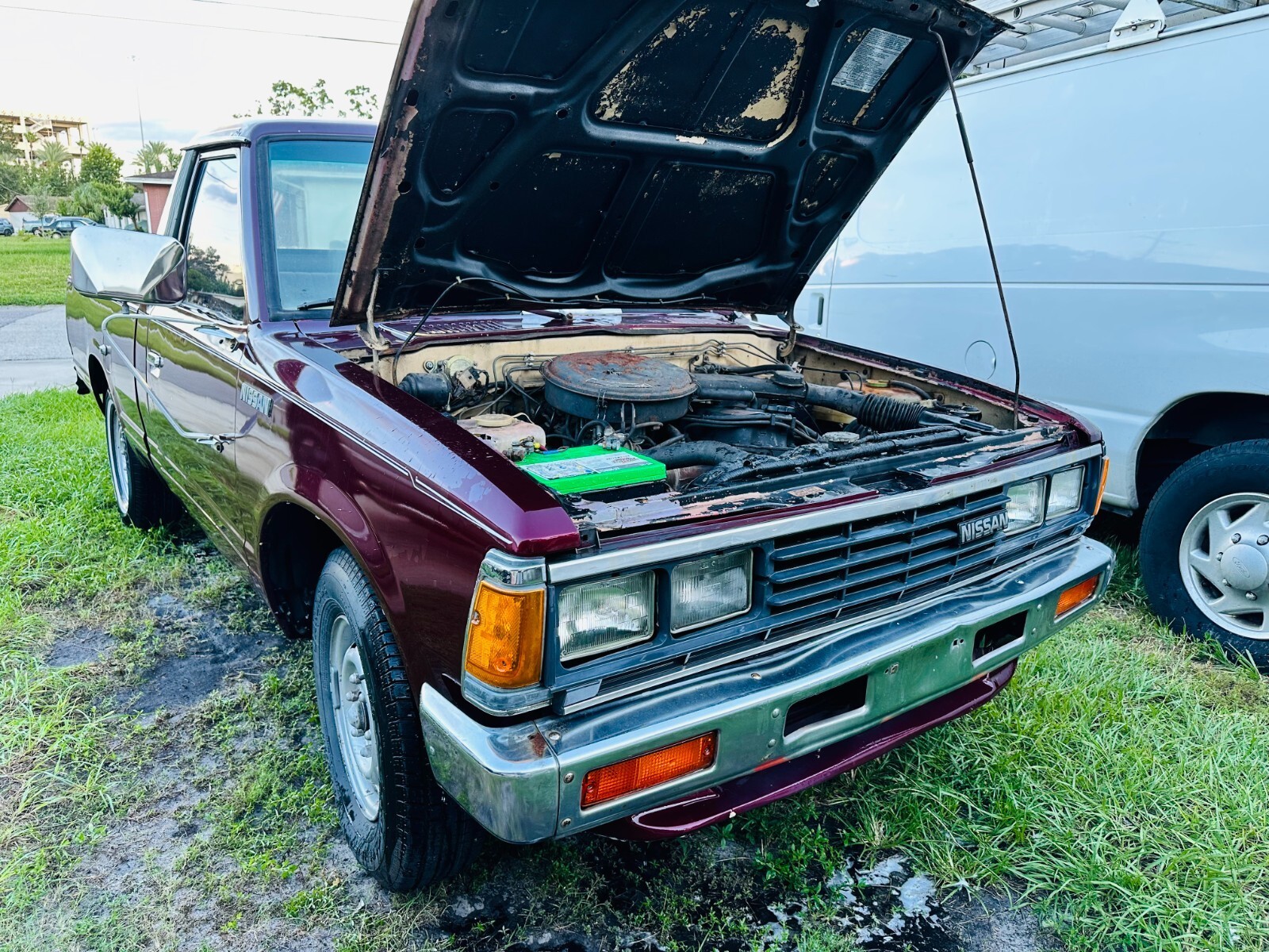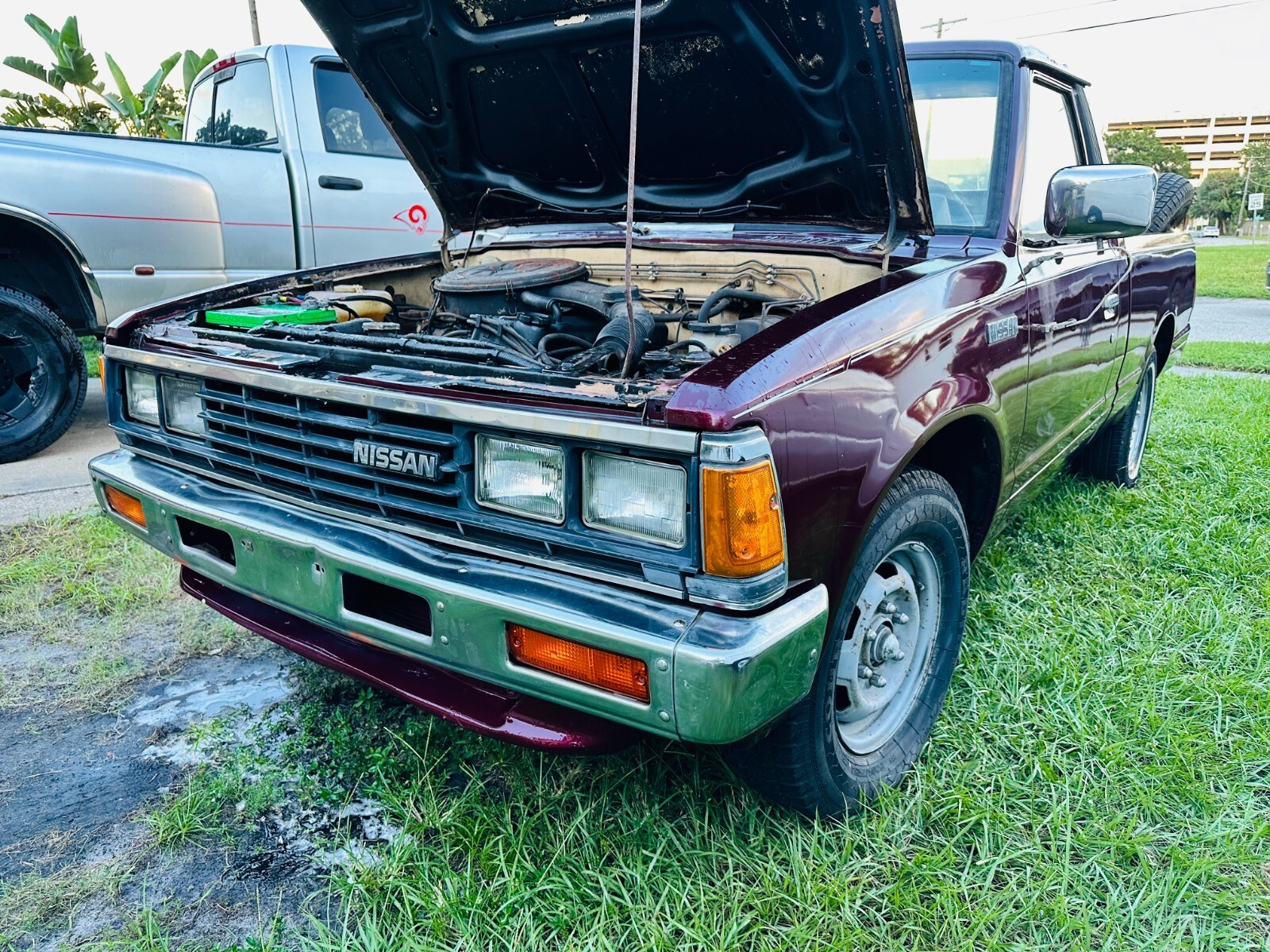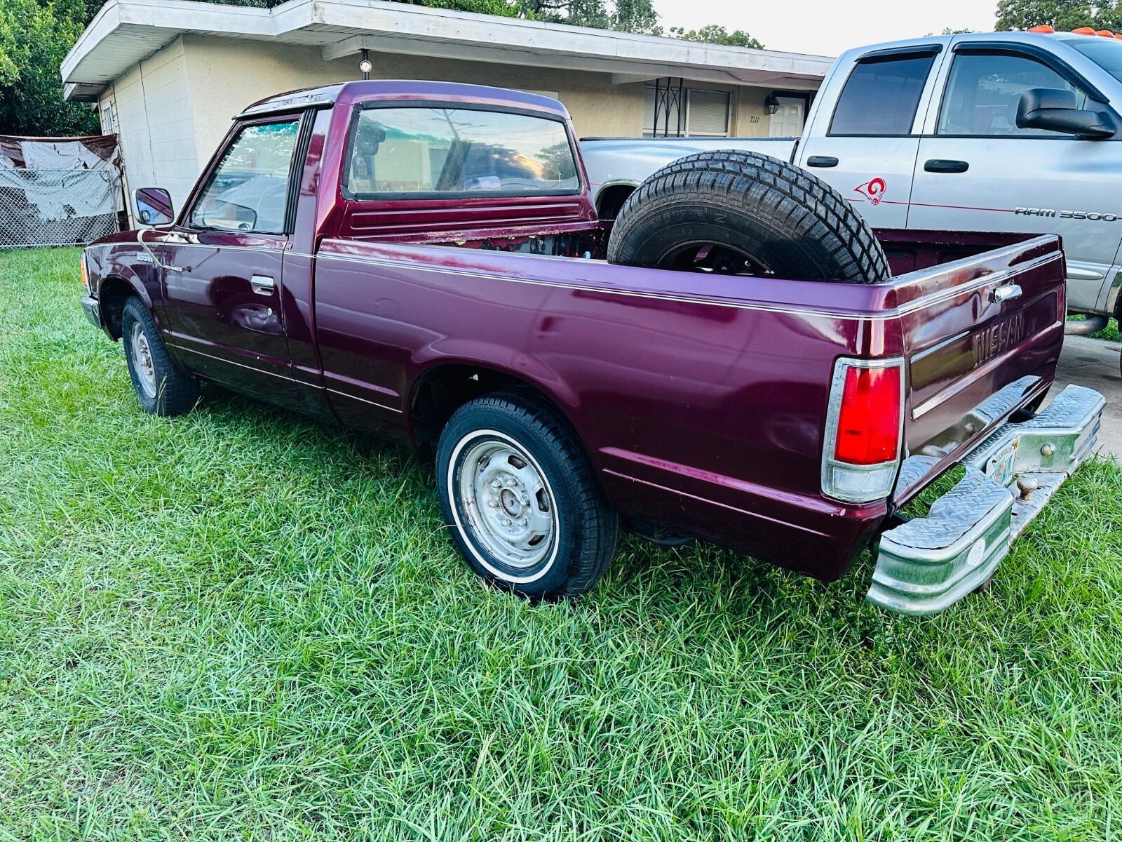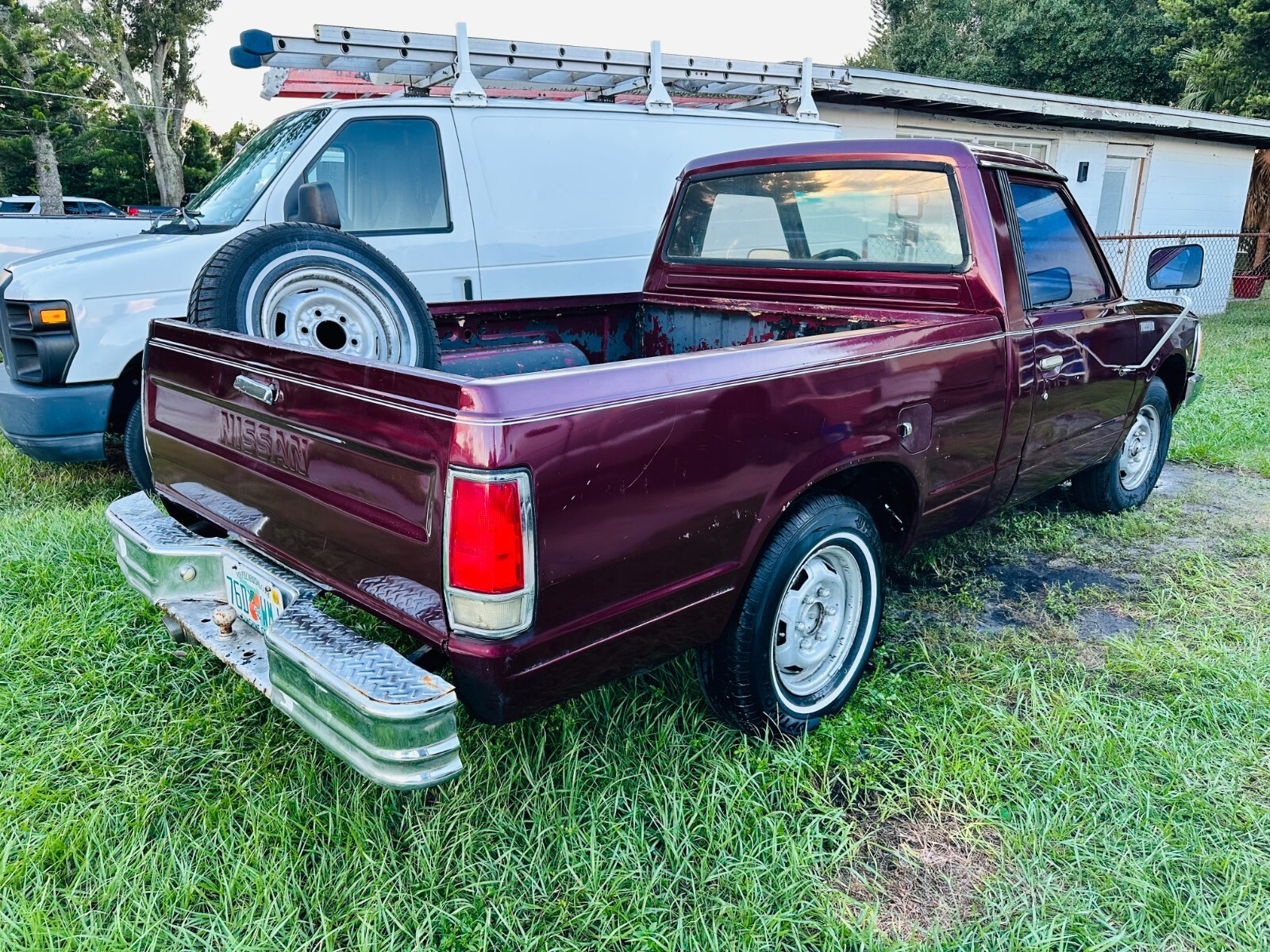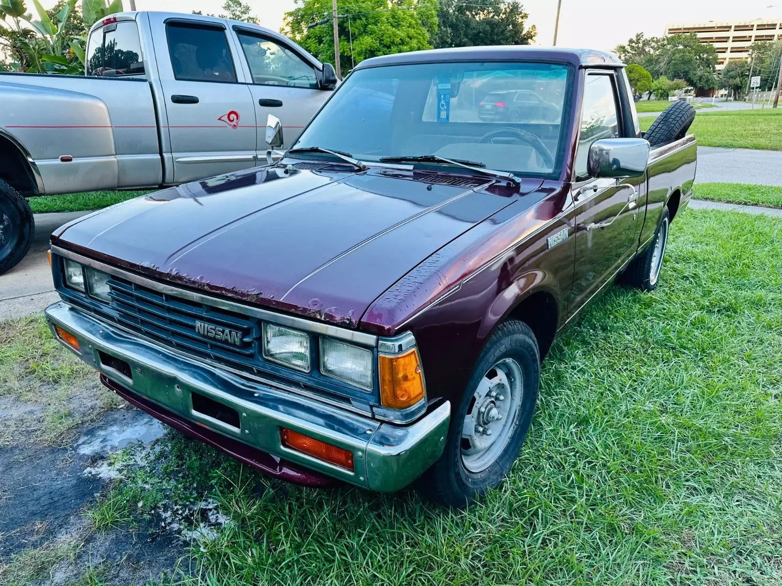 Here we have a Listing for a Classic 1985 2.3 4cyl 5sp manual Nissan 720 5 1/2 foot short bed pick up.Clean Florida title.New carb, new brakes, new water pump, new viscus fan, new battery, starts first time runs and drives well through its 4 forward gears and reverse...Has a small fuel cell in the bed behind the cab, takes just 6 gallons, easier to set that up with new filter and hose rather than trying to remove and clean out old tank which is no doubt full of sludge and dirt from standing for years...Great daily driver project, could do with a nice set of wheels and tires, drive away but be aware that the rear tires are cracked.Been sat under carport for many years, clean frame throughout and some body work needed here and there as you can see in the pictures, front edge of passenger side hood, little bit on drivers side rear roof, and leading front edge of bed floor...