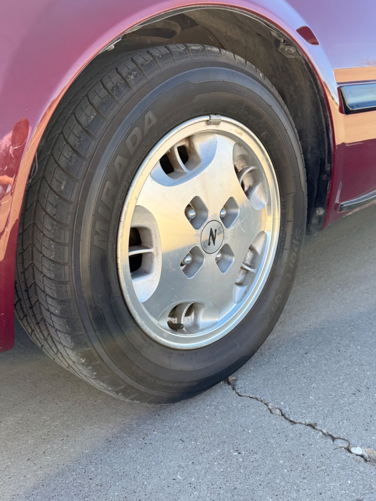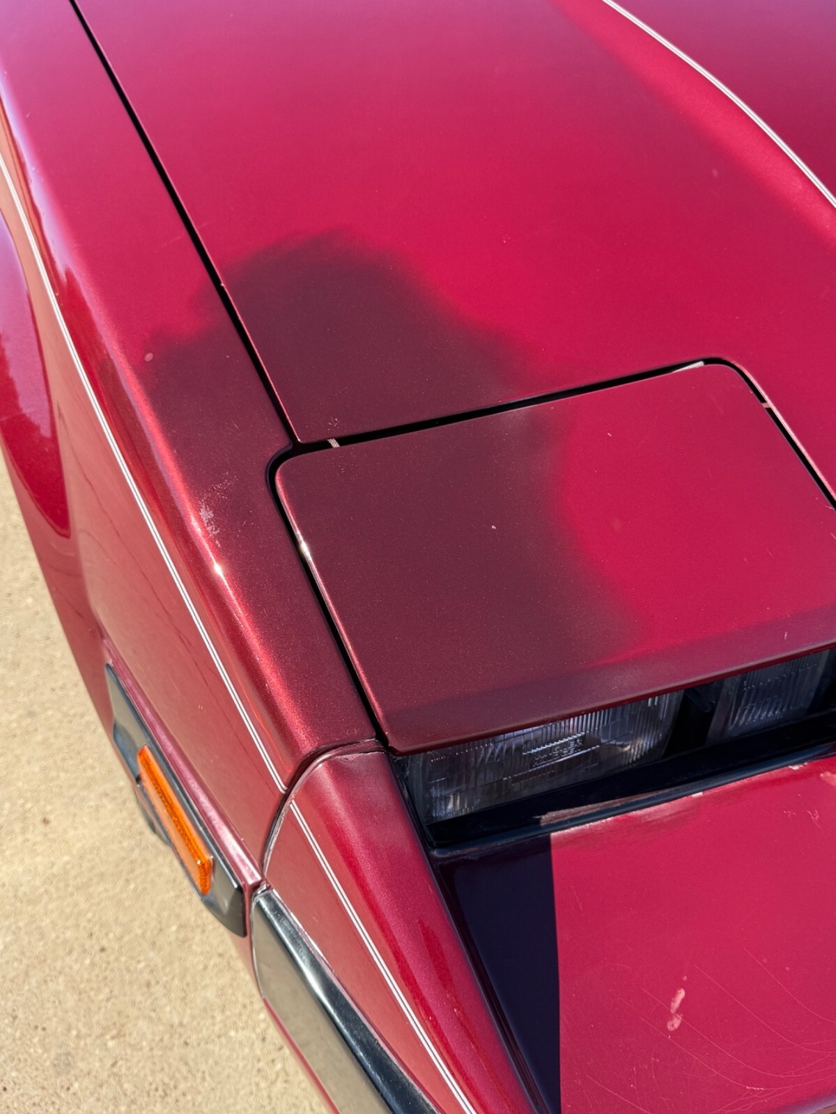 - Exterior (6/10): Shiny maroon paint looks good from distance and gets compliments, but has had repairs over the years. Full disclosure: Passenger-side hood/headlight area has a visible imperfect repair (close-ups in gallery early—no hidden issues). No major rust.