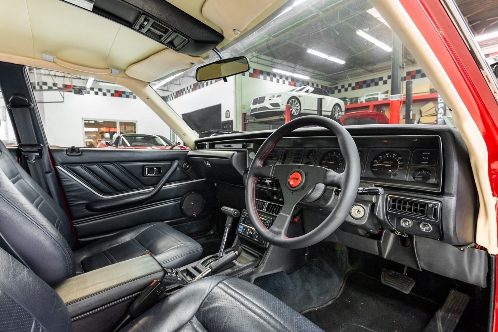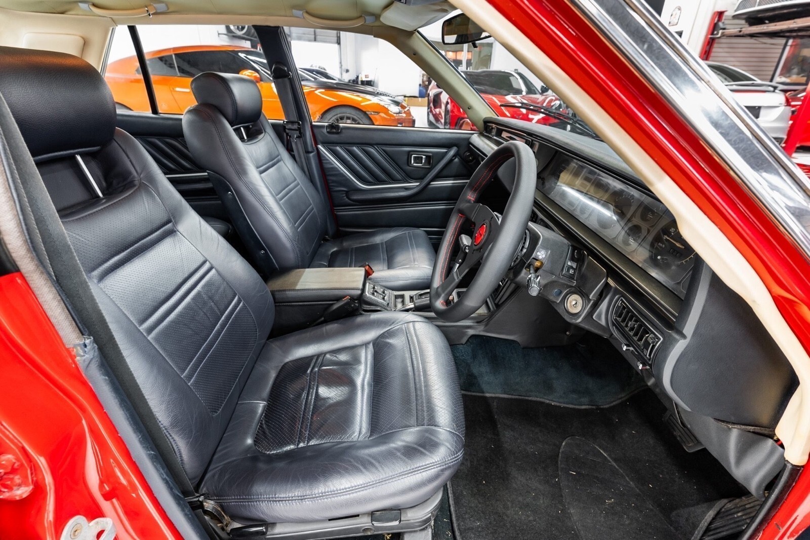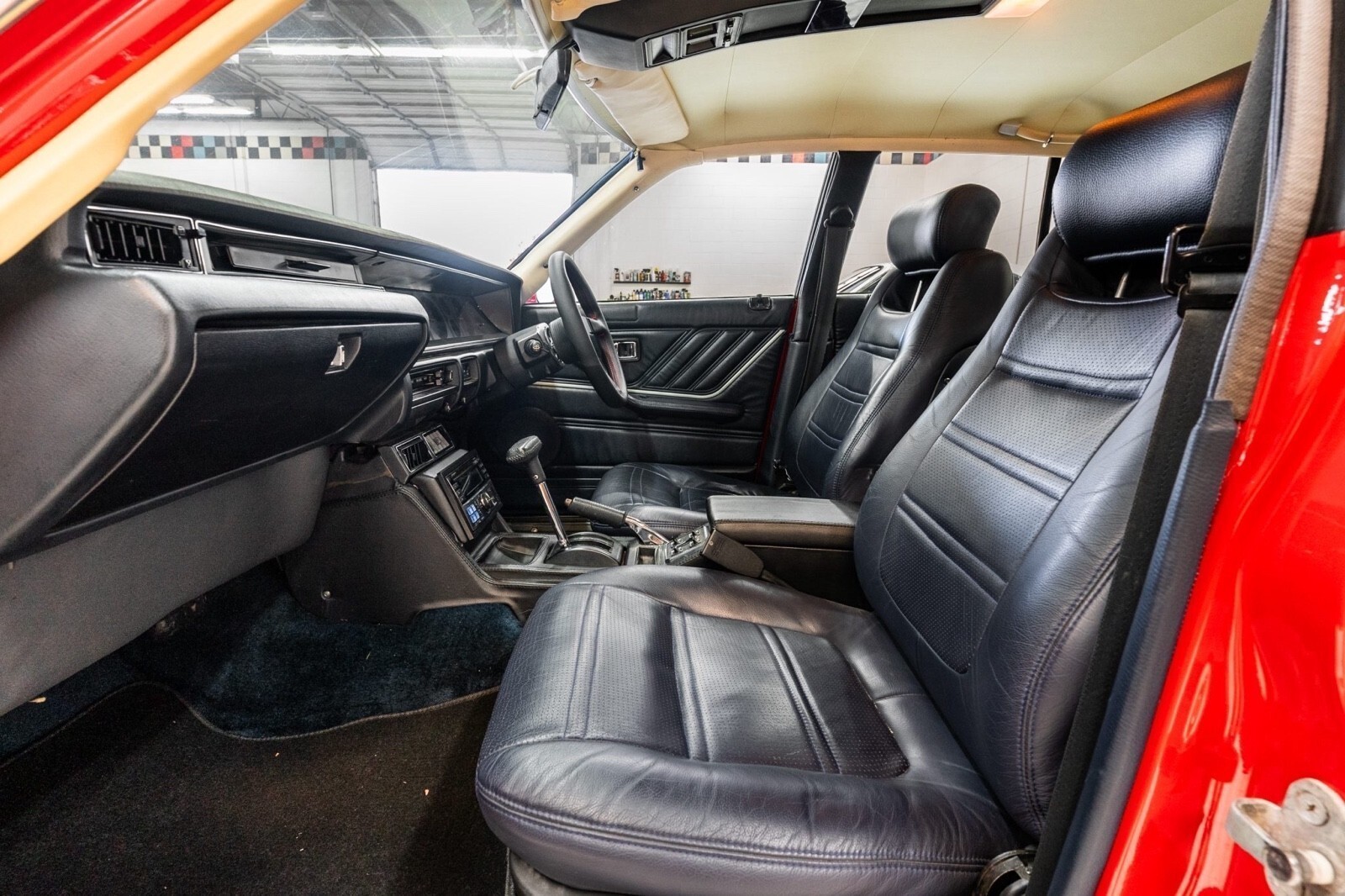 Finished in red over black leather, the sedan is powered by a 2.0-liter L20E inline-six mated to a three-speed automatic transmission. It rides on 14″ Speed Star multi-piece wheels and is further equipped with front disc brakes, a front spoiler, air conditioning, power windows, a MOMO steering wheel, and an Alpine CD stereo with Bluetooth capability. This C210 Skyline is now offered with a clean Missouri title. 1979 Nissan Skyline 2000GT-EL The fifth-generation Skyline was introduced in 1977 and produced in multiple body styles through 1981. This sedan is said to have undergone rust repairs prior to being refinished in red in the late-2010s. Exterior details include quadruple headlights, a front spoiler, power-adjustable side mirrors, and a chrome-finished tail panel. 1979 Nissan Skyline 2000GT-EL Speed Star 14″ multi-piece wheels are mounted with 185/55 Kormoran Runpro tires. It rides on negative-camber suspension, and stopping power is provided by front discs and rear drum brakes. 1979 Nissan Skyline 2000GT-EL The right-hand-drive cabin houses front bucket seats with retractable headrests trimmed in black leather that extends to the rear bench and door panels. Additional appointments include power windows, air conditioning, and a Bluetooth-capable Alpine CD stereo linked with a Focal subwoofer and amplifier. 1979 Nissan Skyline 2000GT-EL The MOMO steering wheel is trimmed in black leather and fronts a 180-km/h speedometer, an 8k-rpm tachometer, and a Quartz digital clock, as well as auxiliary gauges monitoring fuel level, voltage, oil pressure, coolant temperature, and boost. The five-digit odometer shows 46k kilometers (~29k miles), a handful of which were added under current ownership. 1979 Nissan Skyline 2000GT-EL The 2.0-liter L20E inline-six is equipped with fuel injection and was factory rated at approximately 130 horsepower. 1979 Nissan Skyline 2000GT-EL Power is sent to the rear wheels through a three-speed automatic transmission.