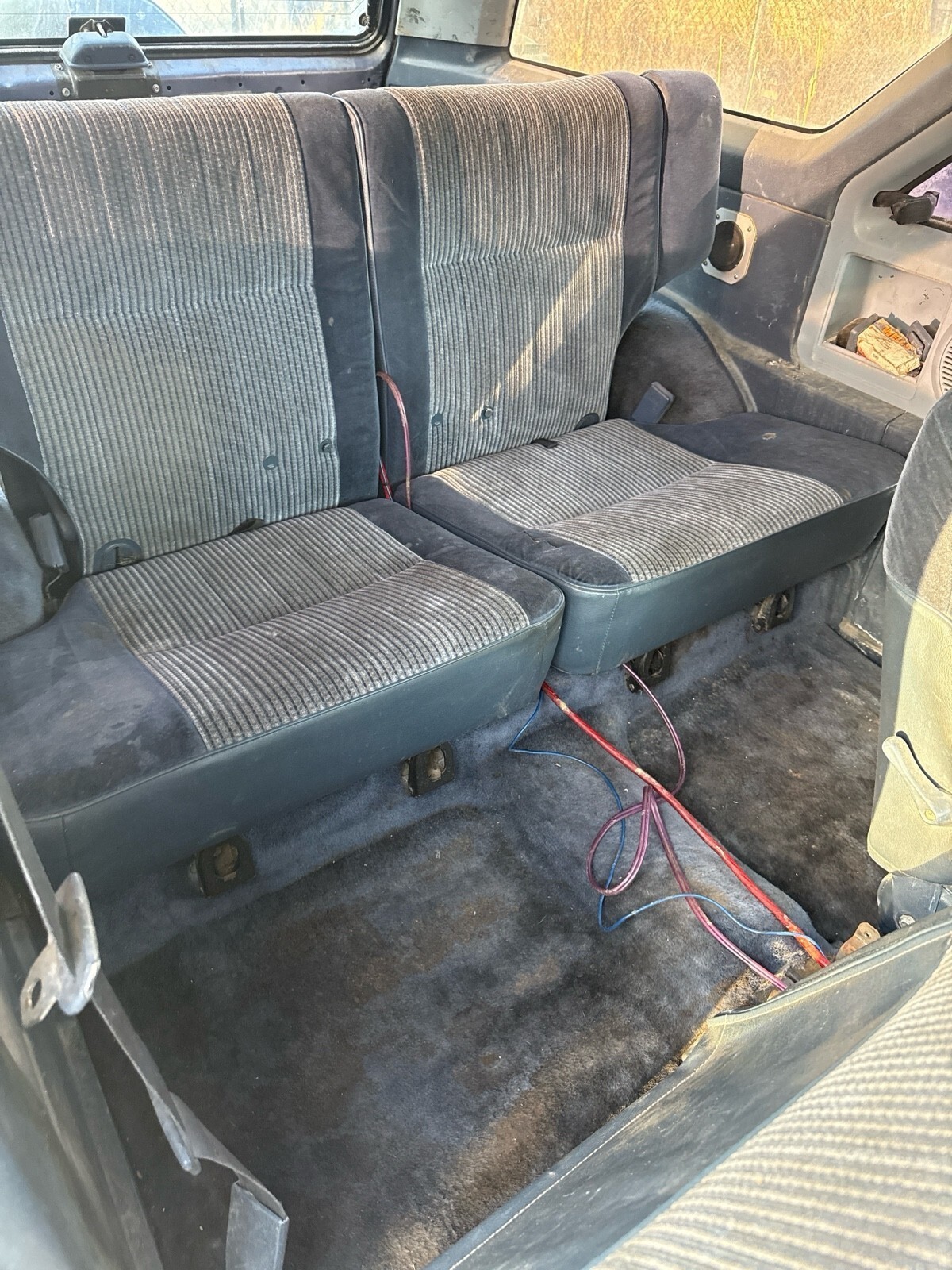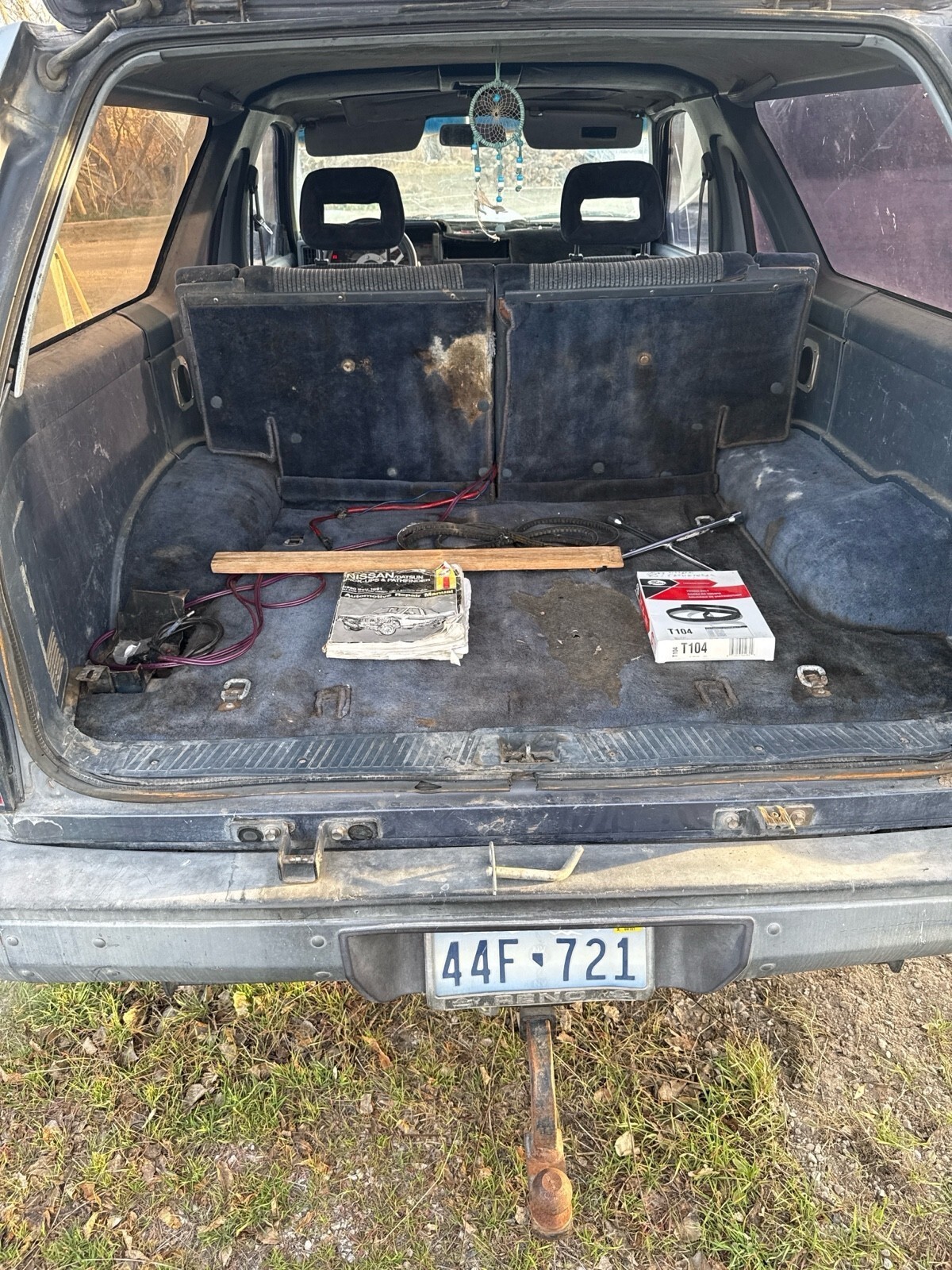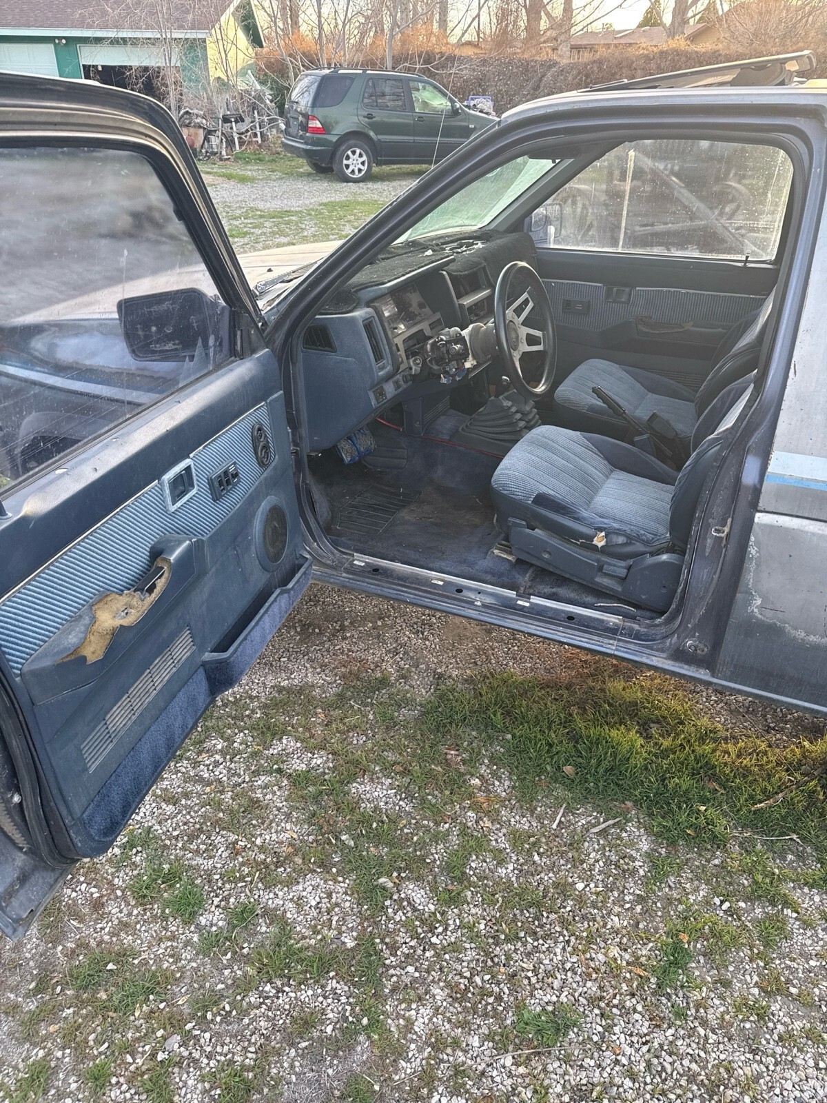 it needs a door handle, driver side mirro, tires are 15 yrs old, it needs better rear springs for hauling a trailer, power steering pump wont hold flui, transmission needs fixed or replaced… front suspension rubber bushings were replace, cv axle boots tor, it is drivabl, i used it to go to the dump and registered it when the other vehicle was down and drag stuff around the yard.