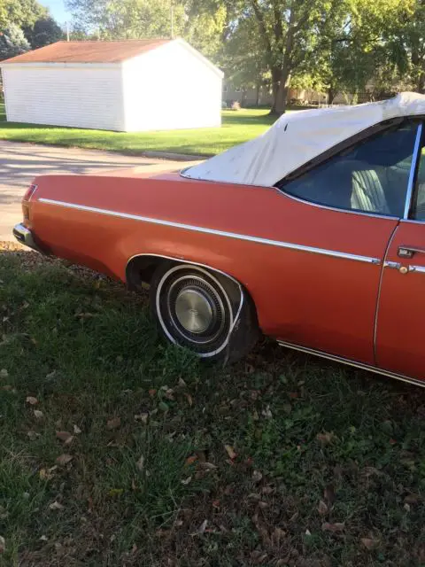 Here is a 1973 oldsmobile convertible clear title no motor or trans. The car ran and drove but sat in the yard for so long that when i got it on the lift there was more rust then i wanted to deal with so i kept the 455 and trans for a future project. This would be the perfect parts car because most everything is there and would also be an easy car to slap a motor in and enjoy. I'm starting the bidding low because if it doesnt sell it will be scrapped and i hate to see a good car die early...