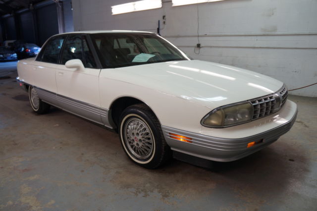 Up for a NO RESERVE auction is a hard to find 1992 Oldsmobile 98 Regency Elite with just 138k original miles. The 98 was the flagship of the Oldsmobile brand and was the sister car of the Buick Park Avenue. I would rate the exterior of this Oldsmobile to be in ABOVE AVERAGE CONDITION for its age and mileage. As you can see, this isa good looking sedan. It is finished in classic white and gray two tone over plush blue velour interior. As you can see, this is a great looking sedan. Pride in ownership shows throughout this flagship Oldsmobile. The finish has a deep shine and looks as smooth as glass all around. As with any older vehicle, please expect to find a few flaws and imperfections commensurate with age and mileage. On this specific Olds, there is nothing noteworthy to report. All of the body cladding is clean and tight. The body lines are nice and straight. The hood, doors and trunk all open and close easily. All of the glass and lenses are intact. The white wall tires have average tread all around. These cars are next to impossible to find still in exceptional, original condition. Most are either used up and worthless or have barely any miles and people want a fortune for one. Here is agreat example of a nice driver, used sparingly and kept in remarkable condition.