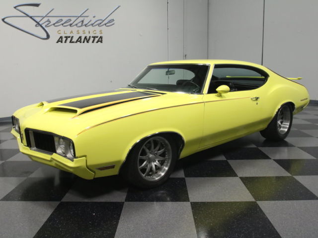 Is there some kind of support group for guys who love the Oldsmobile A-bodies too much? Because after you see this wonderful 1970 Oldsmobile Cutlass Rallye 350 tribute, you'll probably agree that Olds got it right with this one. Sporty, elegant, and quick, it's the perfect combination of features for a guy who doesn't want the same-old Chevelle that everyone else has.Oldsmobile had trouble selling the Rallye 350s when they were new, but the look is so awesome today that someone went to great lengths to re-create it here. The vivid yellow paint works extremely well on the chiseled Oldsmobile's sheetmetal, looking quite forward-thinking for 1970 but also fashionable in 2017. Cool, right? Even better, the hood wears steel scoops, not fiberglass, and a correct Rallye 350 decal kit was installed to add some aggression. Out back there's a 442-style wing, plus body-colored bumpers, sport mirrors, and a blacked-out grille to really make it stand out. The paint and bodywork are only about a year old, so it's in fantastic condition, and if you look closely, you'll note that the bumpers have been tucked in a little closer to the body to make it look sleek, smooth, and potent. Tribute cars are all about getting the look just right, and this car nails it, although experts are going to be surprised by how much better this one looks than a stocker.It still looks and feels like a proper luxury car inside, where black bench seats add to the upscale atmosphere. The upholstery is in excellent condition, which is thanks to a combination of durable materials and excellent care since it was restored a few months ago. The seat covers and carpets are brand new, while the rest is nice original stuff, so it all has an appropriate look. The factory gauges still monitor the basics, but a set of Auto Meter auxiliary dials live under the dash to keep a closer eye on the warmed-over 350 up front. The three-spoke steering wheel is wrapped in leather, so it's a bit more substantial in your hands and the burled walnut dash still shows well. And believe it or not, even the original AM radio is still in the dash, although it's due for an upgrade in a car of this quality. Open the trunk and you'll find a nicely finished storage bay with a new mat that looks right.Guys who know Oldsmobiles know that Olds' 350 inch small block is as durable as a block of granite and makes great torque that its siblings over at Chevy and Pontiac can only envy. With a unique sound, it fires easily and the upgraded camshaft inside offers a slightly lumpy idle that hints of performance to come. It's not terribly radical, featuring a Rochester 4-barrel carburetor, a chrome air cleaner, aluminum intake, and new ignition components, and today looks very much like it would have back in 1970. It's backed by a TH350 3-speed automatic and a set of highway-friendly gears in the 10-bolt rear, so it just loafs along at highway speeds, making it the ideal car for long road trips. The front suspension is augmented with a set of 2-inch drop spindles that give it that wicked stance and there's a disc brake at all four corners, something that original Rallye 350 owners probably wish for. A dual exhaust system sounds great without being annoying and it sits on cool alloys with staggered 245/45/17 front and giant 305/45/18 rear Nitto performance tires.Handsome, fun to drive, and documented with receipts, this muscular Olds offers the smart hobbyist an easy way into an exclusive club. Is it any wonder why we love cars like this so much? Call today!