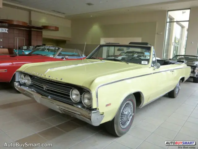 Oldsmobile introduced the 442 in 1964 as an option package for the Cutlass based on the Police interceptor equipment and coded B09. According to the Oldsmobile History Center, a mere 436 Cutlass convertibles were built in 1964 with the 442 package. This Tahitian Yellow car is rare, special-ordered with an automatic transmission. A rust-free car, its had spent the majority of its life in the garage of the Arizona vacation house of a New Jersey surgeon. It was fully restored in 2007, including the undercarriage and mechanical rebuilds of the original 330cid/310hp V8 and the transmission. Power steering, power softtop, Soft Ray windshield, AM radio, bucket seats, console and factory tachometer. Included with the car are the original build sheet found under the rear passenger bench seat during the restoration, listing the B09 Police Apprehender-Pursuit package, the original Protect-O-Plate, original owner's manual and Oldsmobile History Center production information.