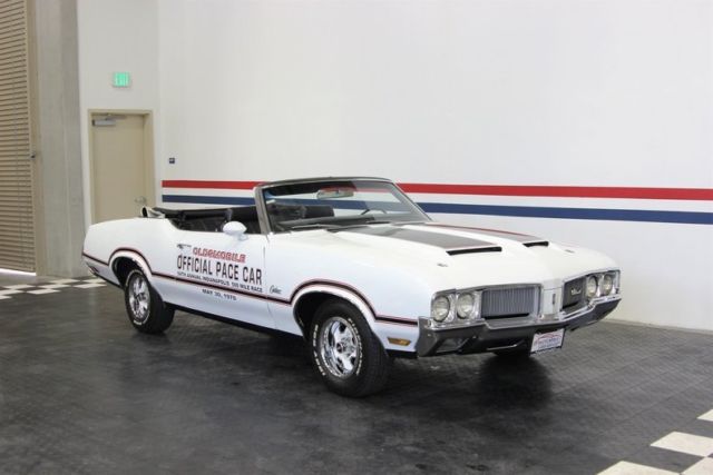 Fully Restored Numbers Matching Original Y74 1970 Oldsmobile Cutlass Convertible Pace Car! • Numbers Matching 350 CID./310 HP Engine. • T-350 Automatic Transmission. • 4BBL Carburetor. • Dual Exhaust with Magnaflow Mufflers. • Factory Power Steering. • Factory Power Front Disc Brakes. • Factory Air Conditioning. • Front and Rear Sway Bars. • 12 Bolt Rear Axle. • Factory Black Vinyl Interior. • Factory Bucket Seats with Center Console. • Factory AM Radio. • All New Interior. • Power White Convertible Top. • Color Coded Sport Mirrors. • Factory 14" Super Stock II Wheels. • Fire Hawk Indy 500 Raised White Letter Tires. • All New Factory Graphics. • 3000 Miles on the Restoration Completed in 2014. • 1 of 358 only 1970 Cutlass Pace Cars. • Car is Registered in the Oldsmobile Club of America Registry. If you are in the market for that special car then come to our showroom in San Ramon CA. Make your dreams a reality call the USA Hot Cars Team Today Need financing assistance? Give us a call - we have excellent rates!! My Hot Cars dba USA Hot Cars is the Premier Classic and Muscle Car Dealer with over 29 years of helping customers from around the world find the car of their dreams. Call us at: USA Hot Cars 877-854-6157 or 1-877-854-6157. Email us at: . Like us on FACEBOOK: MyHotCars Follow us on TWITTER: MyHotCars Review us on YELP: biz/usa-hot-cars-san-ramon New Inventory Arriving Every Day at