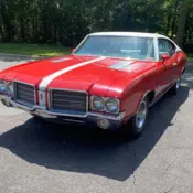 No one combines sporty and luxury together as nicely as Oldsmobile. Thats especially true for this 1968 Olds Cutlass Holiday Hardtop coupe with classic red paint, a comfortable A/C interior, and quite correct-looking V8. Add in an affordable price, and you know this is a great deal on a sleek classic. The Olds A-bodies went through a redesign in 1968 to make them the look like the longest, widest, and sleekest car on the road. And the flared fenders, rounded... rear, and long pillarless Holiday hardtop silhouette of this coupe makes it an unbeatable classic. Plus, no one did a better job of rear bumper integration in the '60s than Oldsmobile. Up front the era of extra wide cars is showcased on two sets of headlights with so much space in-between that you can fit a horizontal parking light. And that "S" badge in the center is correct because these coupes were technically the Cutlass S model that designated the sporty shorter wheelbase than the sedans. That's why it also deserves this stylish red paint. It wasn't born this color, but thanks to a quality high-gloss lacquer finish (yes, true classic lacquer!) people will swear it is. You even have Olds Super Stock wheels with redline tires. So this one really does go the extra mile to look both vintage and sporty. Take some time to really check out the level of correctness in the interior. The Moroceen Parchment is the factory-correct color, and it looks fantastic. The texture on the seats and matching door panels are more reminders of Oldsmobile's more luxurious image. This might be an intermediate size coupe in the '60s, but in today's world that means you have room to easily carry up to five family and friend along with you. And this preserved Cutlass have everything from the AM/FM radio to factory air conditioning to keep them happy. But even if it's just you going out for a solo drive, this Cutlass doesn't disappoint. You get the factory three-spoke sports steering wheel, and beyond that is a nice tri-pod gauge setup that makes this feel like a great driver's machine. Under the hood is the unmistakable golden block of the Oldsmobile Rocket V8. This 350 cubic-inch motor is not original to the car, but it is period-correct. Plus, the way it's presented, right down to the air topper, will have people always assuming this a survivor-grade coupe. More than just history, we love the Rocket motors for their hardy reputation. That's what makes this such a great cruiser. Add in features such as power steering, power brakes, and an automatic transmission, and you understand why an Olds is the best choice for Sunday driving. Complete with the original Protect-o-Plate warranty card and owner's manual, this is the complete classic. And since it's being offered for quite a nice price, you don't want to miss out. Call today!!!