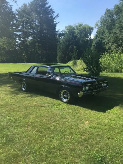 1964 Oldsmobile Cutlass F-85 two door hardtop. NiceDupont triple black paint. Fresh Oldsmobile 403 cid Motor with Edelbrock 4 barrel carburetor, dual exhaust. Two speed Jetaway transmission with Console. Torque Thrust II rims with newer BF Goodrich tires. Nice red interior. Car was restored about 7 years ago and is in very nice condition. Used very little and always garaged. Runs and drives very well. Comes with original 330 cid motor if buyer would like it.