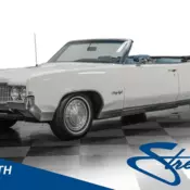 With all the hype surrounding auctions and matching numbers and collector car "investing," it's easy to forget that 98% of the hobby is made up of simply nice classic cars like this 1969 Oldsmobile Cutlass S convertible. Stylish in sinister black with a top that goes down and an original V8 that sounds great, what better way to enjoy a sunny day than behind the wheel of this fast, fun, and very good looking ragtop? General Motors... got the formula right with the A-bodies, and that includes the Cutlass and its unique blend of style and performance. Proportions were exactly right, and in Oldsmobile's case, the Cutlass is simply the best-looking thing to come out of the BOP studios that year. Treated to a very nice paint job in 2007, it looks great in simple black, and it's refreshing that it wasn't turned into some kind of mutant 442 clone, but instead embraced its heritage as a beautiful Cutlass S droptop. That means no graphics, no racing stripes, just a clean, straight body with a glossy shine and a great look. It appears that this one has been well-maintained since it was completed and offers straight bodywork that highlights the flared fenders and chrome strip along the tops of the fenders. It shows some wear, of course, because it's impossible to resist a vintage drop-top on a sunny day, and this Olds is more than happy to join you on your daily commute to work as well as to the car show on Sunday. Chrome and trim are very good, including the cool headlight assemblies and awesome grille, the newer bumpers, and all the stainless was professionally buffed. The black bucket seat interior is simply what you want to make a black car look the coolest, and it's in very nice shape with firm support on the seats and very clean OEM replacement upholstery throughout. Luxury-oriented Oldsmobiles are not a new thing, but this one offers a great combination of options that you wouldn't expect at this price, including power windows, factory A/C, a center console, and a power convertible top. The original radio is still in the factory slot in the dash, but it has been supplanted in favor of a Custom Autosound AM/FM/AUX unit that's hidden out of sight and controlled via remote. The gauges are housed in their own round pods ahead of the driver and the dash is free of cracks, while the stock steering wheel sits atop a tilt column and remains in good original condition as well. Plush black carpets look great framed by shiny door sills, and the black convertible top folds easily with the touch of a button and hides under a matching black boot. Out back, the spacious trunk offers fresh mats (including that cool Oldsmobile scripted one) and a full-sized spare in case of emergencies. Oldsmobile's Rocket 350 was no slouch in the performance department, and the block under the hood is in fact the numbers matching unit. Topped with what appears to be the original 4-barrel Quadrajet carb, it has a very OEM look, right down to the gold engine enamel on the block and valve covers, and the black snorkeled air cleaner decorated with correct Olds Rocket 350 decals. We'd recommend a modern carburetor to fully take advantage of the burly Rocket 350, but as it sits the Olds still starts quickly and drives great, and I think you'll be pleasantly surprised by how pleasant of a ride it really is. Power steering and firm power front disc brakes are welcomed options for this classic droptop, and the Flowmaster dual exhaust below produces a wonderfully subtle muscle car soundtrack. It's backed by a TH350 3-speed automatic that was rebuilt in January of 2019 and a heavy-duty 12-bolt rear end with street gearing, so it moves with authority, but cruises easily at modern highway speeds. Classic Rally SSII wheels always look awesome, with these wearing white-letter 225/70/14 BFGoodrich radials. Complete with build receipts and owner's and service manuals, this is a clean, handsome ragtop that runs great and always delivers a good time. This car offers a lot more than its reasonable price tag would suggest. Call today!