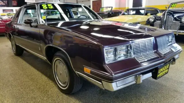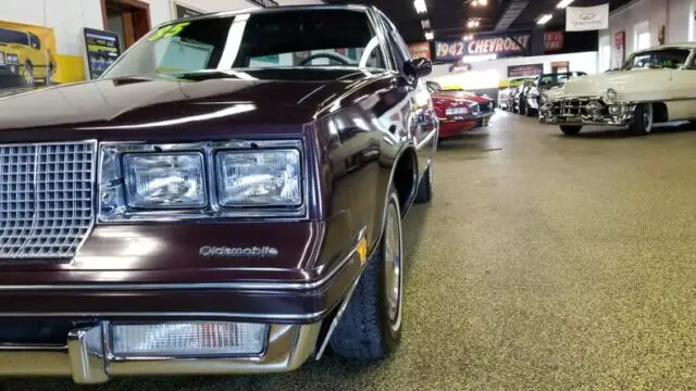 1985 Oldsmobile Cutlass Supreme Brougham that is very nicely equipped with the quarter vinyl roof. There are no accidents indicated on the CarFAX. Under the hood is a 307 that is paired with a Turbo Hydromatic automatic transmission. The paint appears to be all original paint in the deep red. Riding on the original wheel covers that it would've came with. The interior features matching deep red cloth interior split bench seats. Door cards, carpeting, dash, and headliner are all in as good of shape as the seats. 16,254 ORIGINAL MILES! This car comes equipped with cruise control, power windows, power locks, power mirrors, air conditioning, power steering, and power brakes. Great running and driving low-mile example of an 85 Cutlass Supreme Brougham!