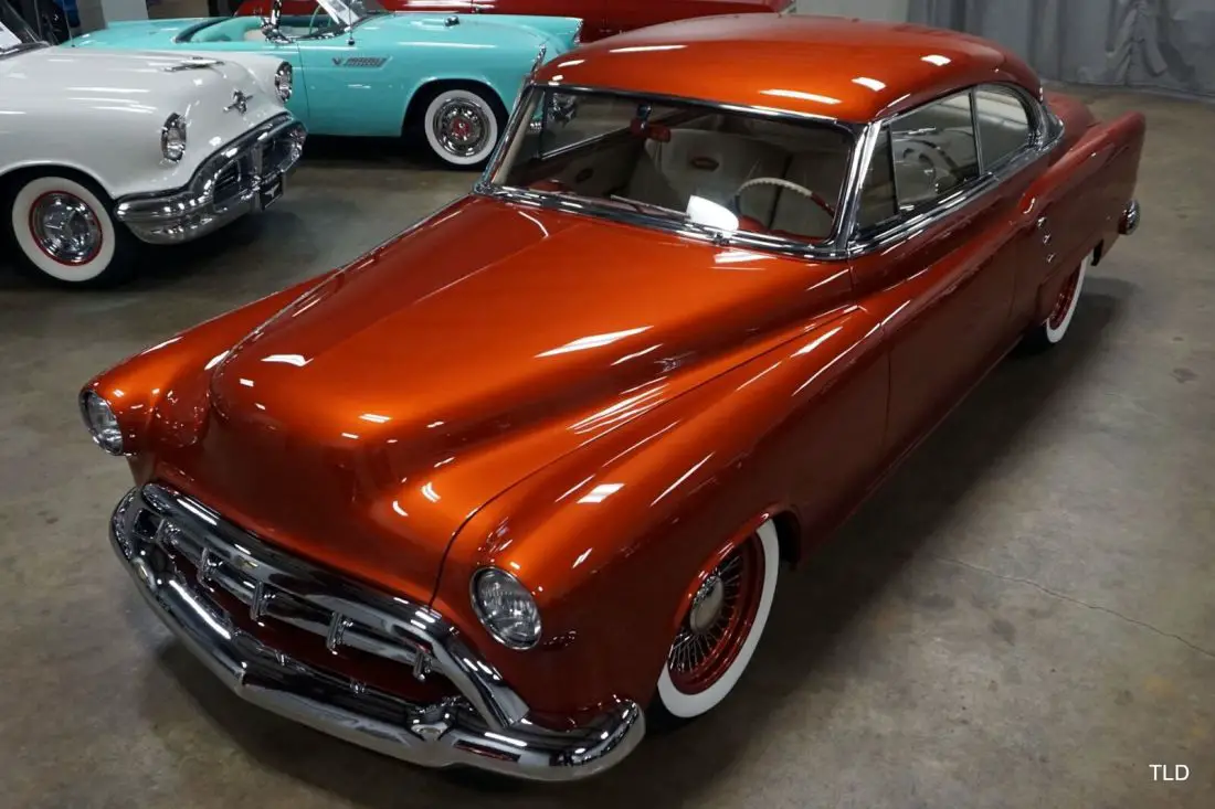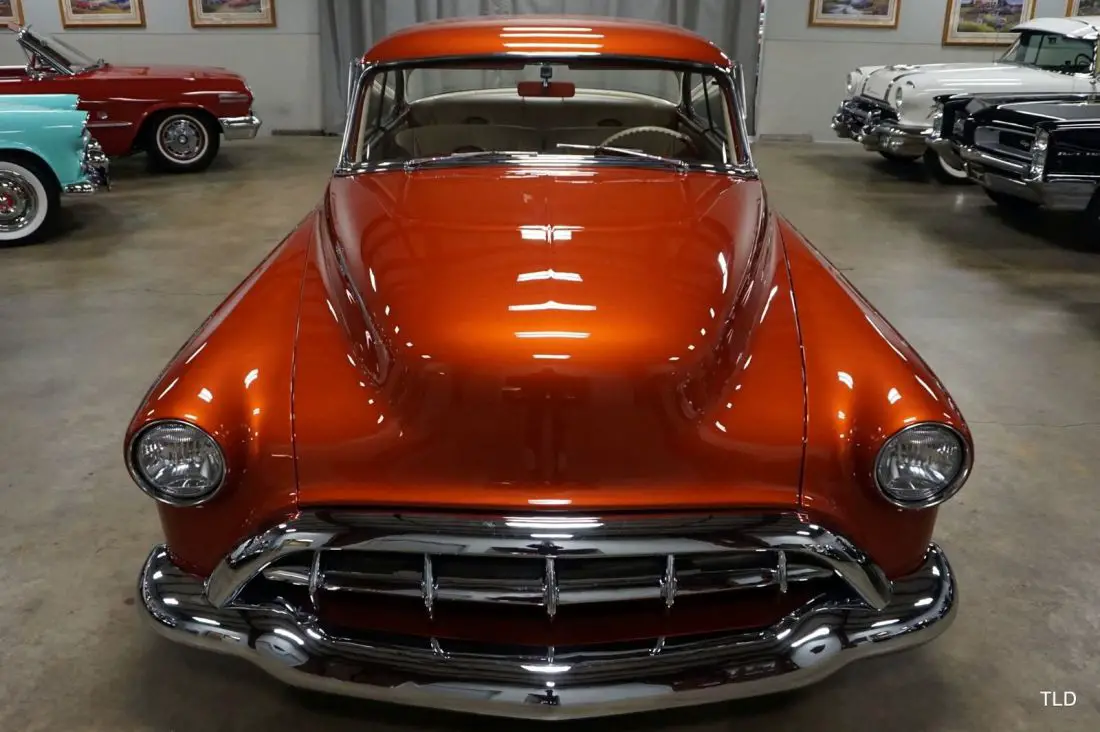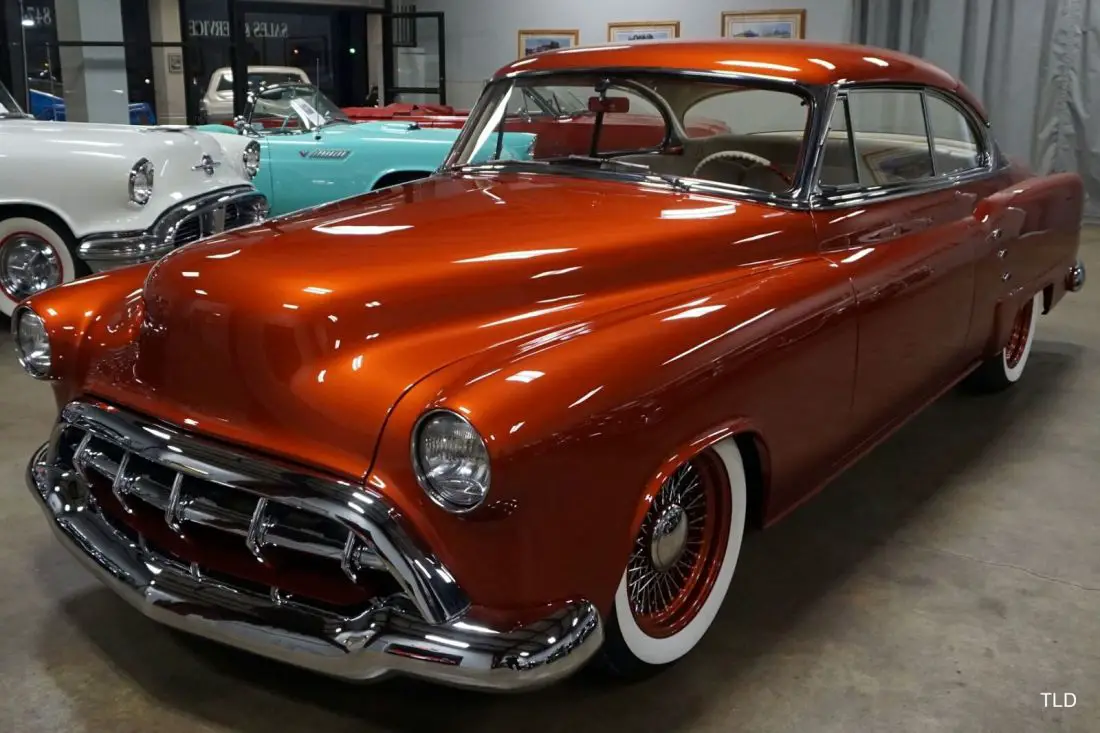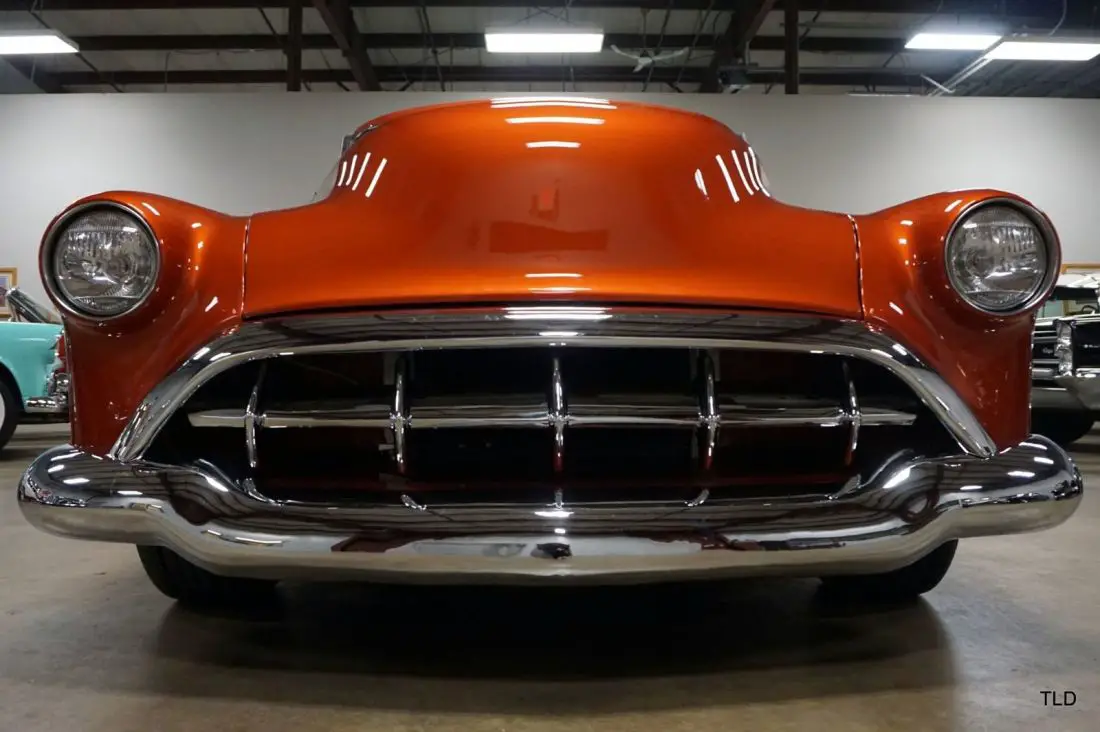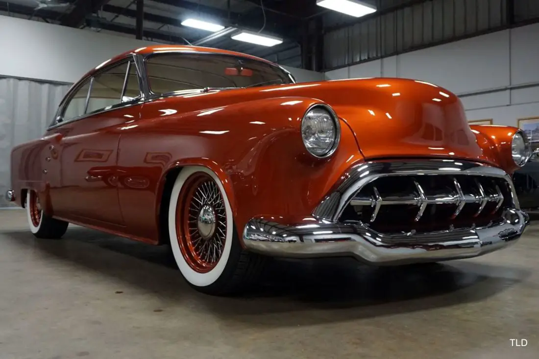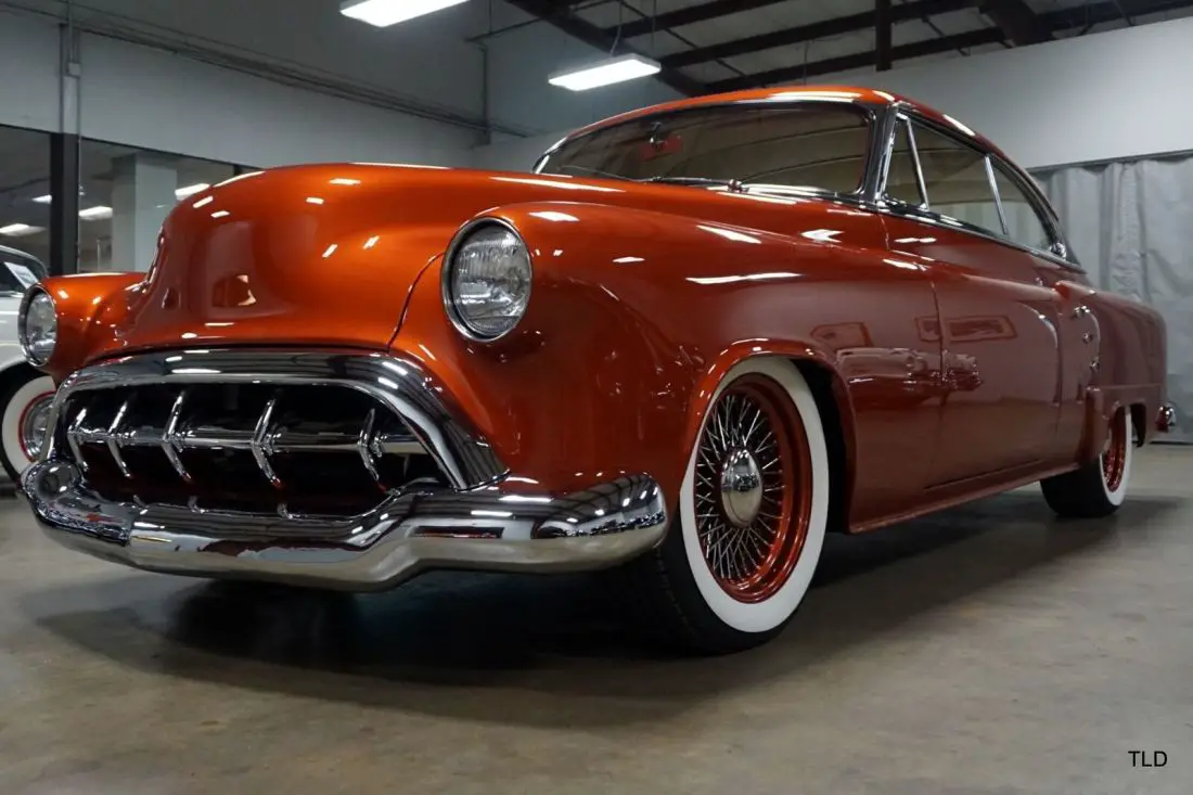 Inside, Cream upholstery and matching carpets are nicely contrasted by the Copper painted dash and two-tone door panels continue the color scheme. Custom Redline analog gauges monitor vital functions of this outstanding custom Olds, which also includes tilt steering with a Space-Age 59 Impala wheel, air conditioning, a Bluetooth stereo hidden inside the glove box and keyless entry and trunk release. Clearly benefiting from proper warehouse and garage storage, this custom Olds rolls on a set of 18-inch wire wheels with body-color rims and wide whitewall tires. If youve always wanted a cool custom Olds with modern features, amenities and build quality, this 1953 Oldsmobile 88 Custom is the one for you, with all the hard work already done. All you have to do is enjoy it!