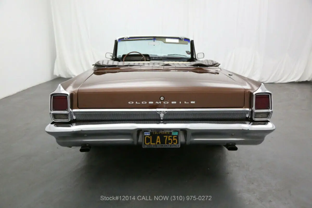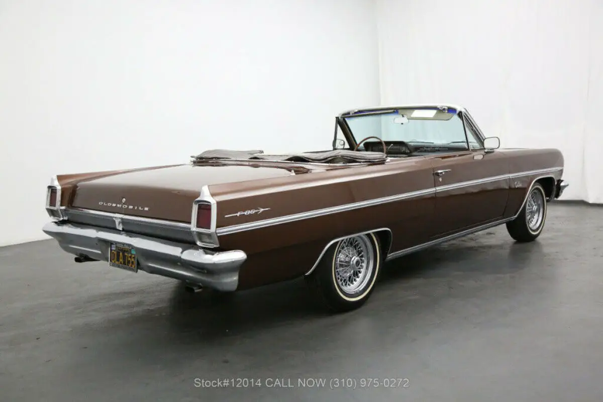 1963 Oldsmobile F85 Cutlass Convertible This beautiful 1963 Oldsmobile F85 Cutlass Convertible is available in brown metallic with a color combination of creme and olive interior. It comes equipped with an automatic transmission and a V8 engine, OEM radio, power windows, power steering, power soft top, boot, wire wheels with white line tires, and jack. It also includes receipts from 2006 to 2011 totaling over $2,000. An excellent original black plate California car which is mechanically sound. For $12,750