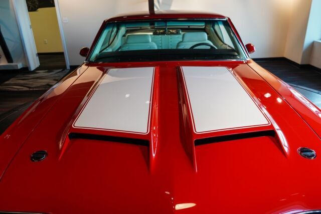 This 442 was discovered by Thornton Muscle Cars located in Quakertown, Pennsylvania. Thornton Muscle Cars is a family owned business that has an excellent reputation for doing outstanding restorations on Oldsmobile 442s. With a professional staff of only 4 people they're only able to restore a few cars per year. They are considered the experts in the world of Oldsmobile 442s. They've set many Oldsmobile 442 records at Barrett Jackson. Prior to the restoration this car was a 57,000 mile survivor. It was the perfect candidate for a restoration because it was rust free and retained it's original drivetrain. During the restoration process the body was taken off the frame and stripped to bare metal. The body retains all the original sheet metal with exception of the two front fenders and passenger door which were replaced with original GM sheet metal. During the restoration the decision was made to paint the exterior Matador Red with white stripes but not paint the top white. The decision was also made to add the pearl white trim to the black interior. The decision was also made to add the following options: W25 Ram Air Hood, sport mirors, SSII wheels, bucket seats, sport steering wheel, dual gate console and psi rear axle. All of these changes greatlt improve the vehicles character making it highly desirable. The restoration was completed in 2020 and currently has just over 57,000 miles. This 442 is like stepping back in time and buying it brand new.
