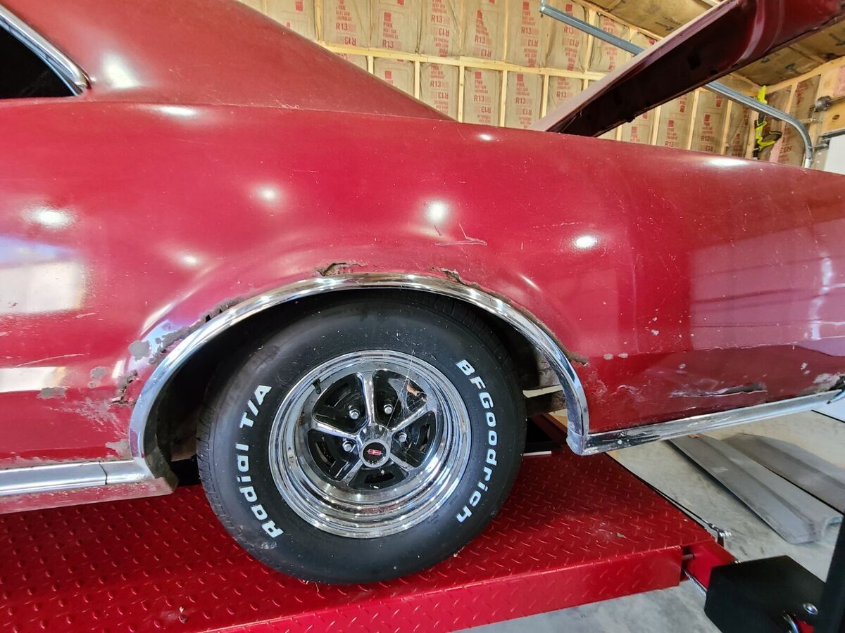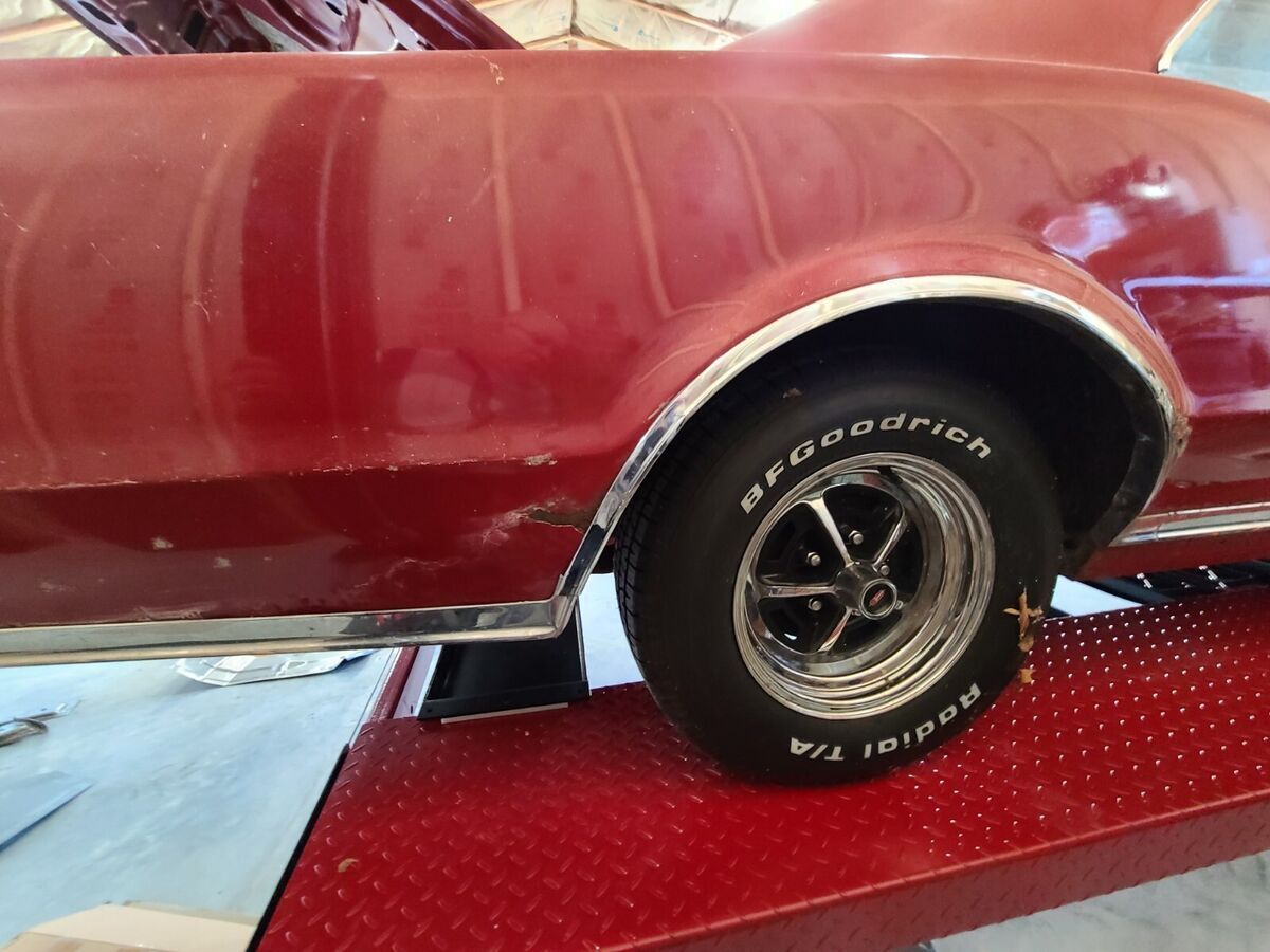 A leak around the rear window caused water to sit in the trunk resulting in rust on the trunk floor and the lower wells of the quarter panels. The trunk floor and lower quarters need to be repaired and the sheet metal replacement panels are included. There is a very small area of rust repair on the front left fender. In 1991, a basketball pole damaged the front left fender. It was repaired and painted. Nearly all of the paint on the remainder of the body is original. In 1996, steel was welded to the frame at the front left side to resolve rust that had begun to form in that area. Air Shocks were installed in 1984. The car was not optioned with Power Brakes yet the brakes were converted to Power in 1993. The Interior is totally original and in beautiful original condition. The seats had been professionally reupholstered with a black velour that has now faded. A new set of Correct Factory Reproduction Seat Covers was ordered in July from Legendary Auto Interiors arriving in February that are available for purchase. The car runs very well. Correct Reproduction Oldsmobile Rally Wheels and new BF Goodrich Tires were installed this past August. The Original Factory Special 442 Steel Wheels, Factory Simulated Wire Wheel Covers and Spare Tire are included.