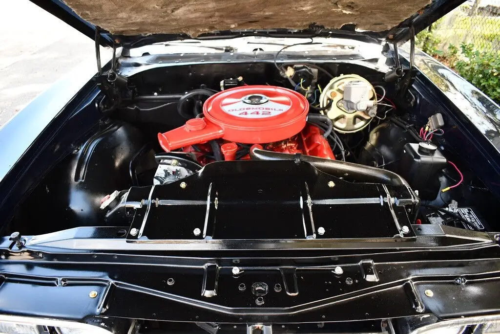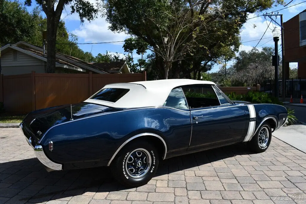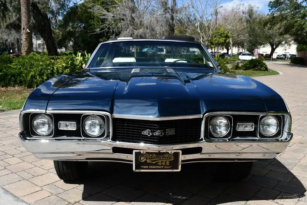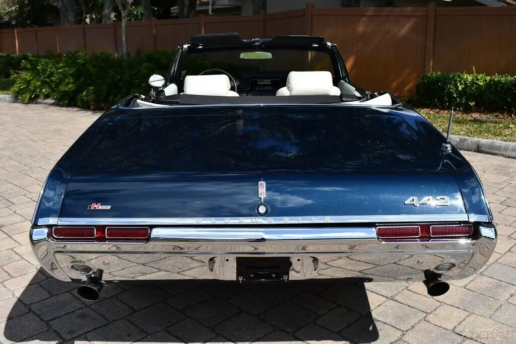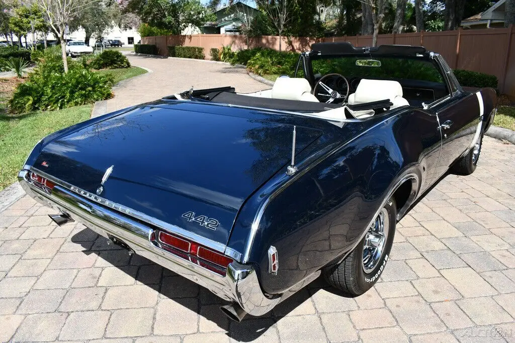 Remarkable 1968 Oldsmobile 442 Convertible Numbers Matching 400ci V8 Engine 4 Speed Muncie Transmission Posi Traction Rear end Blue Exterior Tilt Wheel White Bucket Seats Power Steering Power Brakes Power Trunk Release &