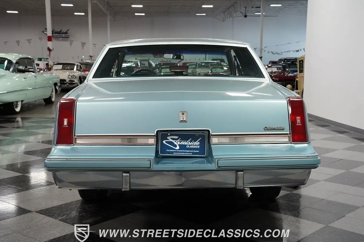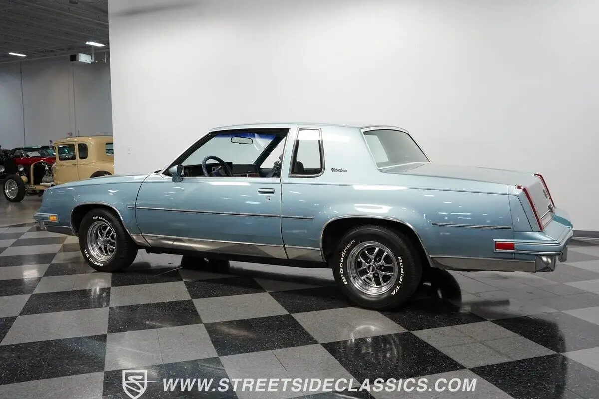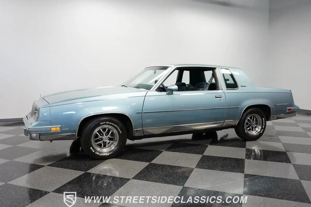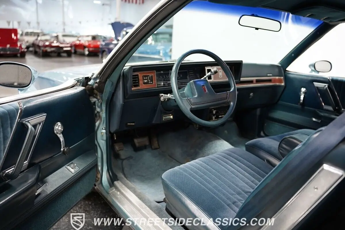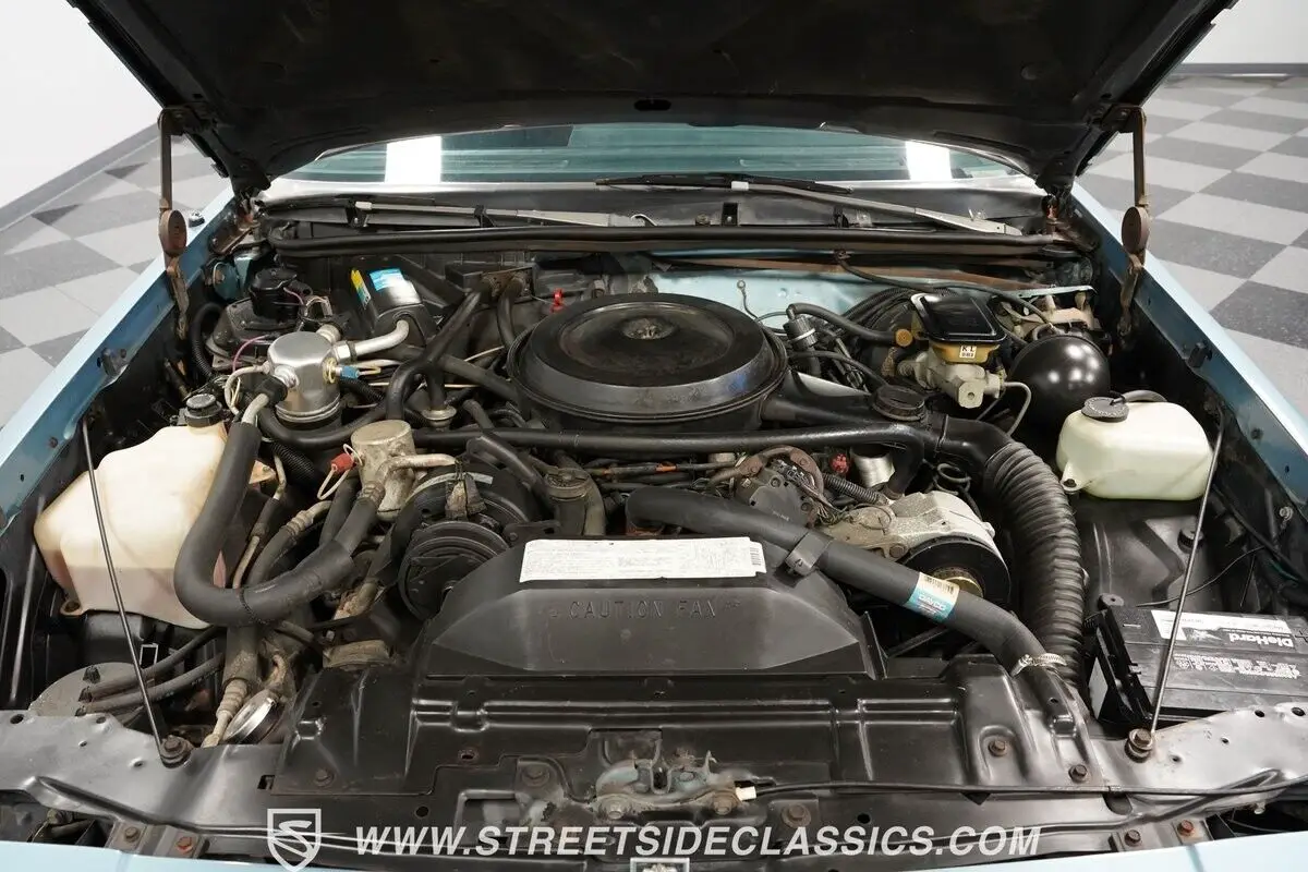 HIGHLIGHTS: • 5.0 Liter V8 • 3 Speed Automatic Transmission (TH350) • Single 4 Barrel Carburetor • Power Steering • Power Brakes • 10 Bolt Rear Axle • Factory Replacement Muffler • Light Blue Metallic Paint • Stock Wheels (14") in 215/70R14 Tires • Blue interior with Cloth Bucket Seats • Air Conditioning • AM/FM Radio • 5 Digit Odometer • Maintenance Documents • Original Window Sticker • Car Cover