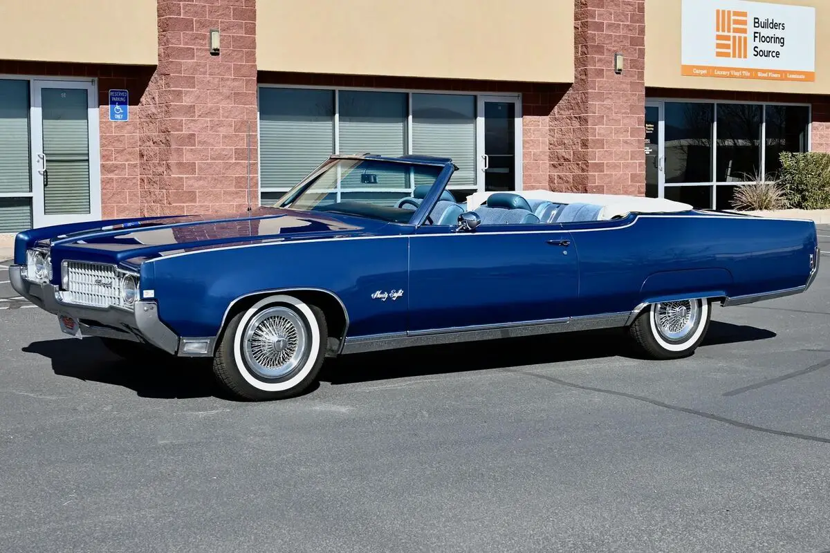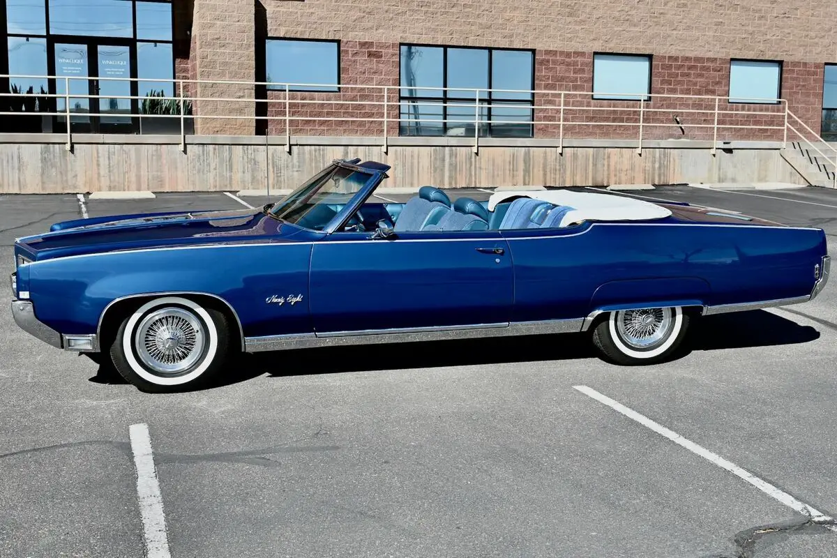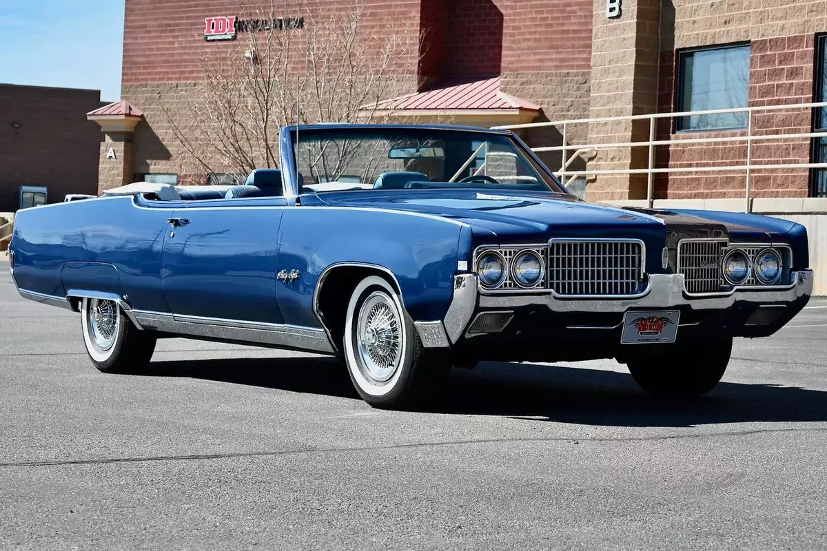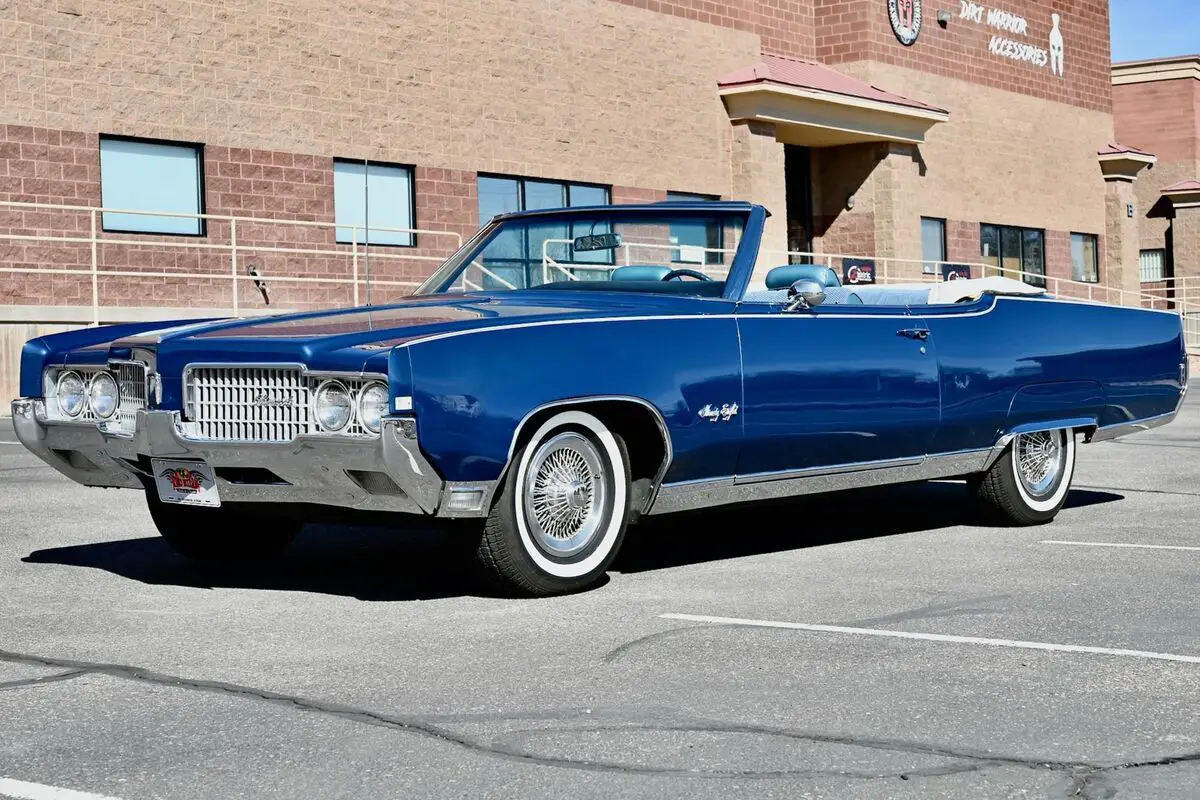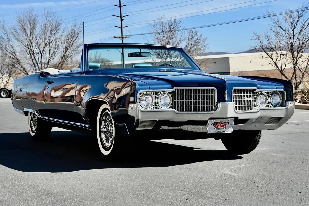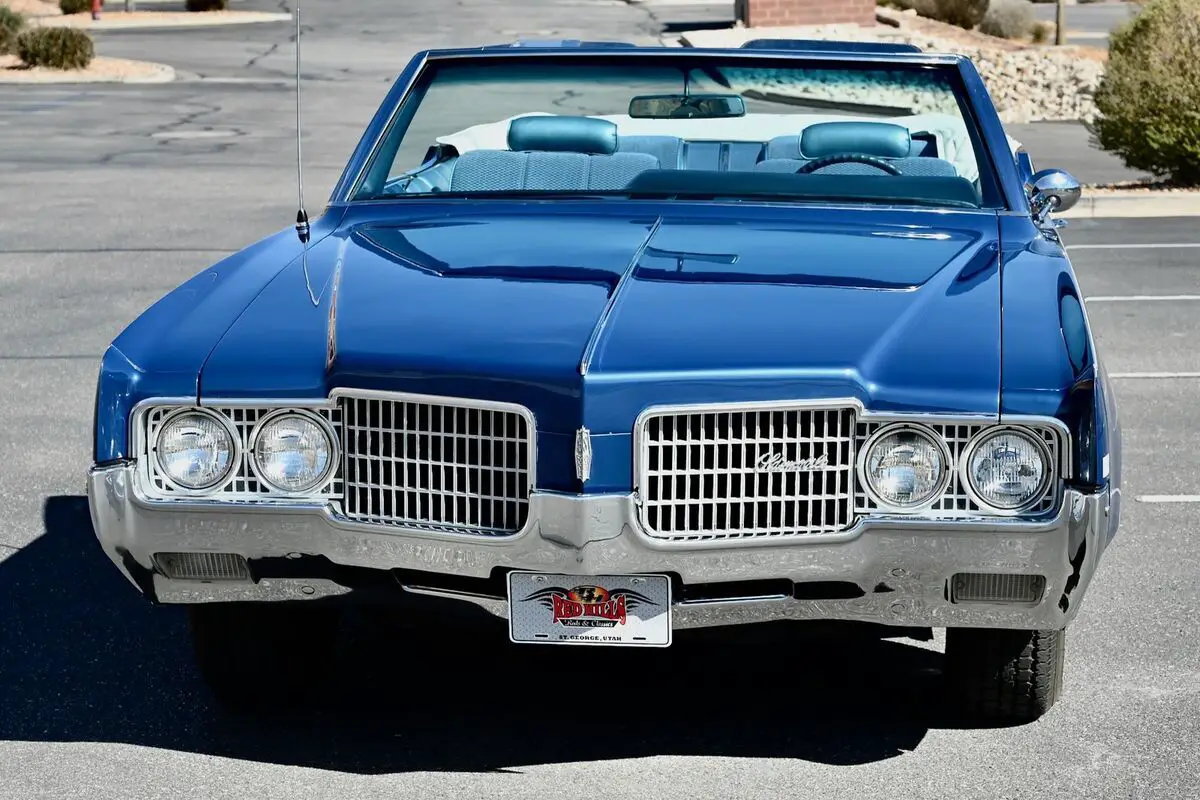 We have all heard the old saying “They just don’t make them like they used to”, and that especially goes for classic American automobiles. If you have been searching for a classic American convertible that can win awards at your local car shows, but also one that can be driven & enjoyed to the fullest, well then I think we have just the car for you!‘Red Hills Rods & Classics’ is very happy to offer you this absolutely beautiful 1969 Oldsmobile Ninety Eight Convertible! This wonderful automobile has been w/ the same family since 1971, and recently underwent a multi-year restoration to bring it back to all its glory. It now sits on our showroom floor here in St. George, Utah, in absolutely beautiful condition. Finished in its factory correct color combination of Trophy Blue wrapped around a light blue bench seat interior, a short list of options includes: original 455ci motor, TH400 automatic transmission, power steering, power front disc brakes, power convertible top, power windows, 6-way power front bench seat, tilt/telescopic steering column, AM/FM 8-Track stereo, and more. The owner had quite a soft spot in his heart for this car, as it was purchased for his mother in 1971, and he actually learned how to drive in this exact car back in 1973. Years later, he acquired the car from his parent’s garage, and began using it as a daily driver in Arizona & Nevada. The car has always been in dry climate areas, so it is 100% rust-free throughout. In the early 2000’s, he parked the car in his Nevada garage and was finally able to start a complete restoration about five years ago. The final results are quite impressive, as all of the work was performed by the owner and his good friend who is a lifelong ‘ASE Certified’ GM technician. A photo album depicting the various stage of work performed will go with the car.The bodywork was done beautifully w/ excellent panel alignment and body gaps. The factory correct Trophy Blue paint was recreated in a modern clearcoat, and has a beautiful lustrous shine throughout. All of the chrome and stainless-steel trim is in excellent condition as well. The correct T3 headlights light up the road, while all other exterior lights were refitted w/ LED bulbs, which are much brighter. Reproduction parts for the top were acquired from Hydro-E-Lectric in Florida, which includes the new white vinyl convertible top w/ glass rear window, hydraulic rams, pump motor, lines, switch, and header bow. It functions perfectly going up and/or down. All rubber and felt pieces are new on the windows, doors, decklid, top, headliner, and the inner fender splash guards. The front end was completely rebuilt w/ all new parts, including wheel bearings, tie-rod ends, upper & lower ball joints, idler arm, and upgraded front disc brakes, which were newly available on the 1970 model. This beautiful convertible sits on 15” wheels w/ wire hubcaps, wrapped w/ Coker American Classic whitewall tires. The wire hubcaps are from a 1974 Oldsmobile, but the original hubcaps will go w/ the car. You can walk around this beautiful convertible a hundred times and it looks absolutely stellar from every single angle.Pop open the driver’s door and you will find a beautiful light blue vinyl/cloth bench seat interior that really takes you back to the ‘good old days’. The seats were reupholstered in the original light blue vinyl w/ matching door panels, and cloth was added to the seats for extra comfort. The original dash (uncracked) is still in place, and the tilt/telescopic steering column was completely rebuilt. The power windows and 6-way power seat were disassembled & cleaned, and the tracks were relubricated and reassembled w/ new rollers & guides. New parts from ‘Fusick Automotive’ include the rearview mirror w/ map light, door & ignition locks, rear fuel door, cap & fuel sending unit. The interior was also refitted w/ LED lightbulbs throughout. All of the gauges, lights, blinkers, AF/FM radio, etc., are in perfect working order w/ the exception of the 8-track player. The interior is absolutely beautiful, extremely comfortable, as well as fully functional, and the trunk was nicely restored to original w/ the correct felt carpeting, headboard liners, and Oldsmobile rubber mat.Pop open the hood, and residing inside the tidy engine bay you will find the original 455ci V8 motor lathered in Oldsmobile red paint. The motor was completely rebuilt, bored 60-over, w/ a mild RV camshaft. Every moving or wearable part was replaced during the rebuild. The carburetor is a later model, fully rebuilt Rochester Quadrajet, and the original ‘points’ style distributor was upgraded w/ an HEI Distributor for efficiency. Other upgrades include a new power brake booster, master cylinder, and Hayden 4-row radiator. The motor is linked to a completely rebuilt TH400 automatic transmission, which shifts beautifully and incorporates the new speedometer system previously driven by the front wheels. She fires up instantly, settling into a nice smooth idle, and she runs, drives & performs beautifully in every way. This Olds 98 Convertible is an absolute blast to drive and gets a ton of attention anywhere you go. The new owner will receive the original owner’s manual, (2) photo albums of restoration photos, and lots of original parts, including the original hubcaps.Again, if you have been searching for a classic Oldsmobile convertible that can win awards at your local car shows, but also one that can be driven & enjoyed to the fullest, you will want to take a very close look at this beautiful 1969 Oldsmobile Ninety Eight Convertible!