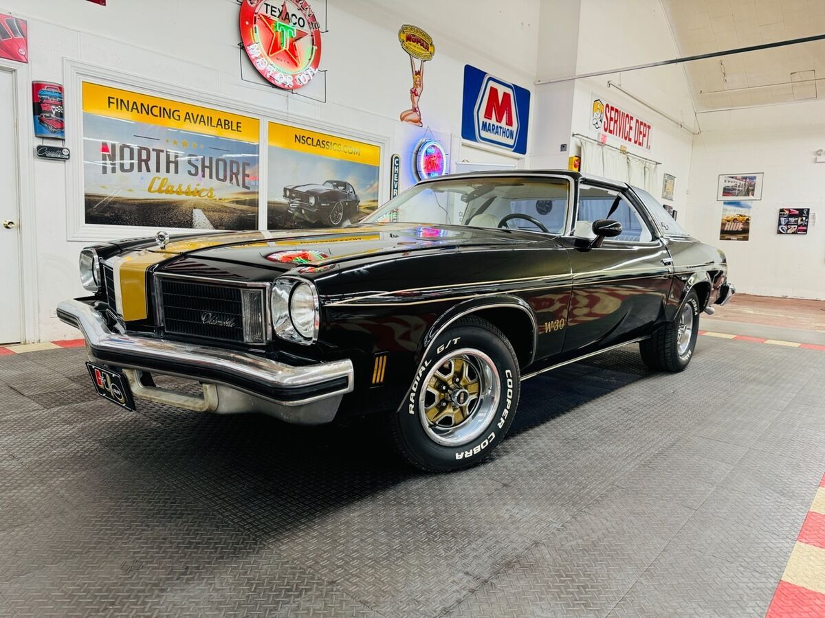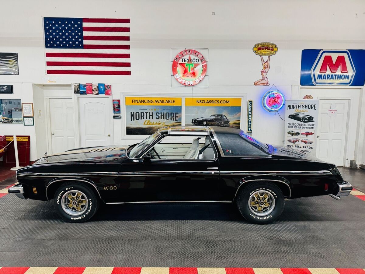 *1975 OLDSMOBILE CUTLASS*REAL HURST OLDS W-30*BLACK EXTERIOR*WHITE INTERIOR*T-TOPS (one is cracked, but does not leak)*WAS ORIGINALLY A 455 C.I. ENGINE*NOW HAS A 350 C.I. ENGINE*AUTOMATIC TRANS*SWIVEL BUCKETS W/CENTER CONSOLE*HURST DUAL GATE SHIFTER*SPECIAL LOUVERED HOOD*POWER STEERING*POWER BRAKES*NEW TIRES*RECENT TUNE-UP AND OIL CHANGE**CALL US TODAY844-652-8767**ASK ABOUT OUR EASY FINANCE OPTIONS**WE SHIP WORLD WIDE